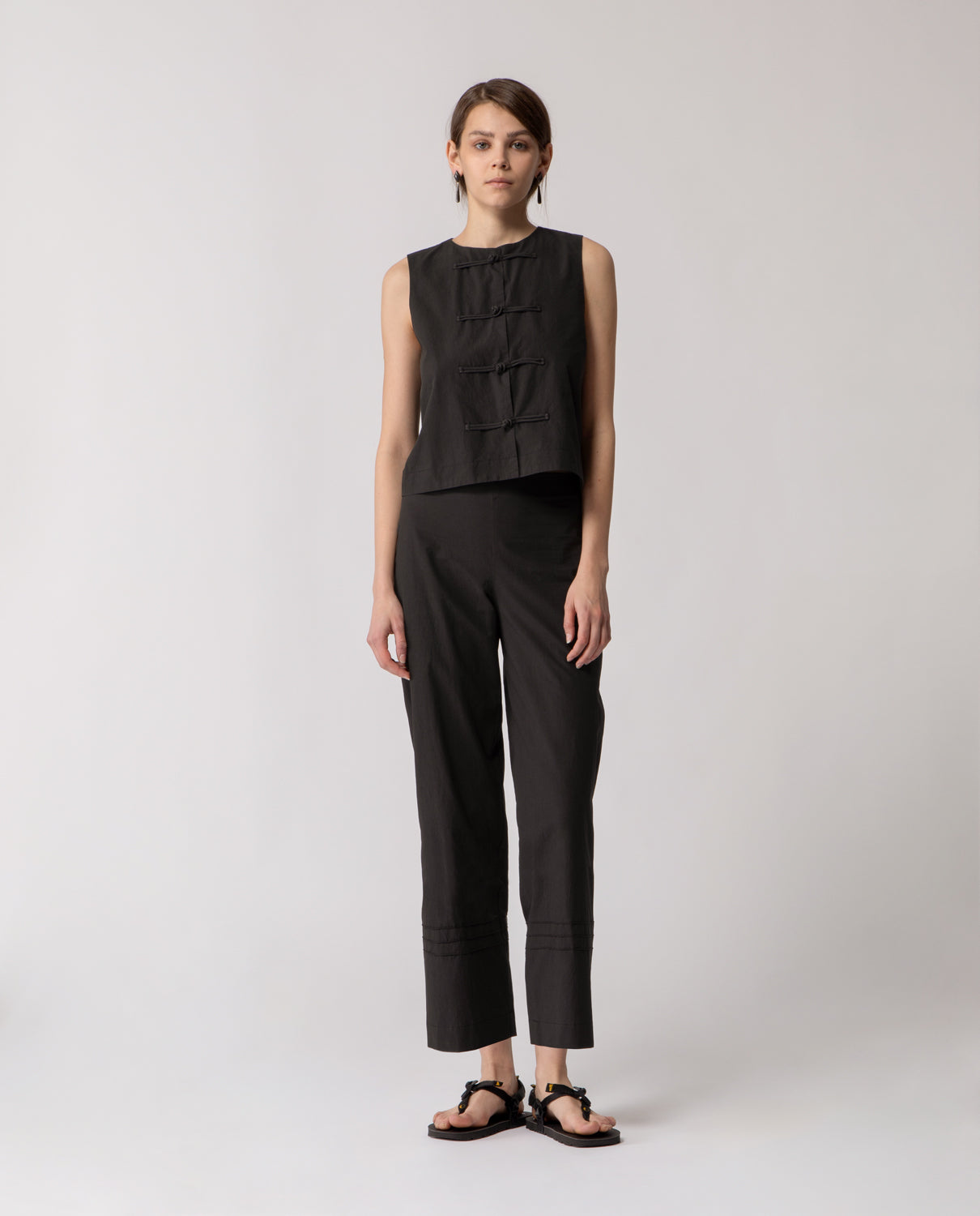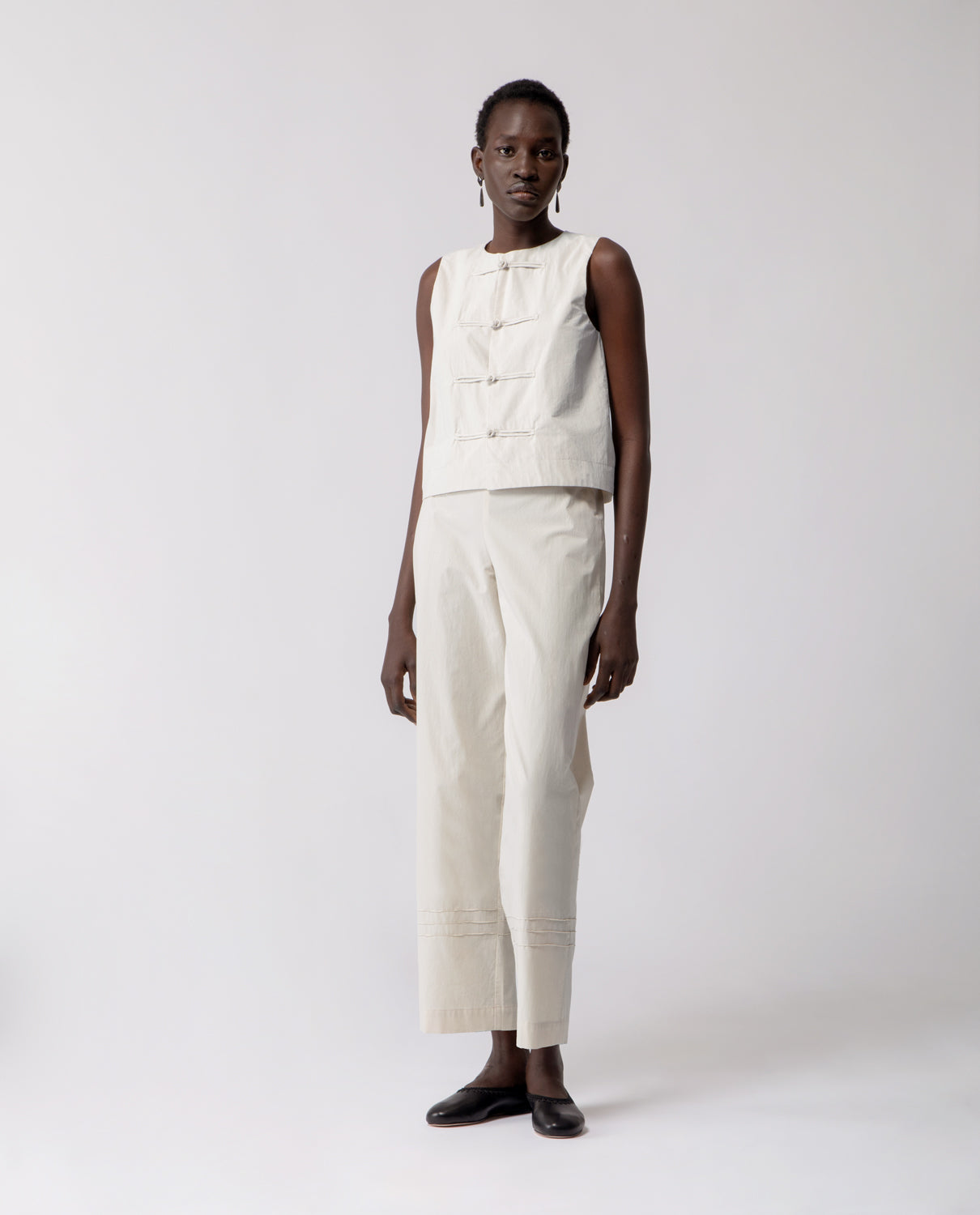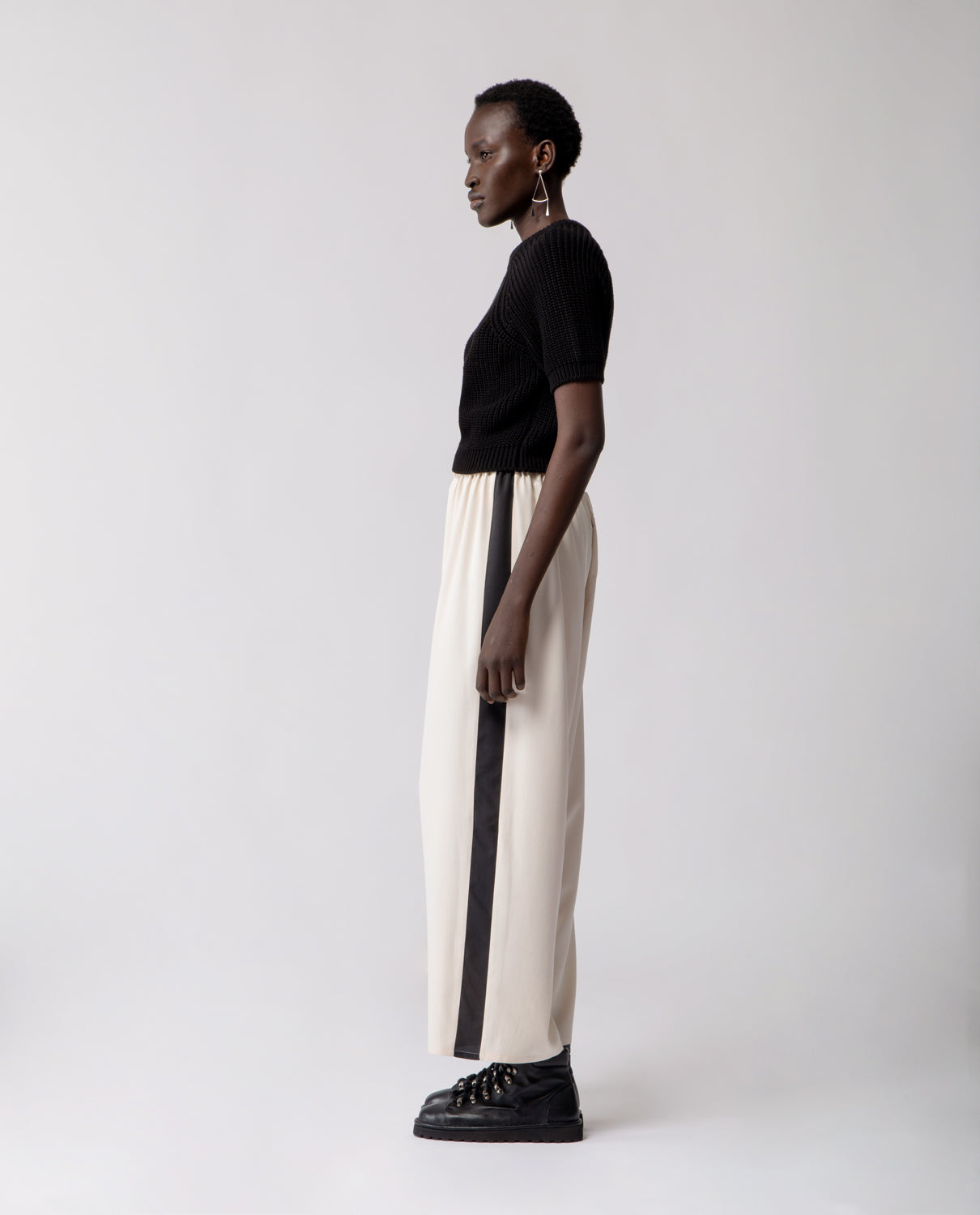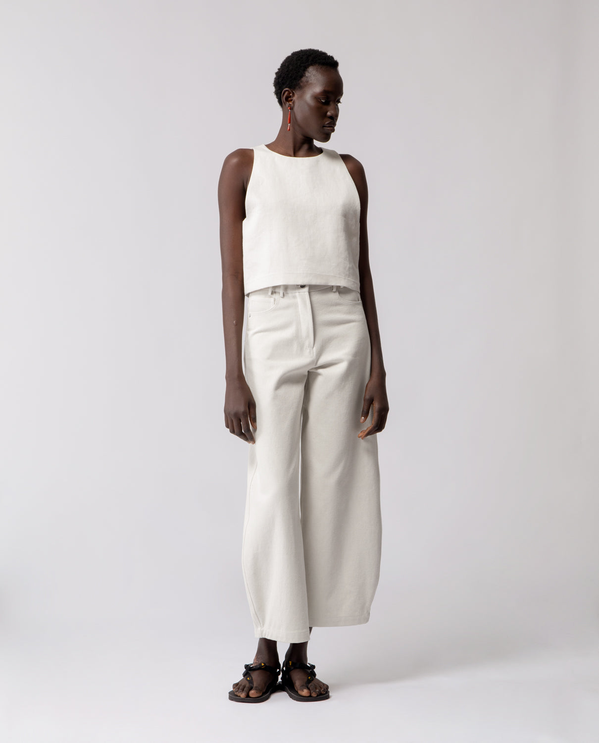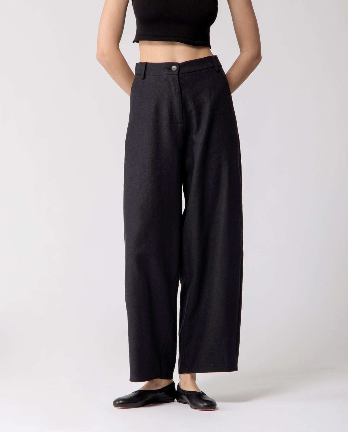Emil’s edit includes tapered, straight, and wide-tailored trousers crafted from fine materials such as silk, cotton, linen and raw silk.