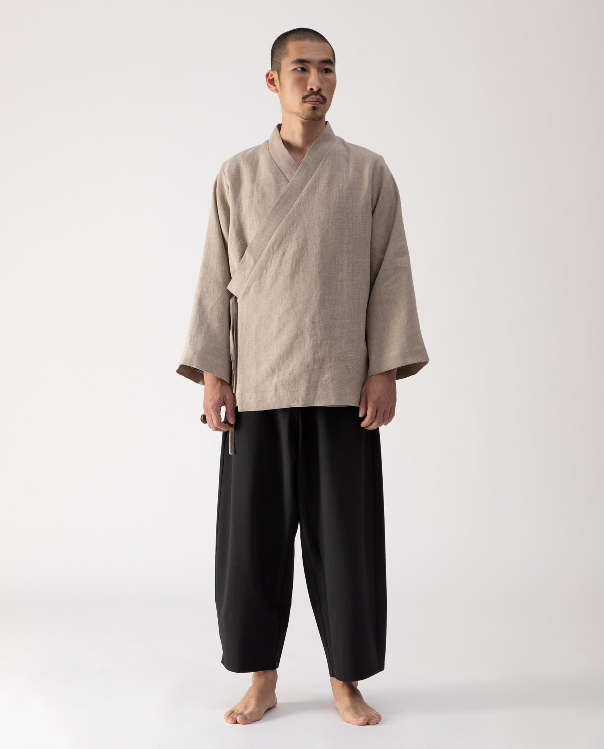 The collaboration between Emil and Swedish artist Jon Koko stems from a shared aesthetic and vision of harmony and balance. The idea behind this project is to make new use and destination for his inspiring art applied to the clothing field, resulting in the creation of two pieces in which nature plays a significant role and the Japanese influence is greatly present: the Jon Koko Samue, a traditional Buddhist work jacket in pure linen and cotton canvas, and the Jon Koko Foulard, a printed silk foulard with the artist’s original illustration.