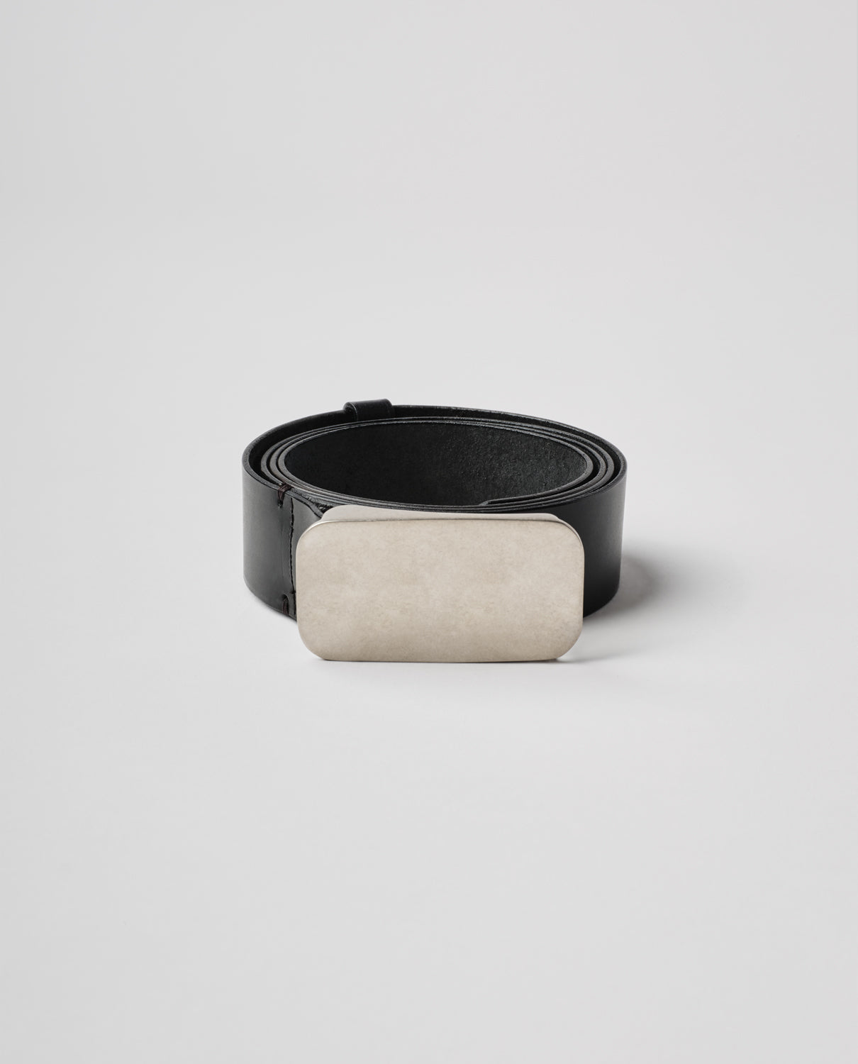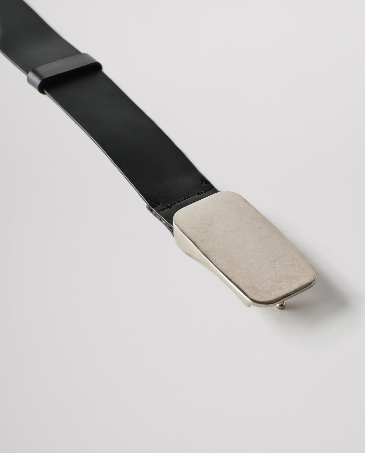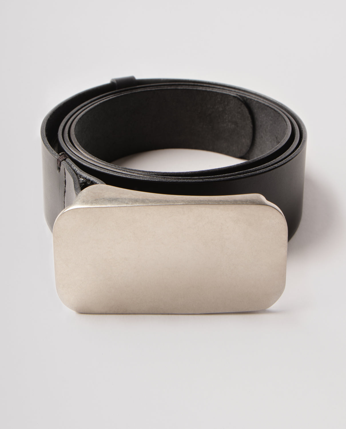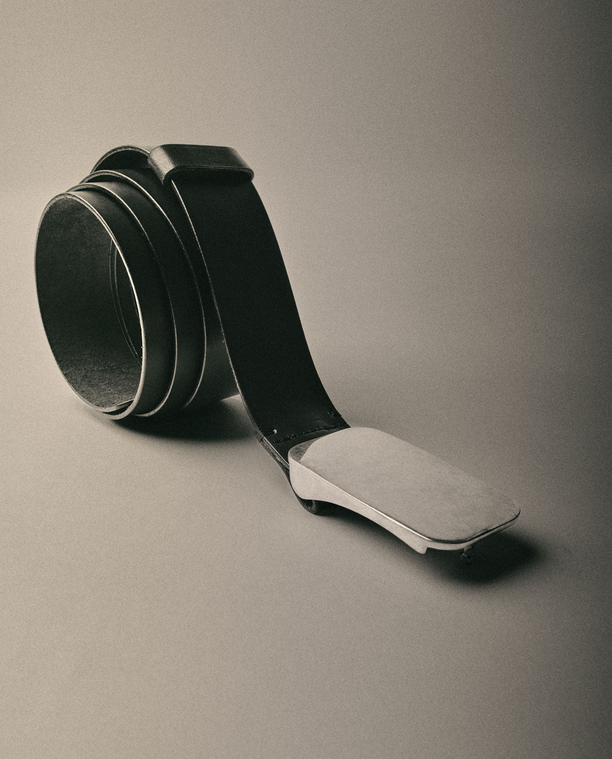 Artisanal genuine leather belt with handcrafted rounded-corner buckle. Hiking-inspired style.