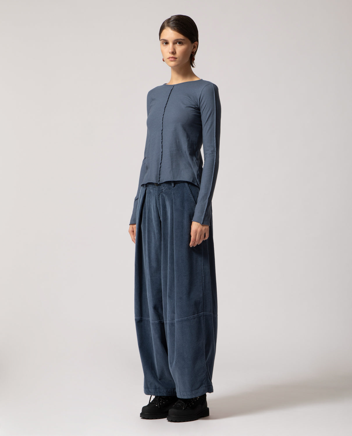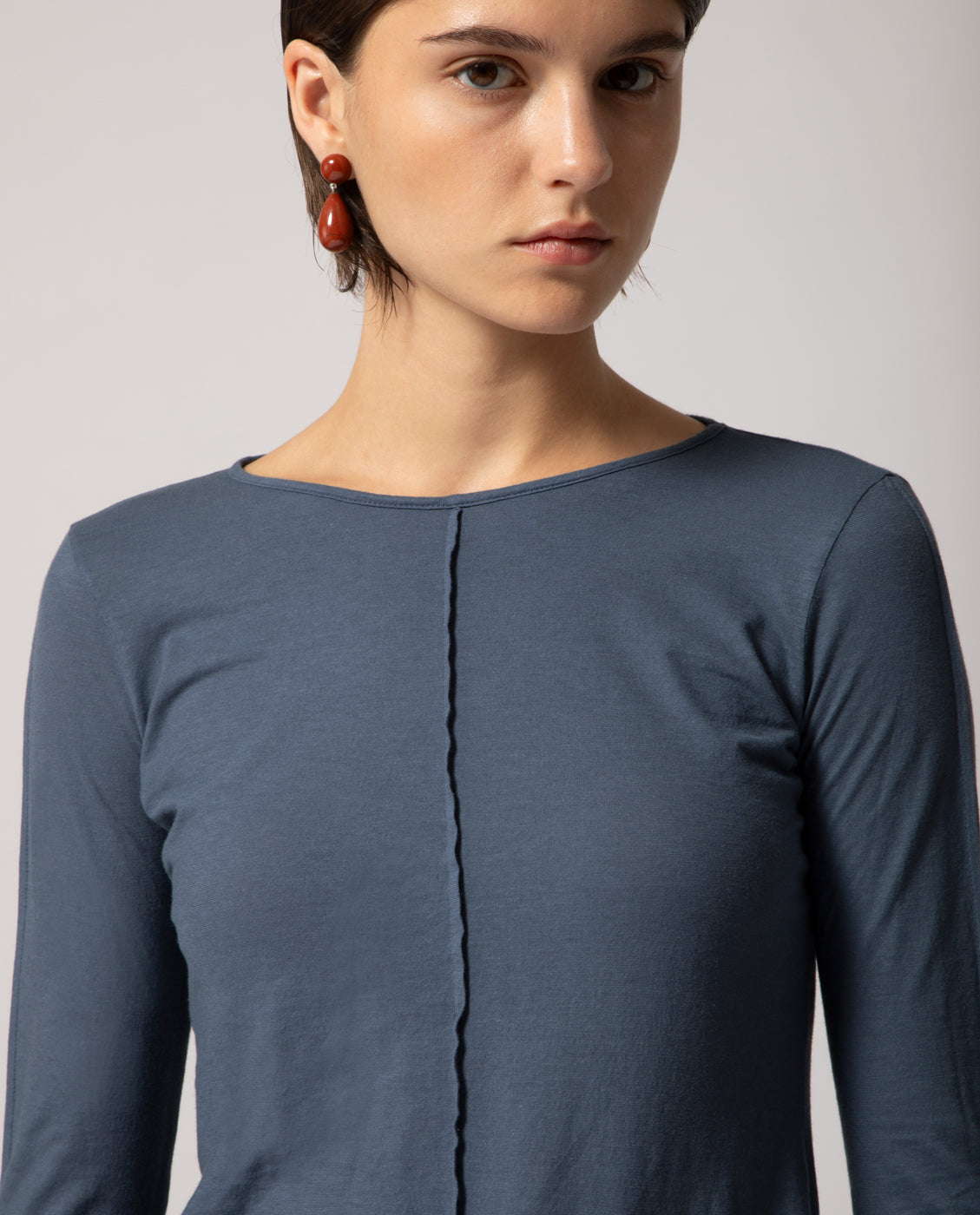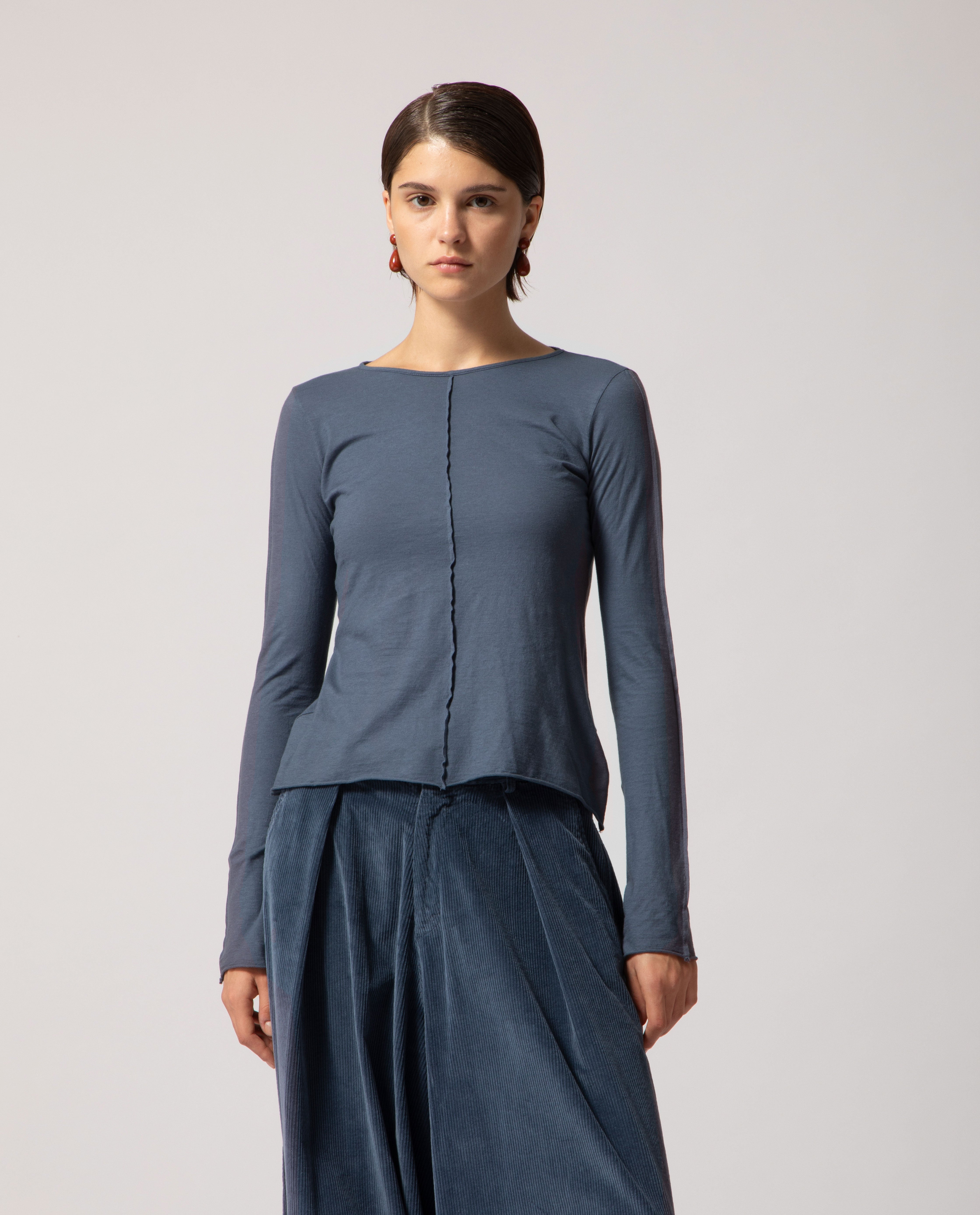 Designed with a slim fit, this piece is crafted in a piqué-effect cotton-cashmere blend. A pinched cloth traces a central spine detail that continues seamlessly along the sleeve, while the hand is supple, featherlight, and enveloping, offering both ease and refinement.