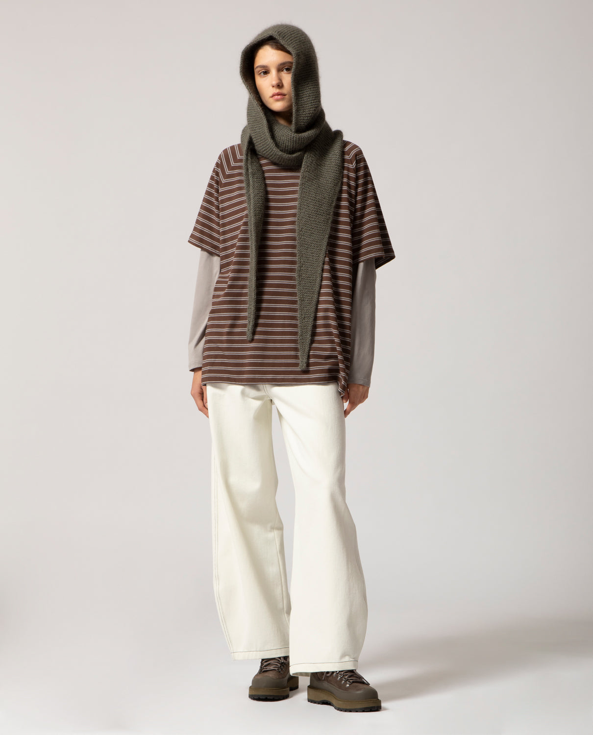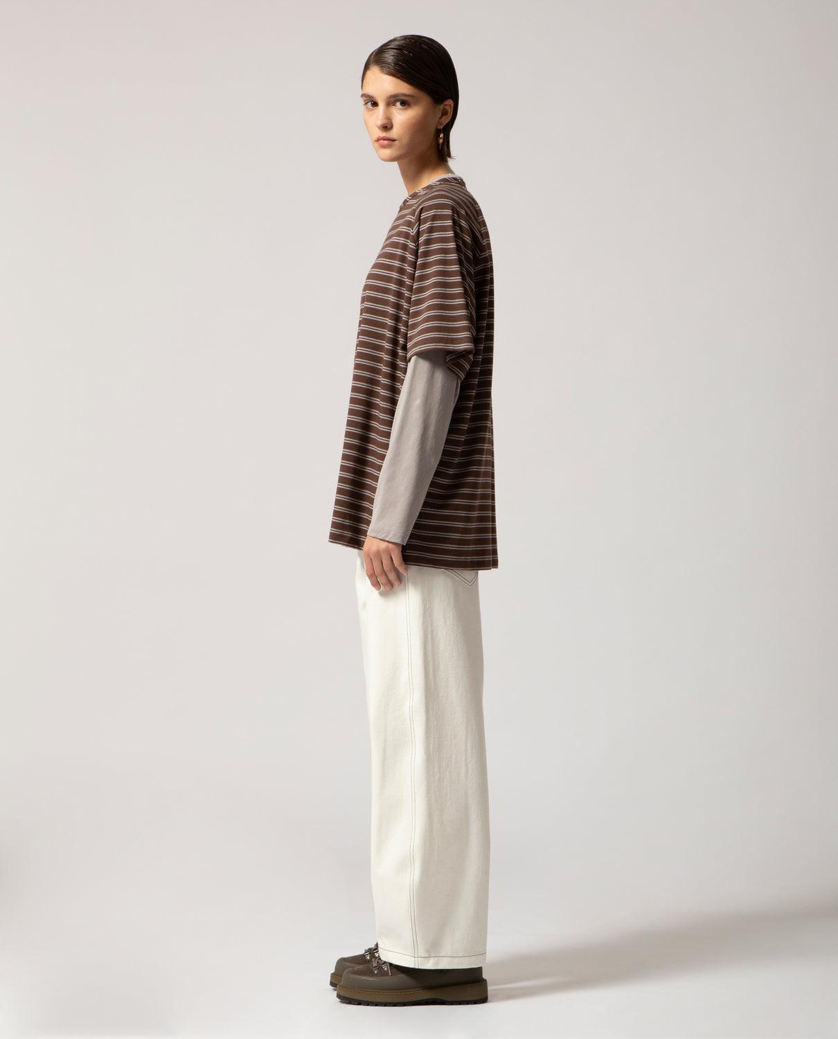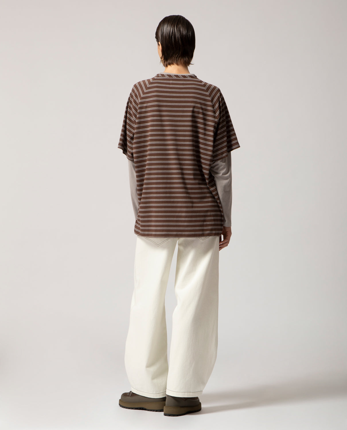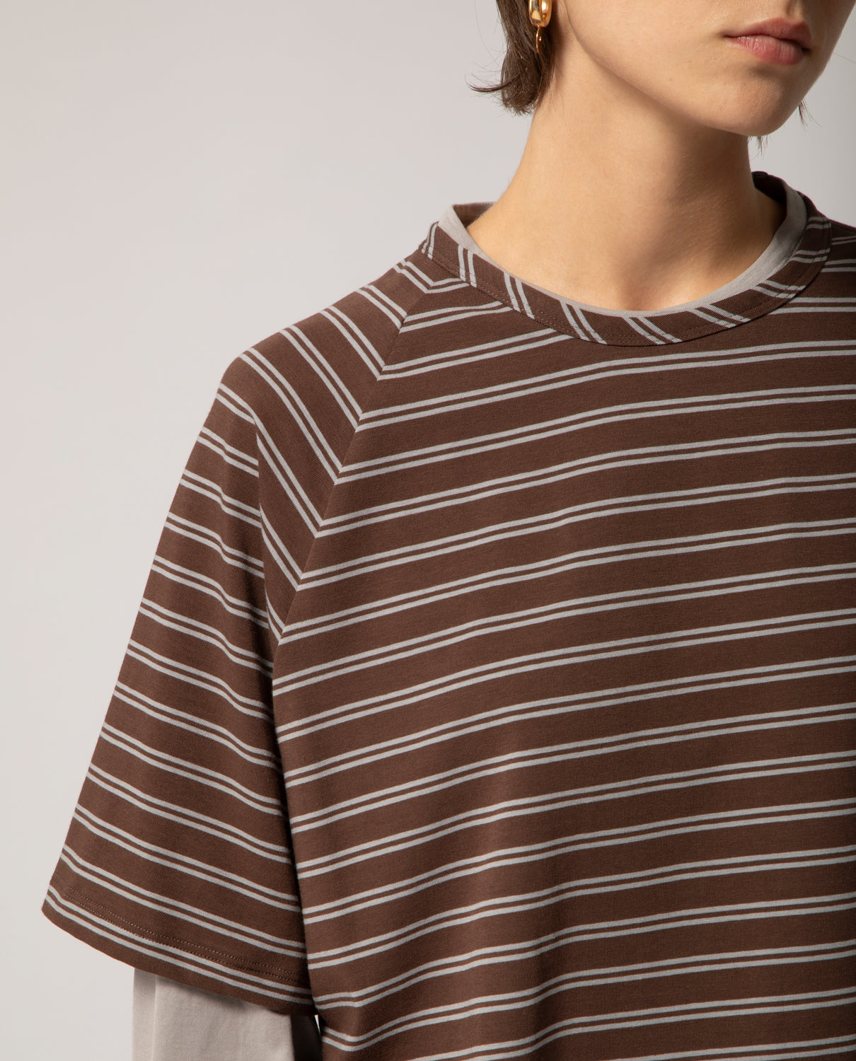 A two-in-one style composed of two contrasting cotton T-shirts, layered together yet fully separable. Designed with raglan sleeves and cut to an oversized silhouette, it comfortably fits sizes S to L.