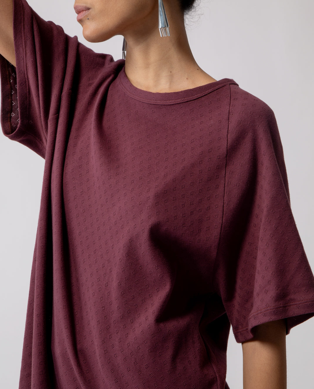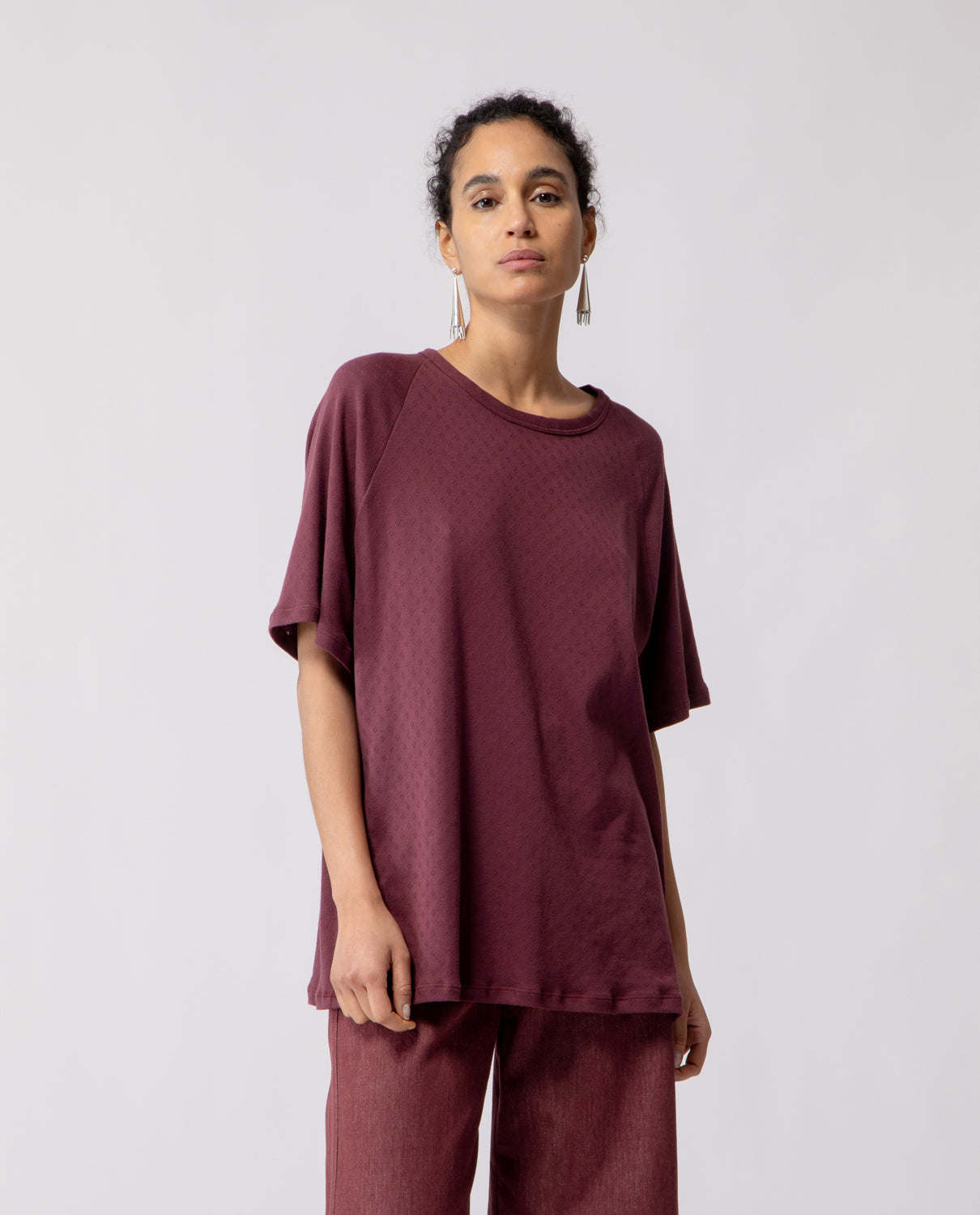 A soft everyday essential, the Anais T-shirt features raglan sleeves and an oversized silhouette designed to fit comfortably from size S to L.