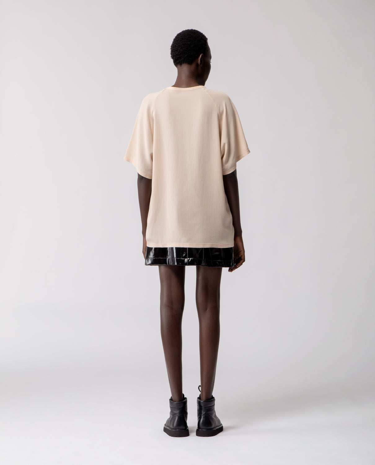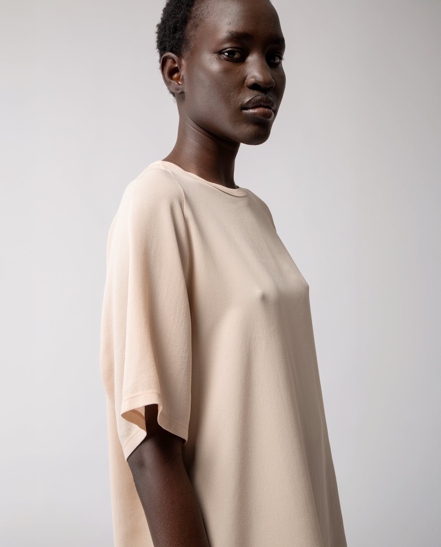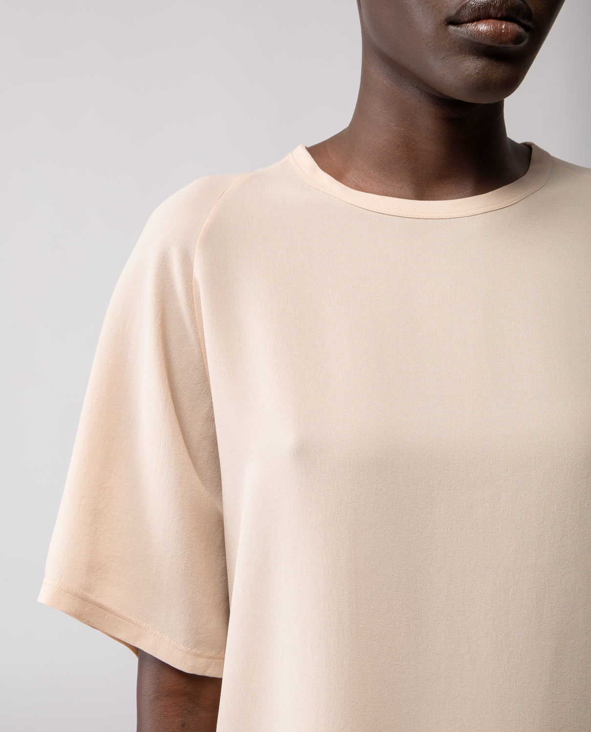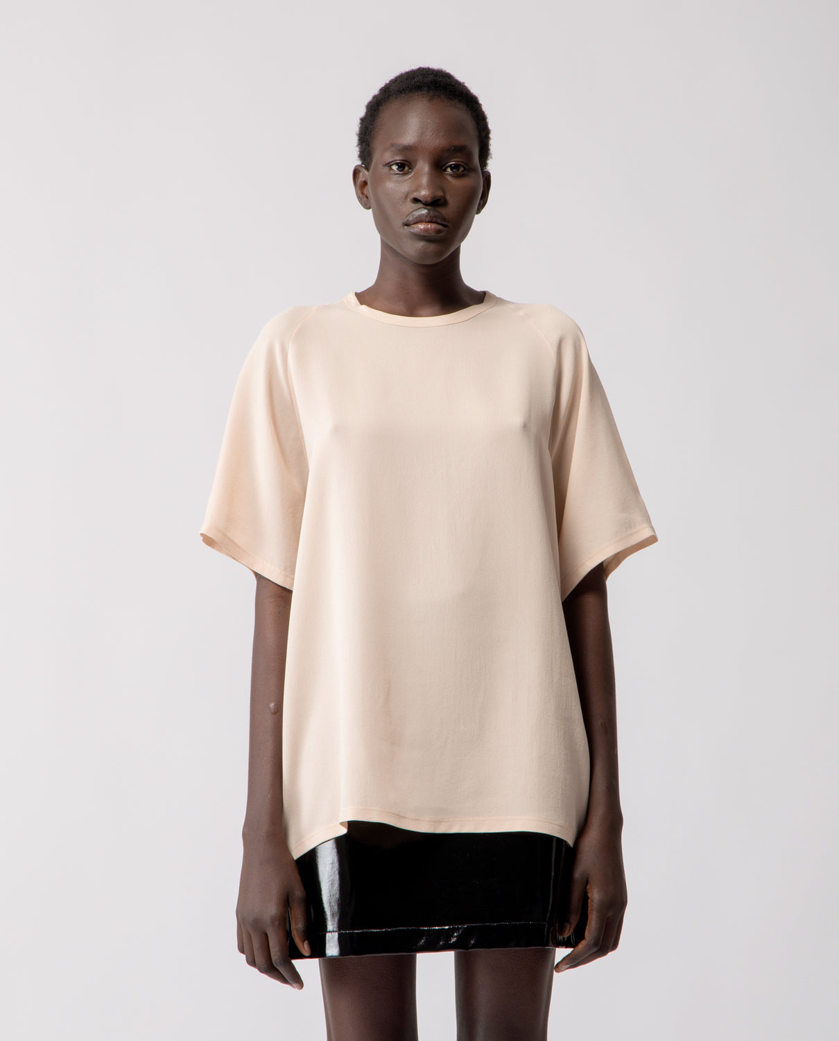 A soft everyday essential, in pure silk. The Anais T-shirt features raglan sleeves and an oversized silhouette designed to fit comfortably from size S to L.