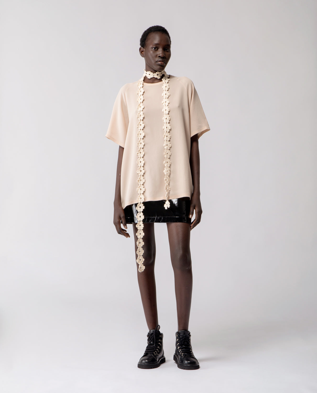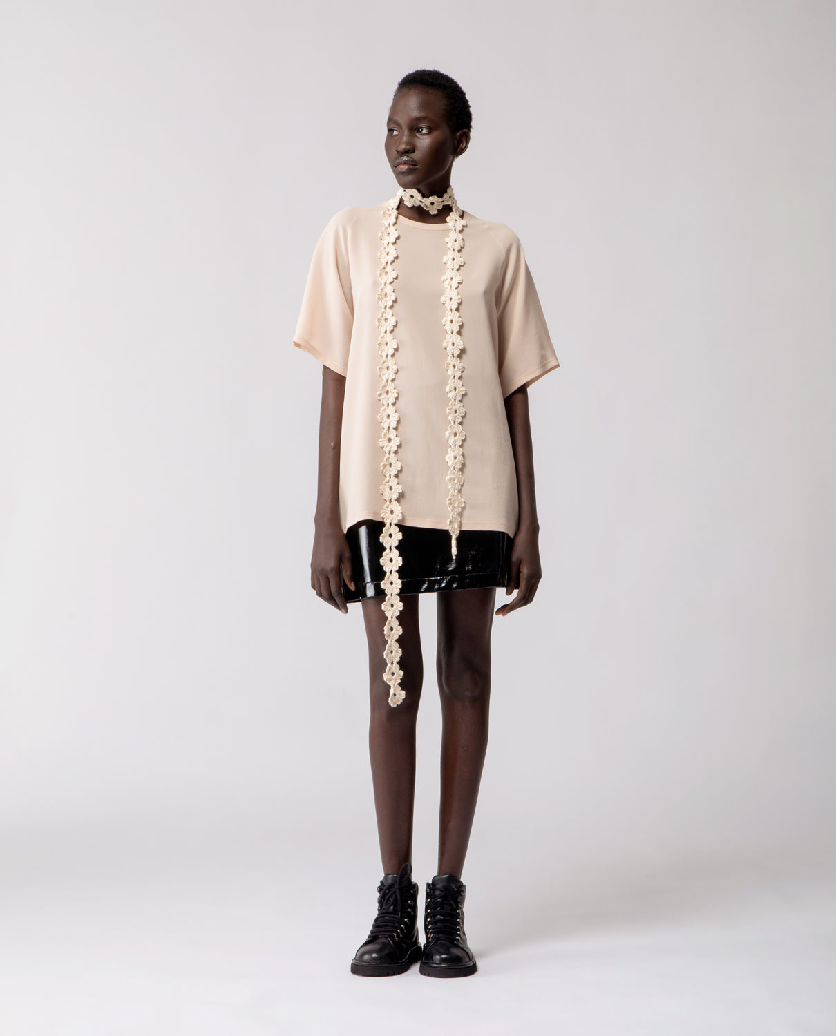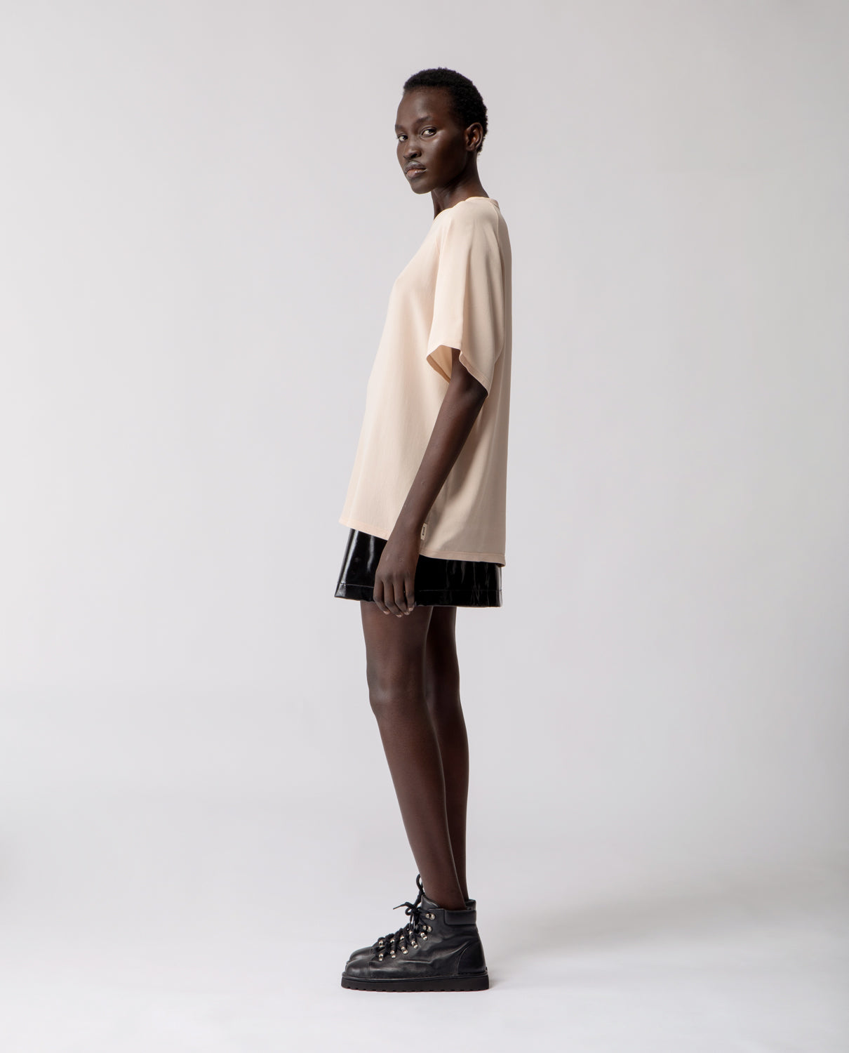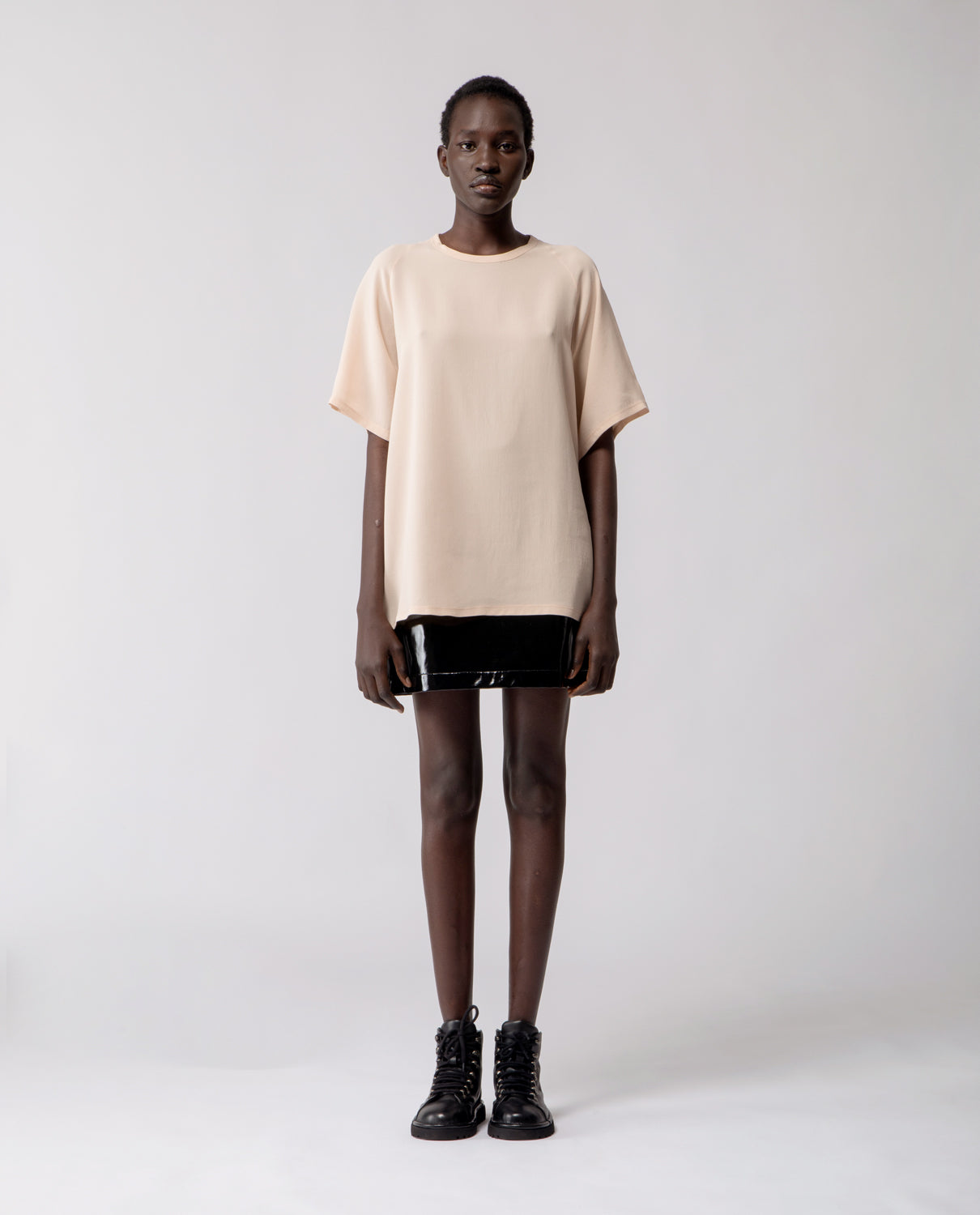 A soft everyday essential, in pure silk. The Anais T-shirt features raglan sleeves and an oversized silhouette designed to fit comfortably from size S to L.