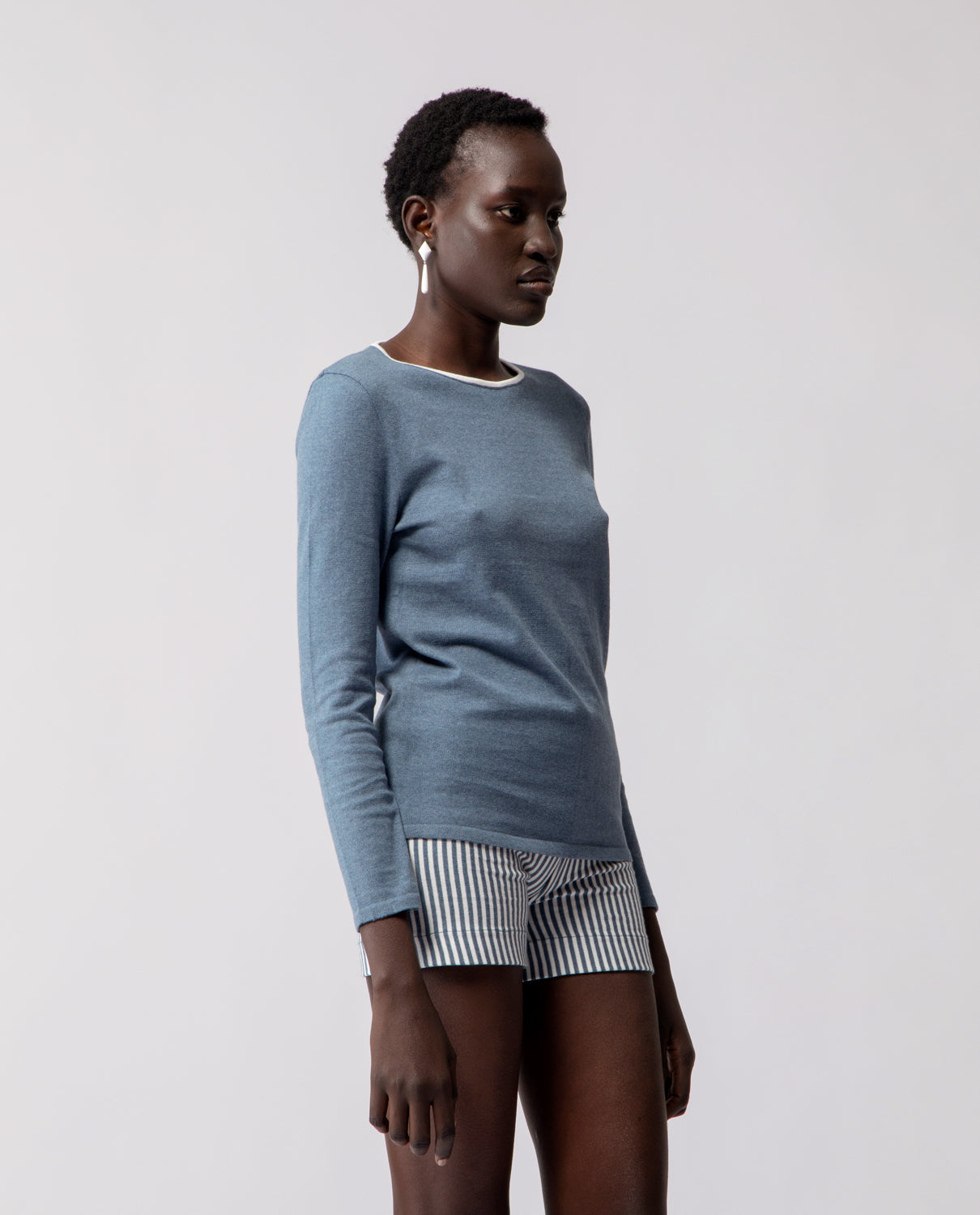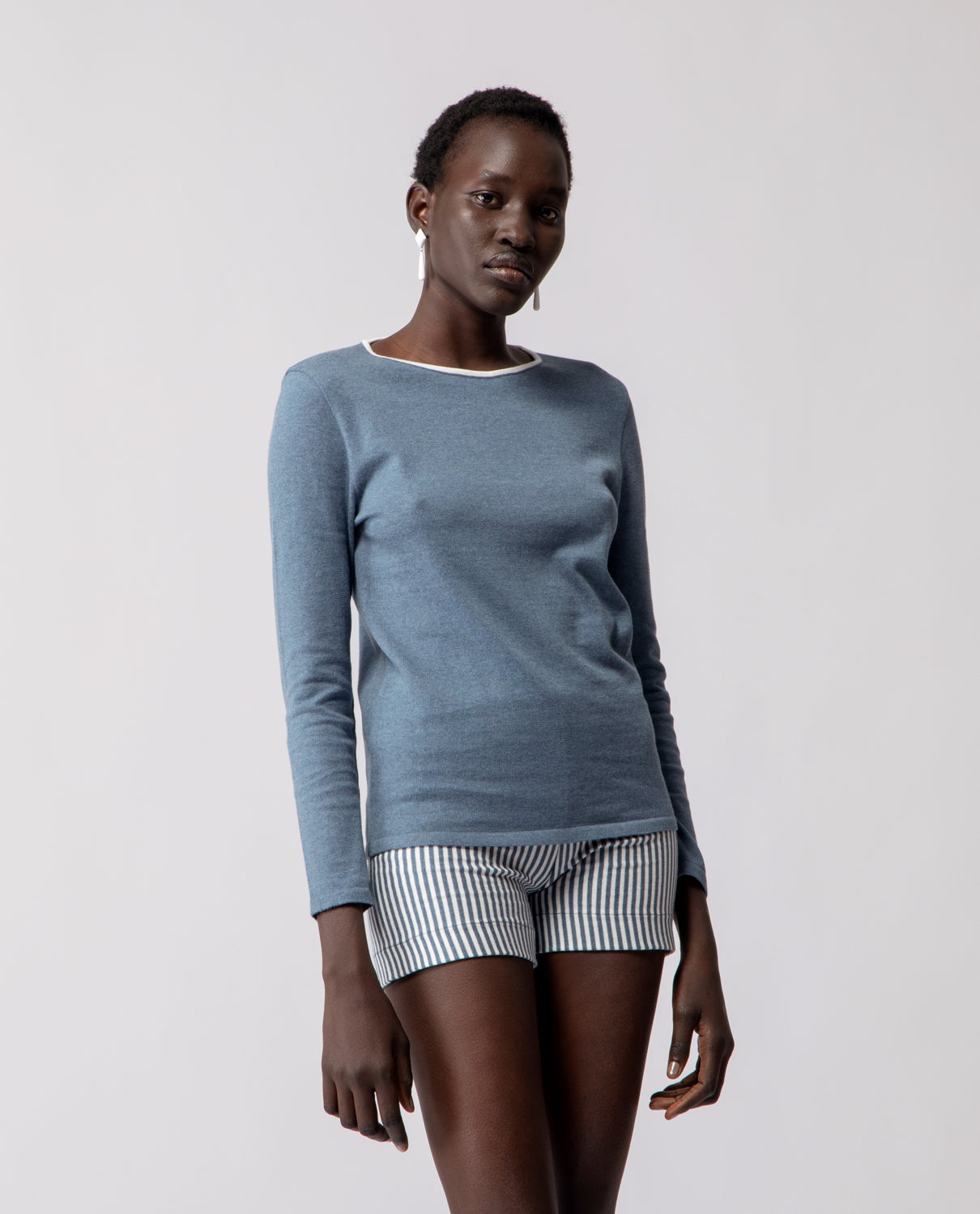 Long-sleeve T-shirt crafted in lightweight cotton, finished with a contrasting trim that subtly defines the neckline.