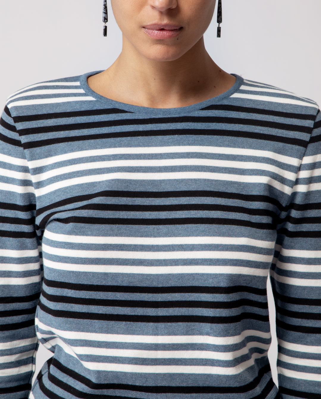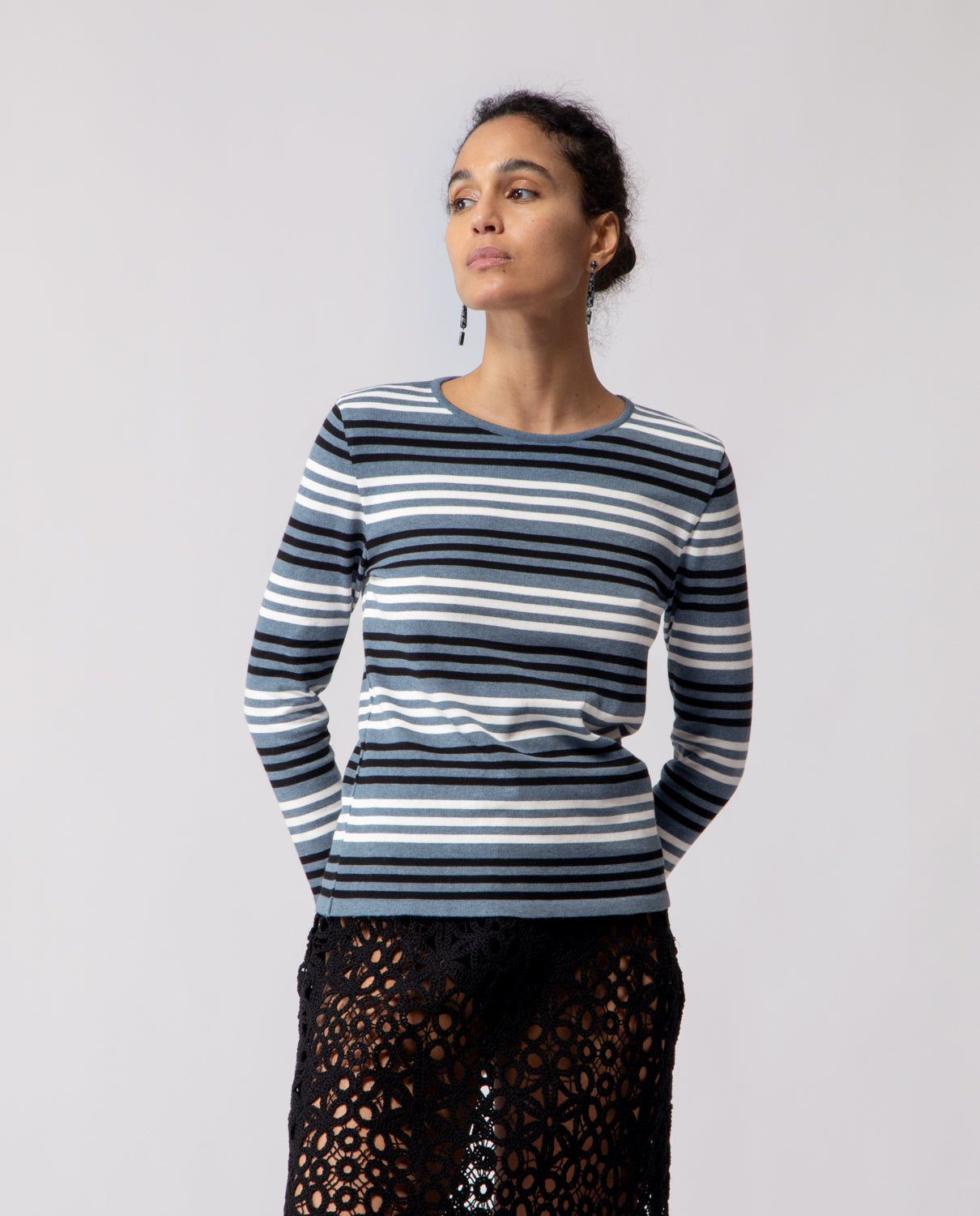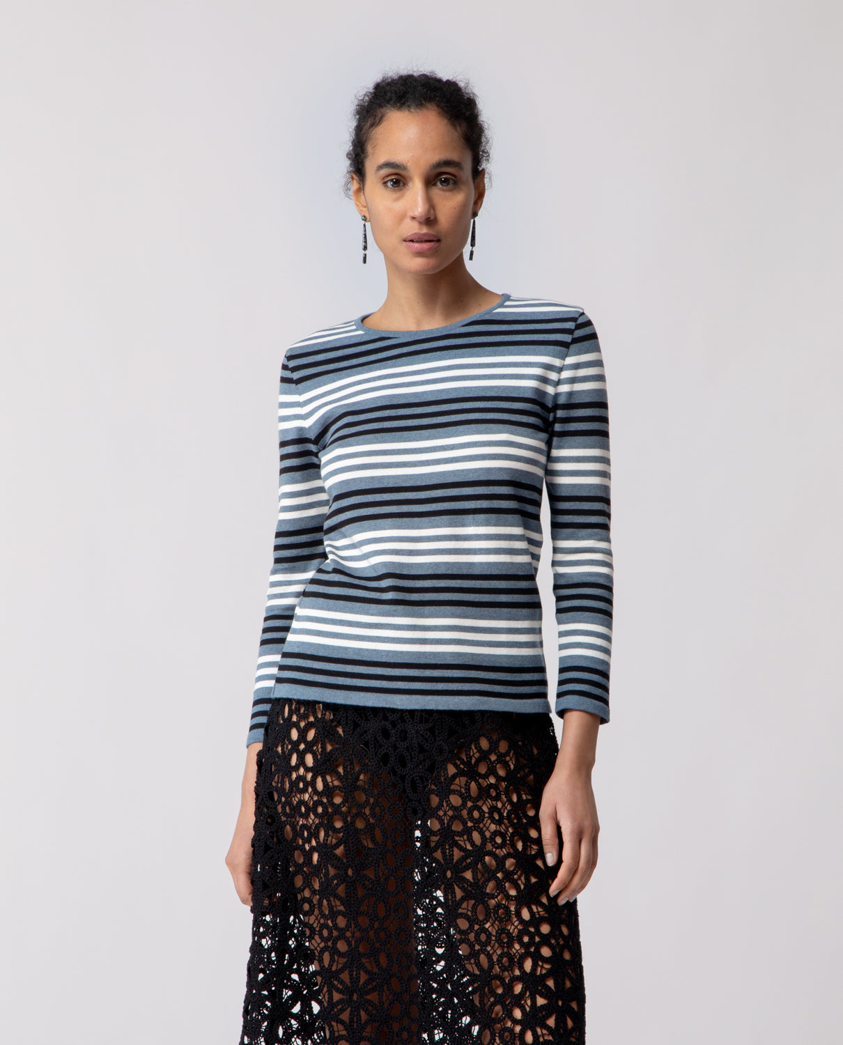 Long-sleeve T-shirt crafted in lightweight cotton, defined by a clean striped pattern and an easy, versatile silhouette.