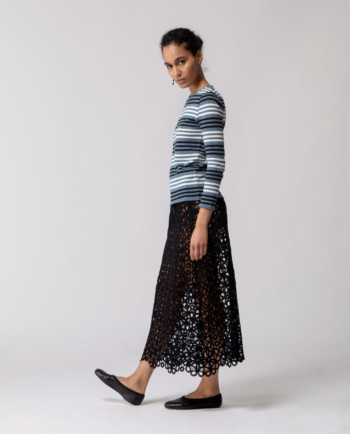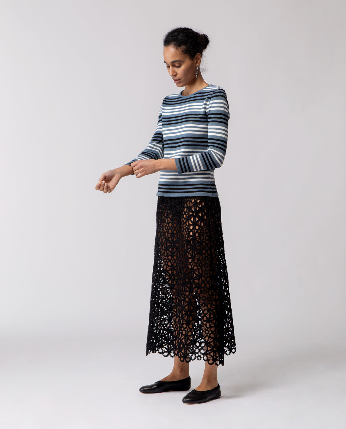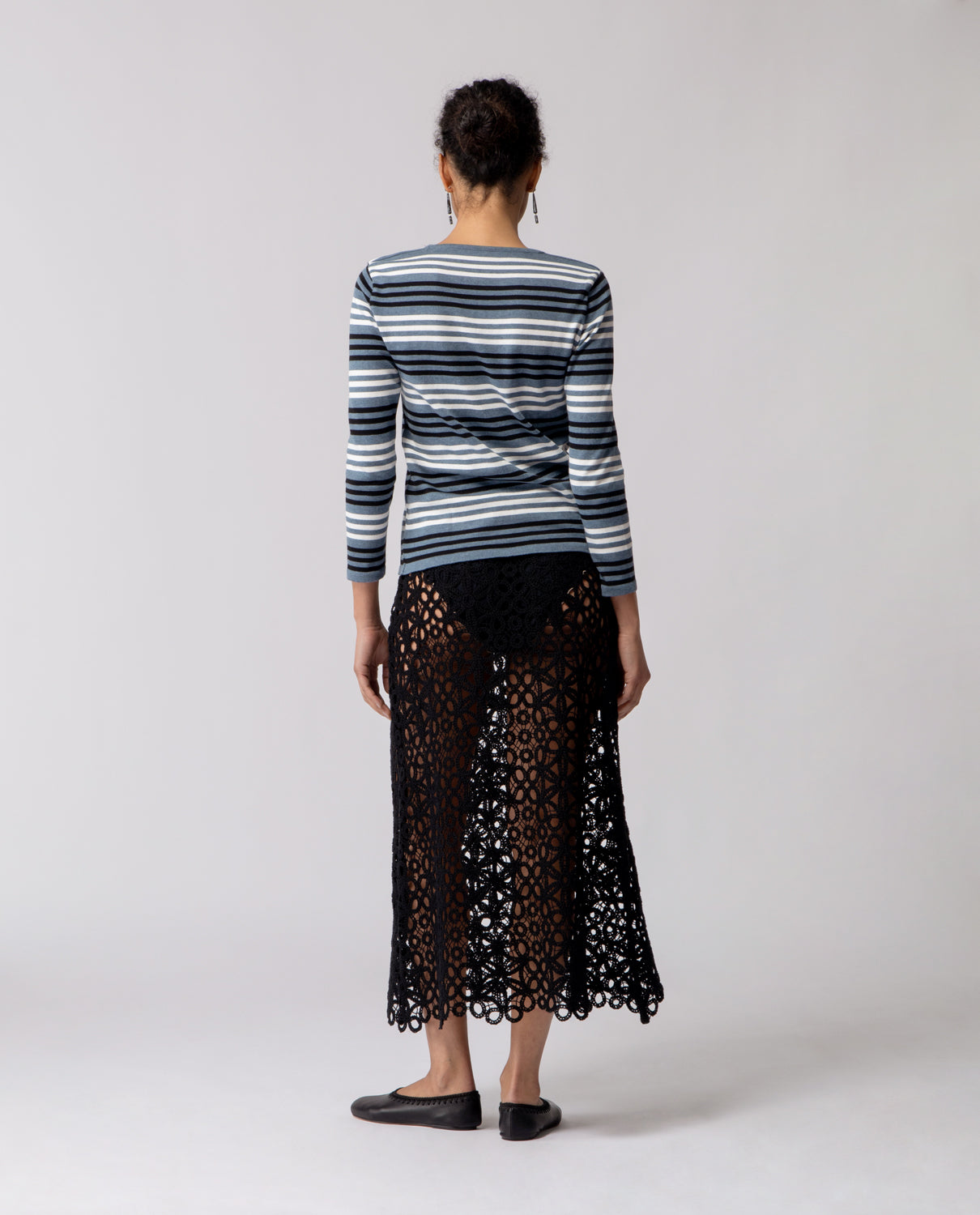 Long-sleeve T-shirt crafted in lightweight cotton, defined by a clean striped pattern and an easy, versatile silhouette.