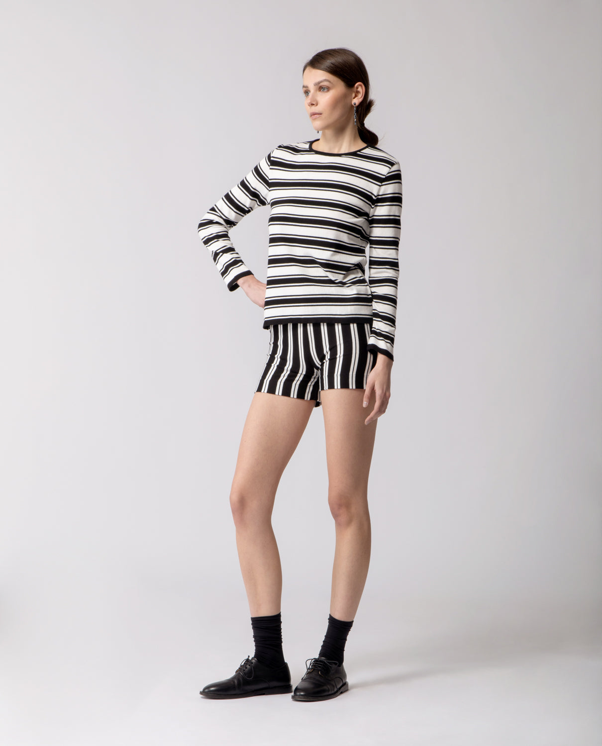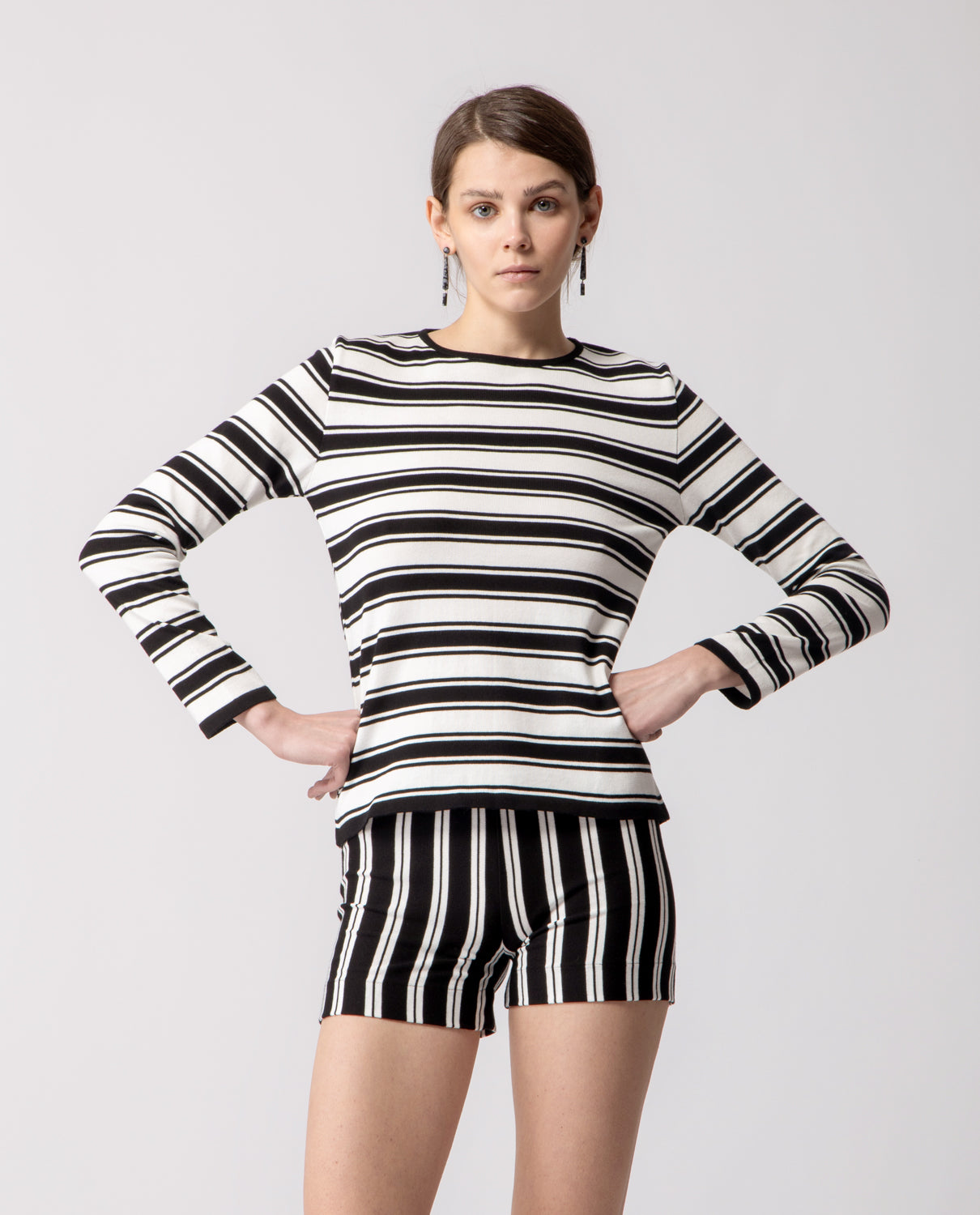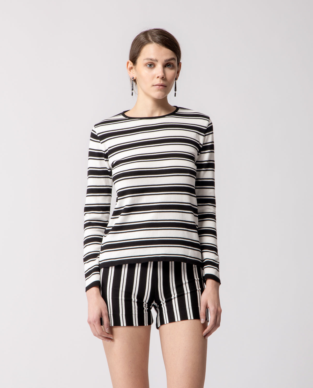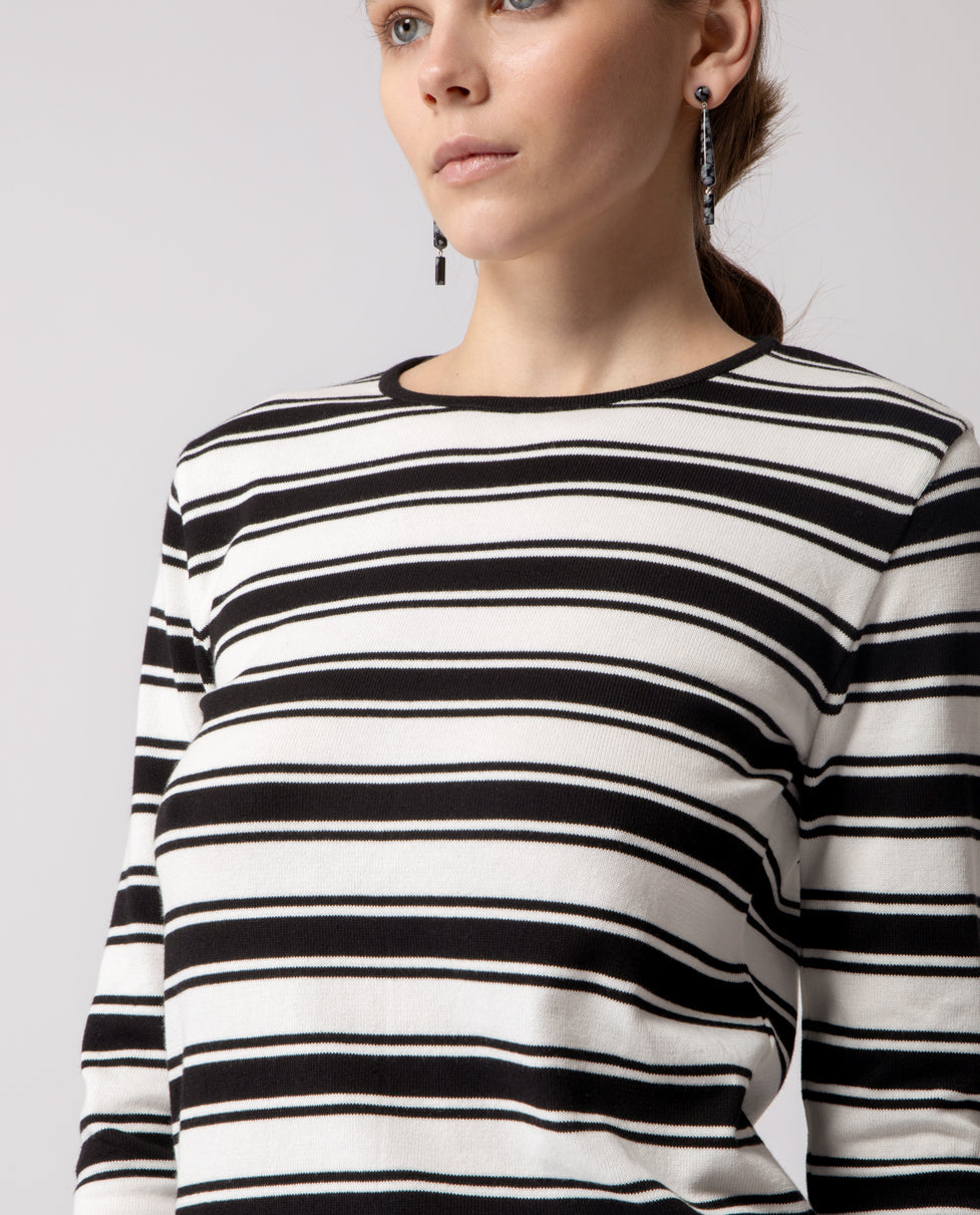 Long-sleeve T-shirt crafted in lightweight cotton, defined by a clean striped pattern and an easy, versatile silhouette.