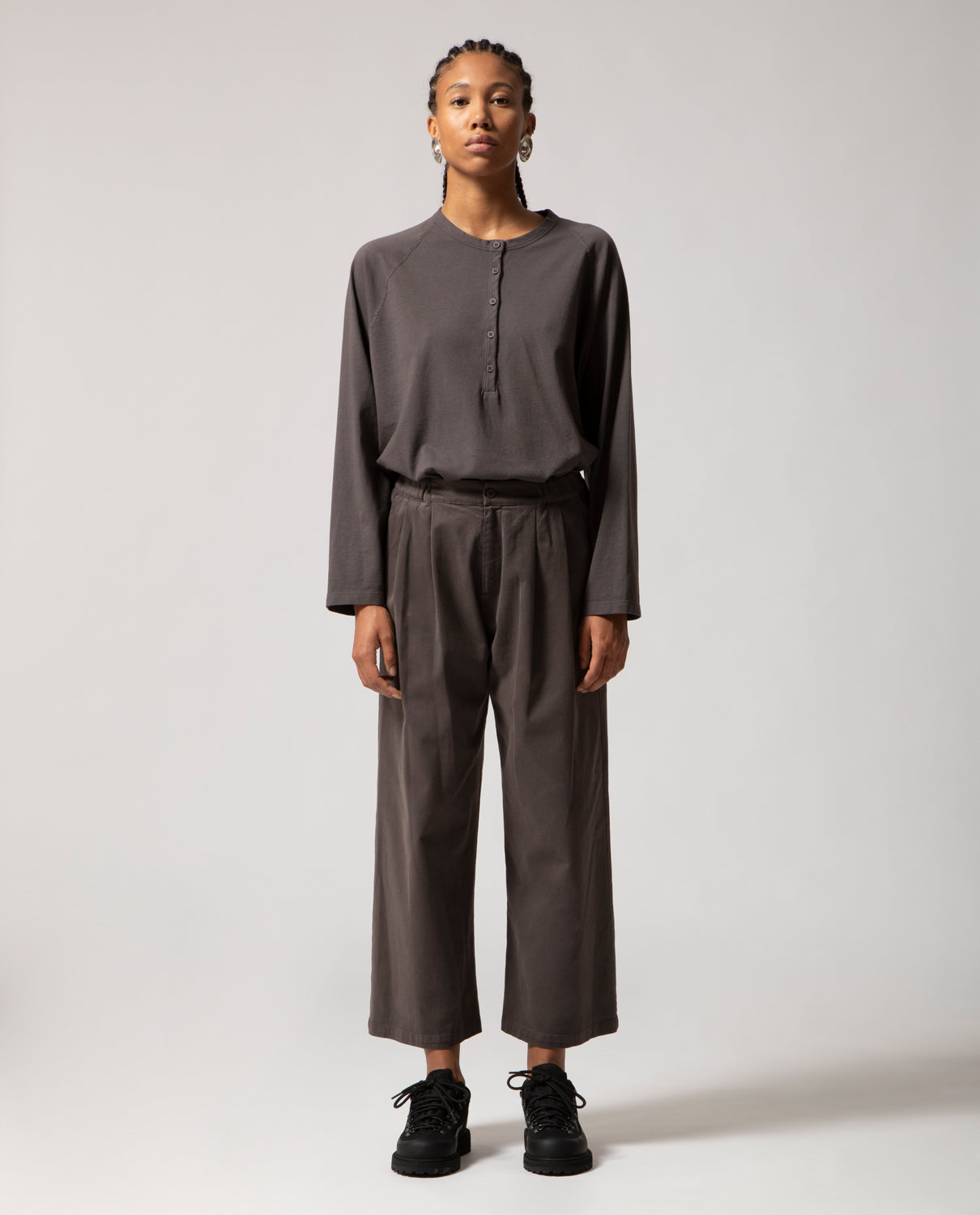 Crafted with attention to detail and garment-dyed, the Helsa pants are offered in Emil’s AW25/26 colour palette and available in sizes S, M, and L.