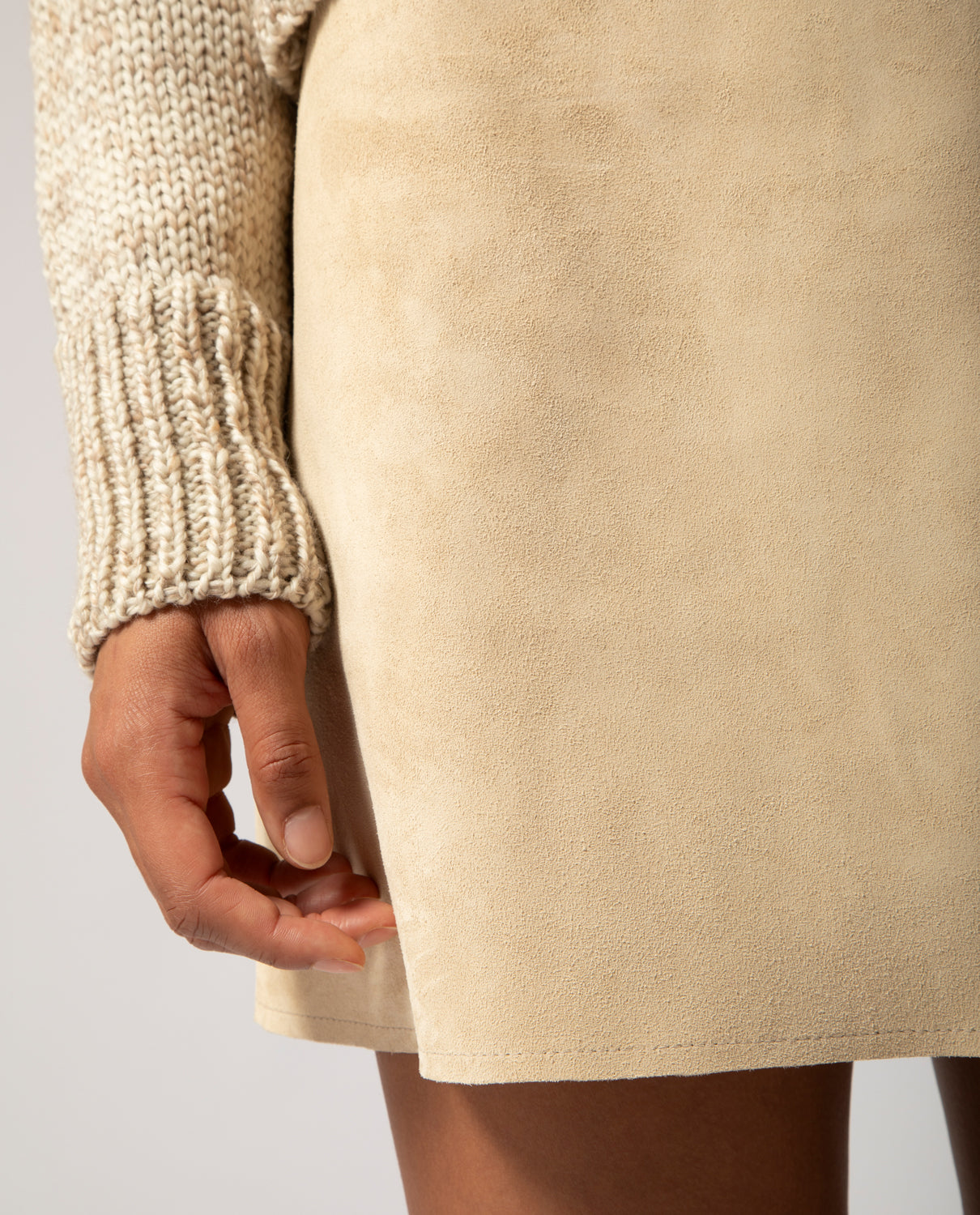 Short A-line cut leather skirt, detailed with a concealed zip closure. The piece is fully lined in cotton for comfort and structure.