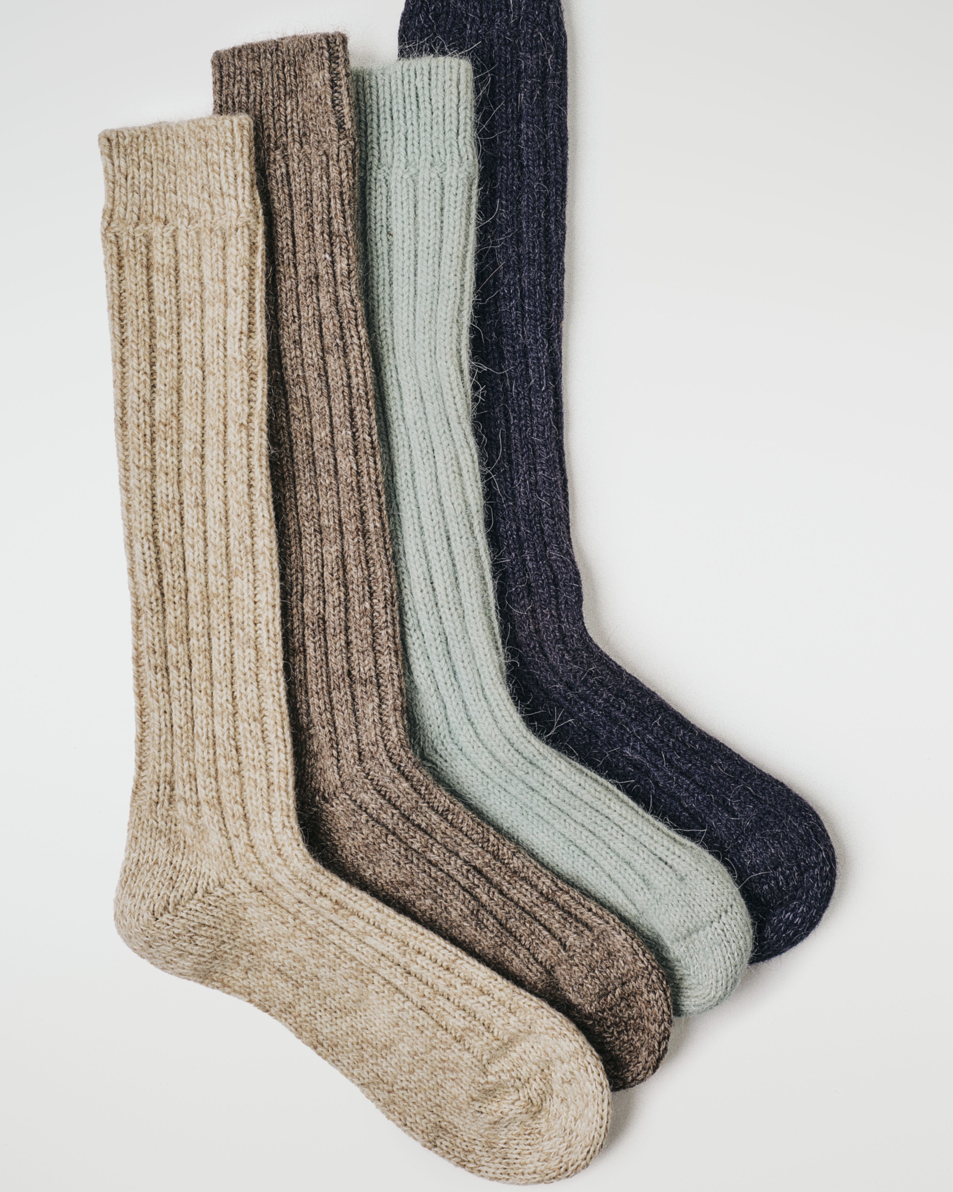 Soft and warm winter socks, crafted in Italy from a blend of pure sheep and alpaca wool, entirely free of chemical treatments.