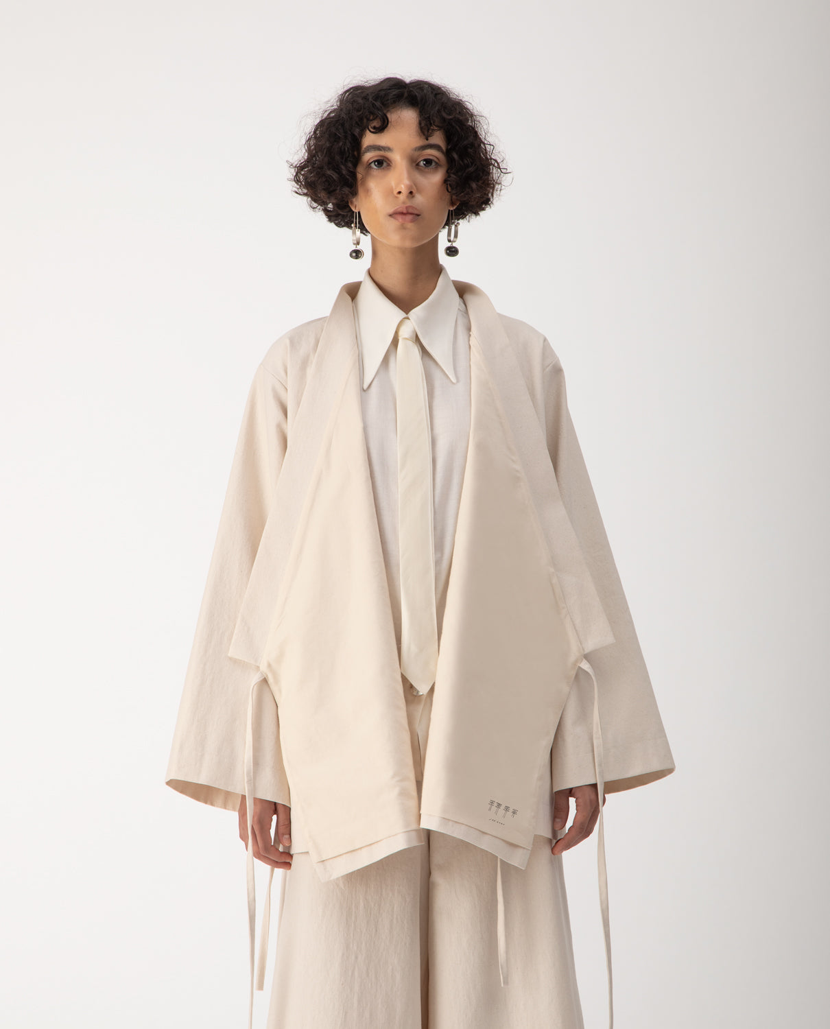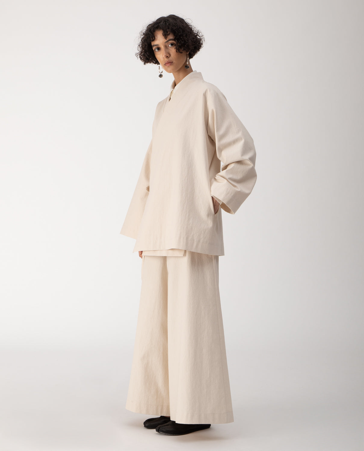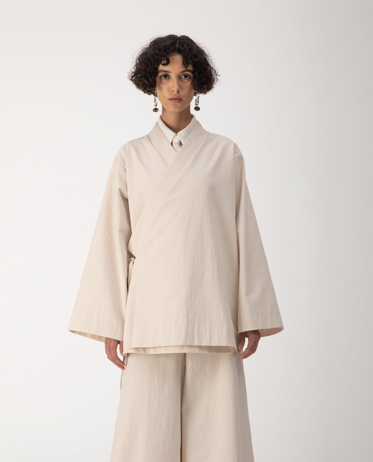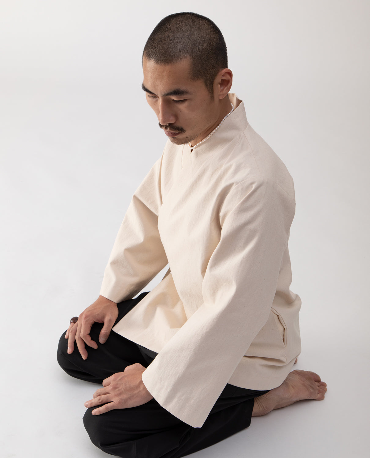 Signature genderless Japanese samue designed in collaboration with artist Jon Koko.