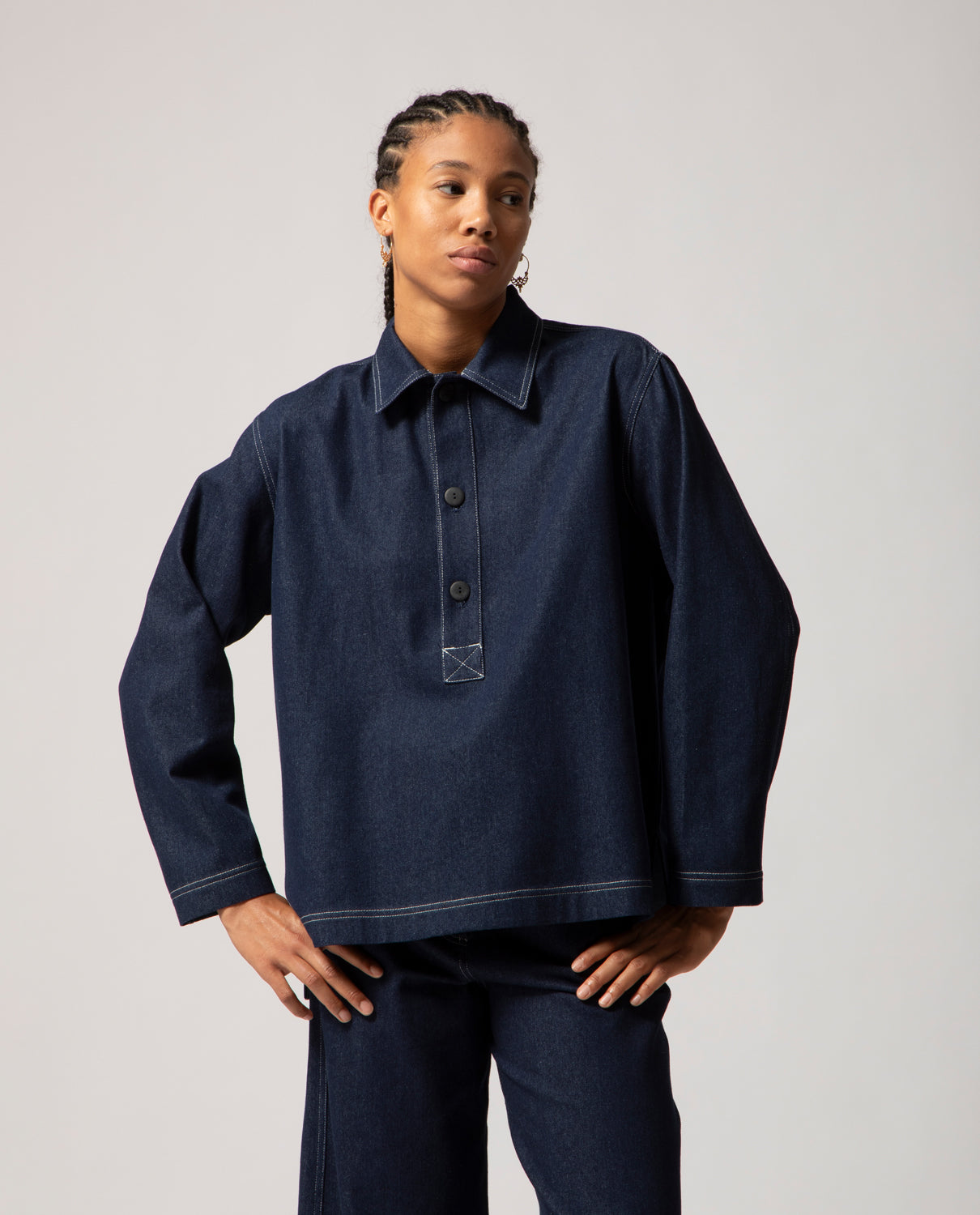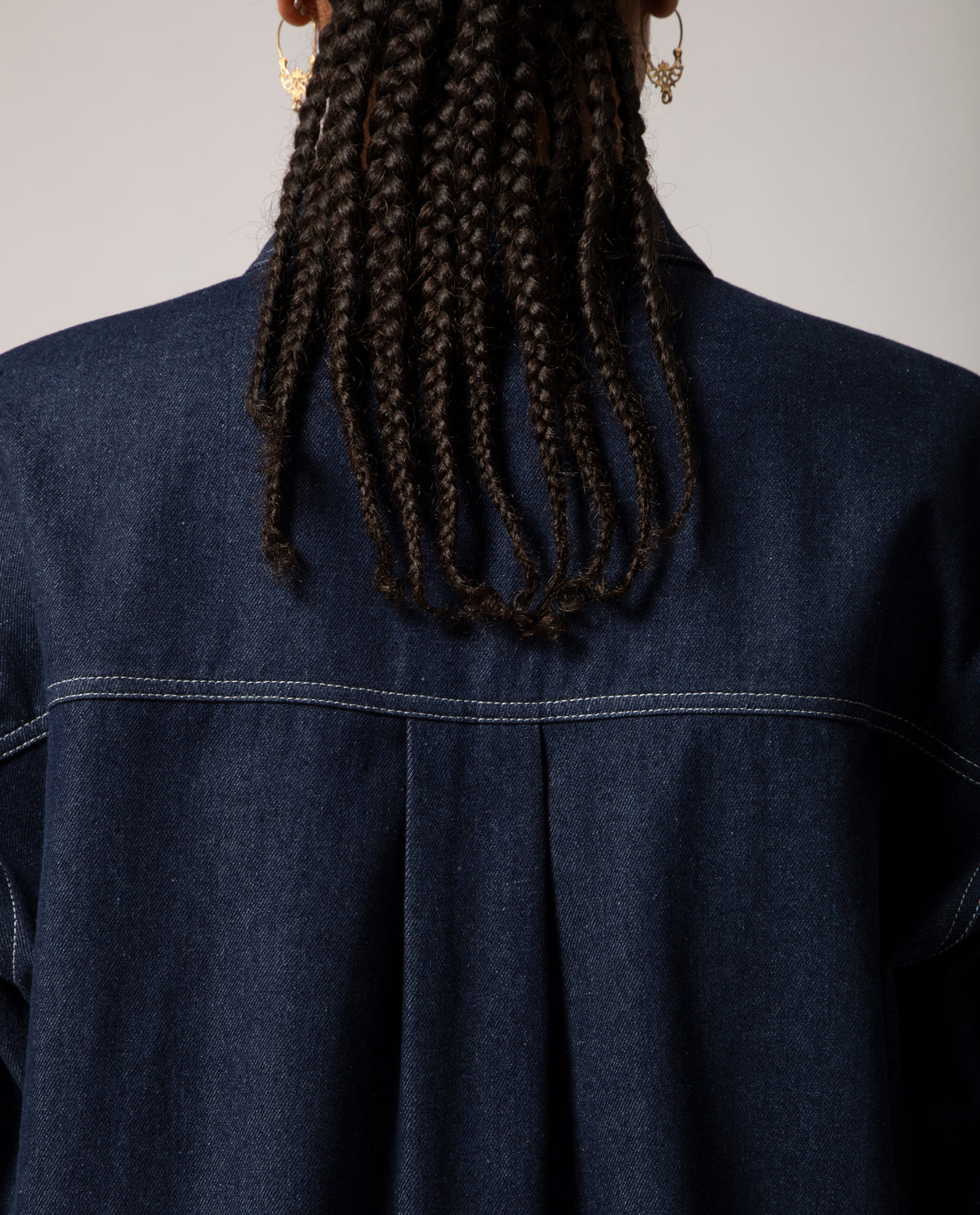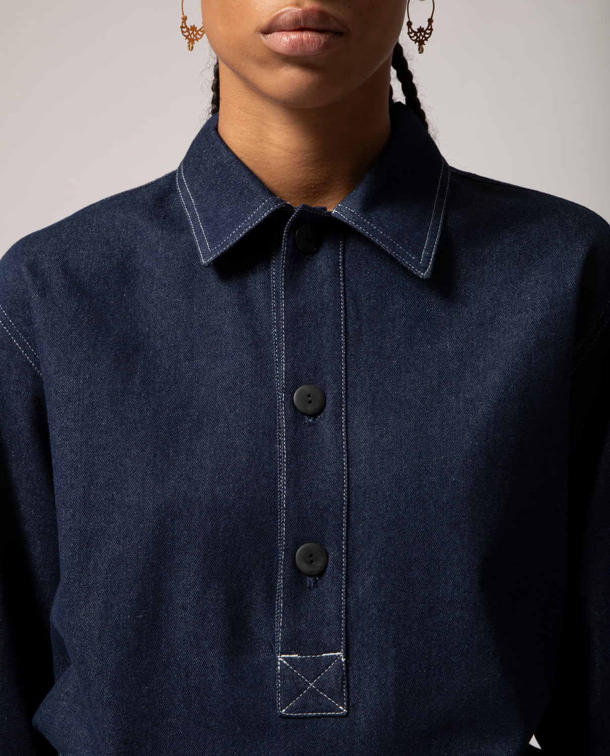 Cut in an oversized silhouette, this shirt is crafted from 100% cotton denim and finished with contrasting white stitching. Detailed with a button closure, it combines a structured fabric with a relaxed fit.