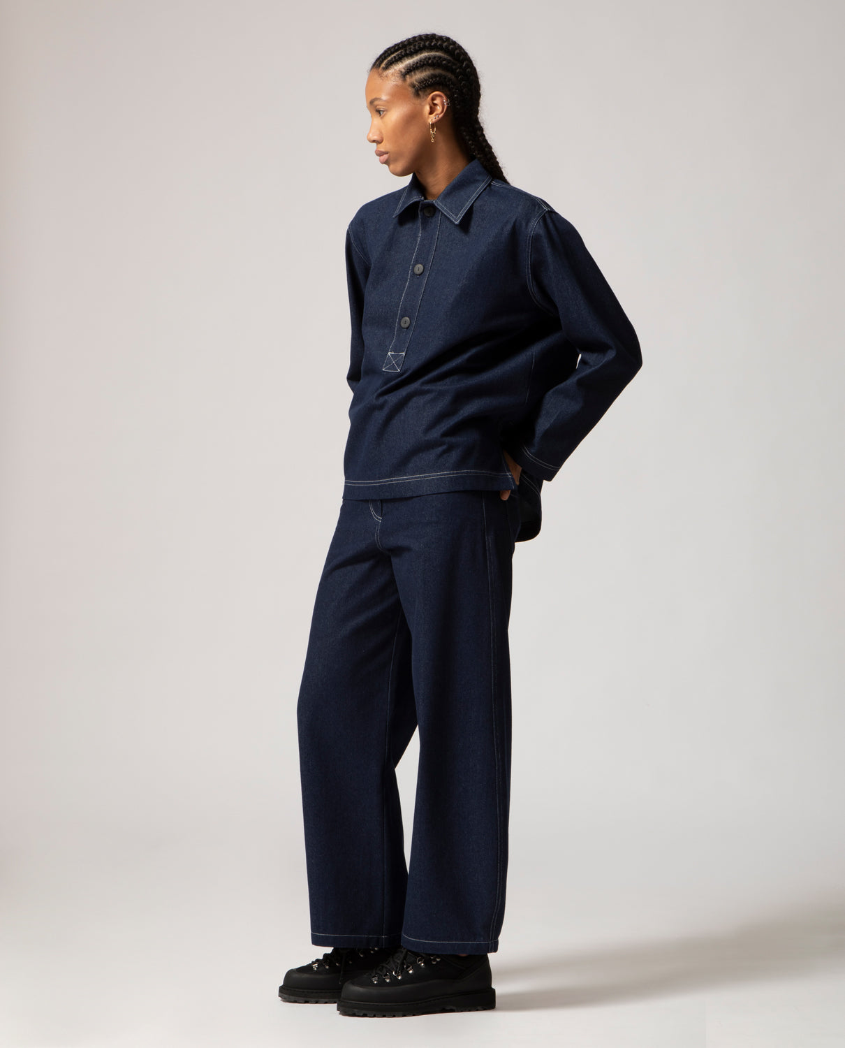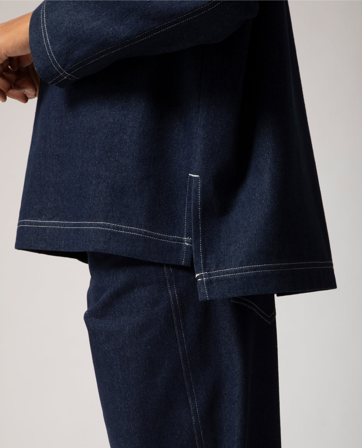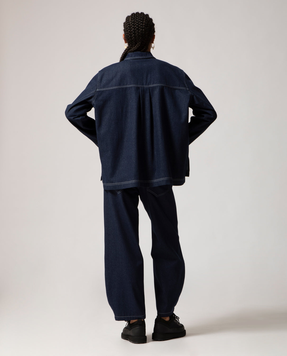 Cut in an oversized silhouette, this shirt is crafted from 100% cotton denim and finished with contrasting white stitching. Detailed with a button closure, it combines a structured fabric with a relaxed fit.