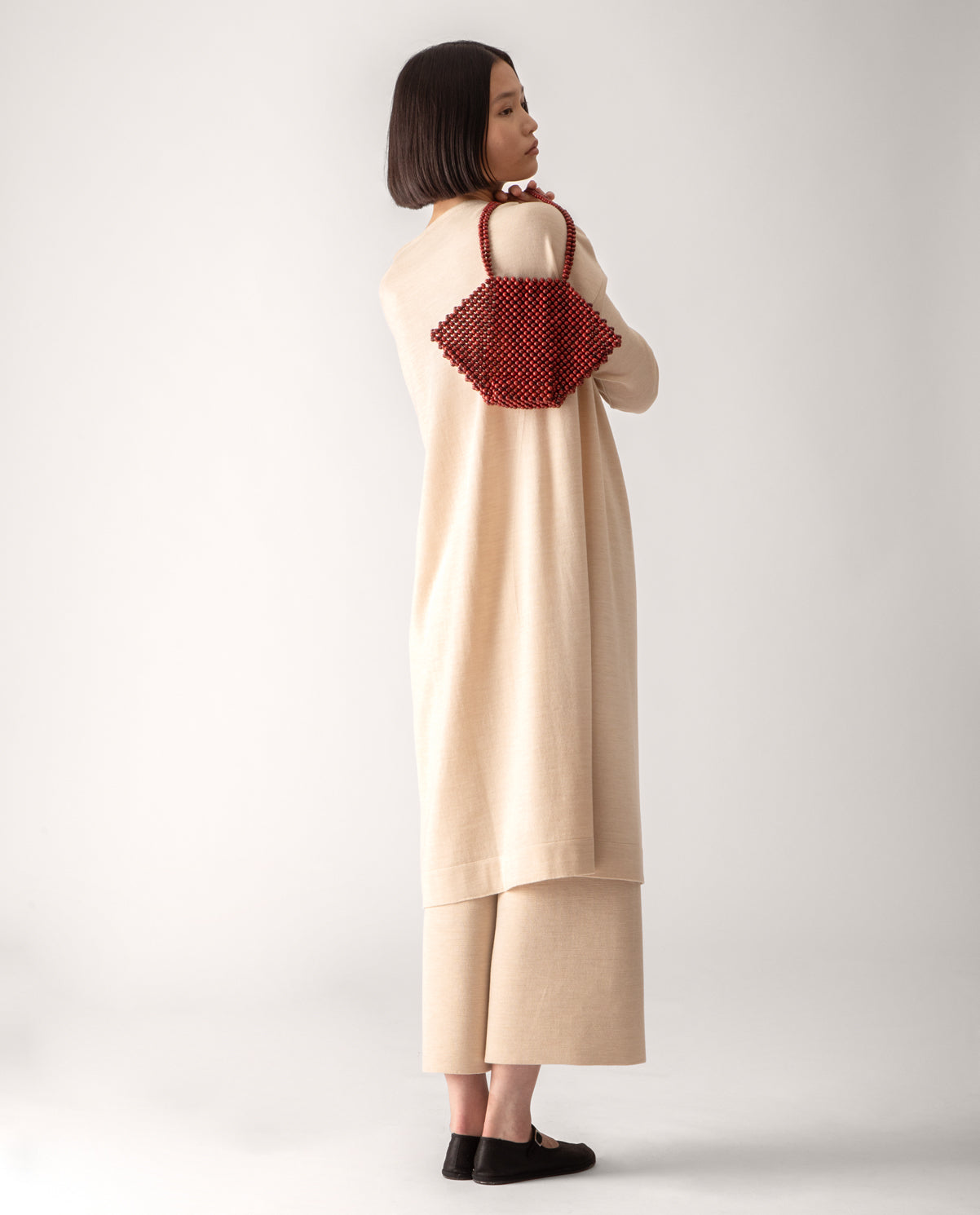 The Kenga handbag is part of a special project that plays with colours and shapes, making use of an out-of-production stock of vintage wooden beads from the early 1950s. Due to the limited supply, this item is available in a few pieces, only.