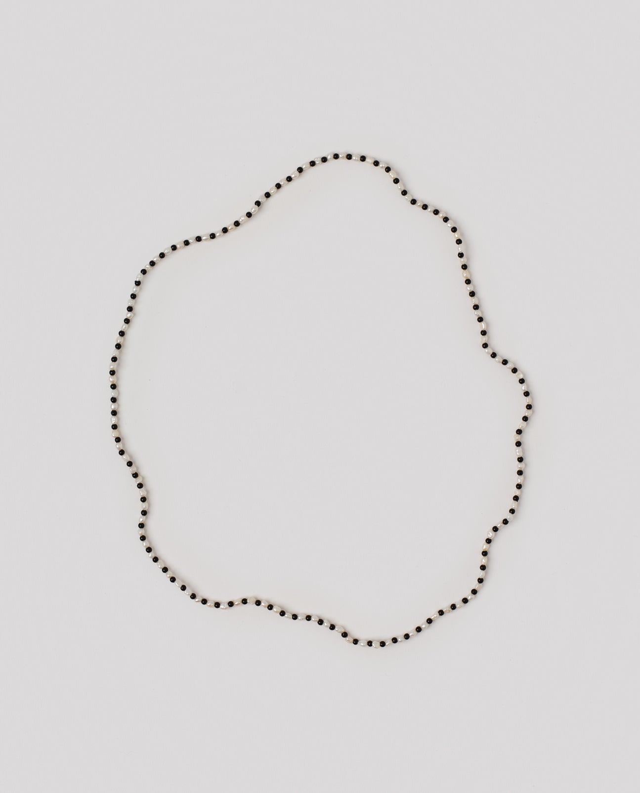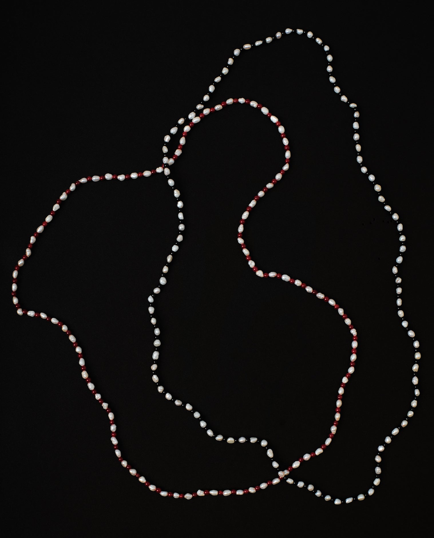 Delicate necklace made by hand, composed of small freshwater pearls alternated with colourful glass beads.