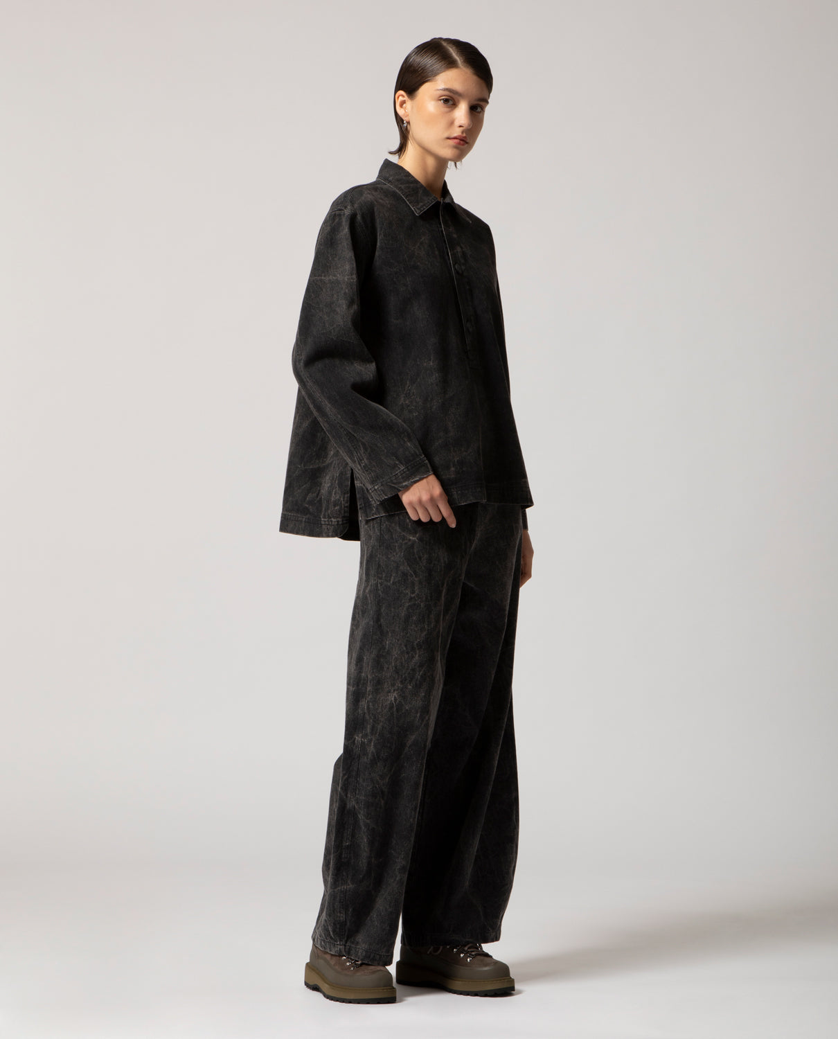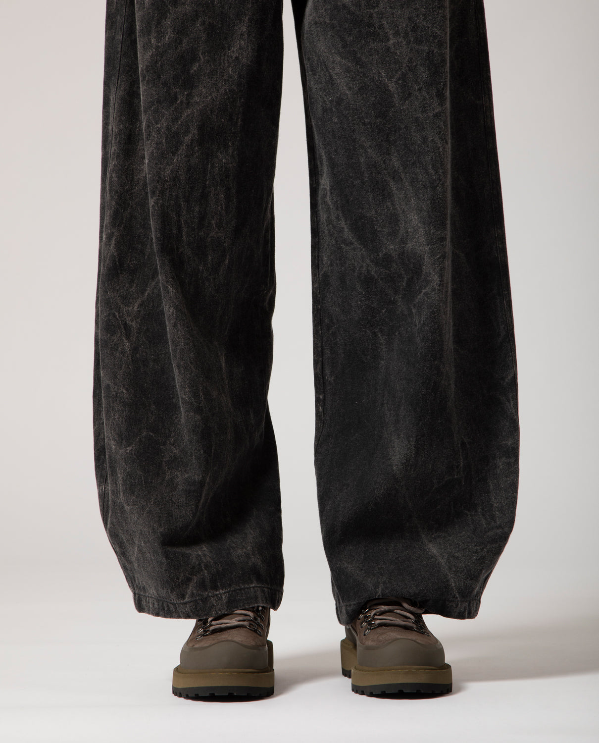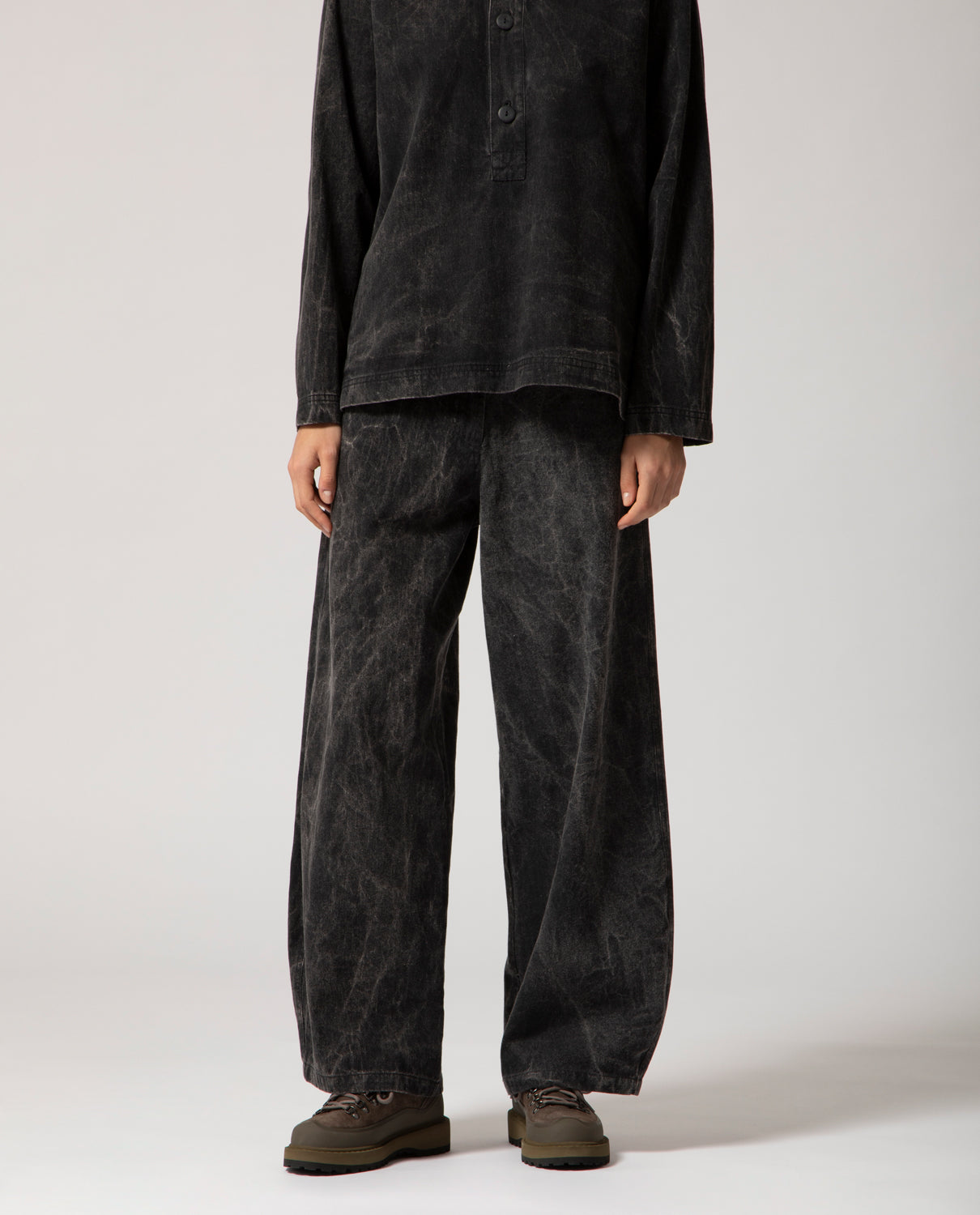 Crafted in black stonewashed denim, these trousers are cut to a relaxed, baggy fit with a slightly rounded hemline. Finished with tonal stitching and a classic five-pocket construction.