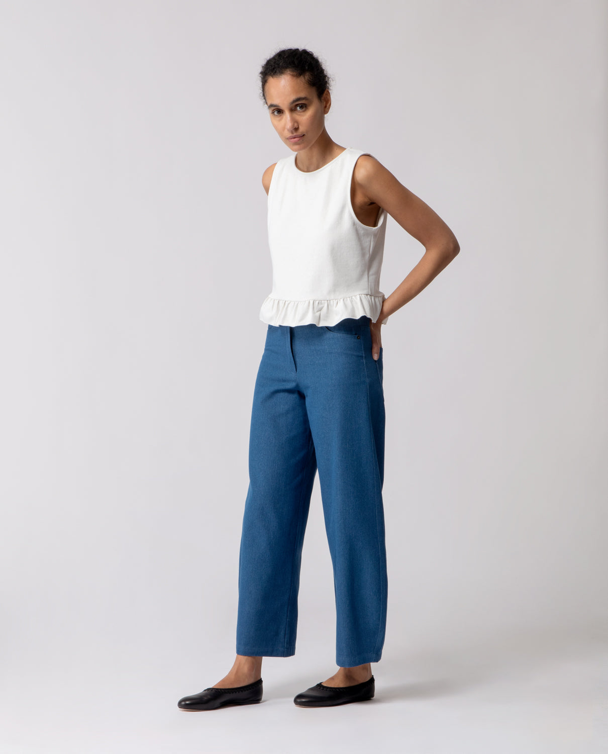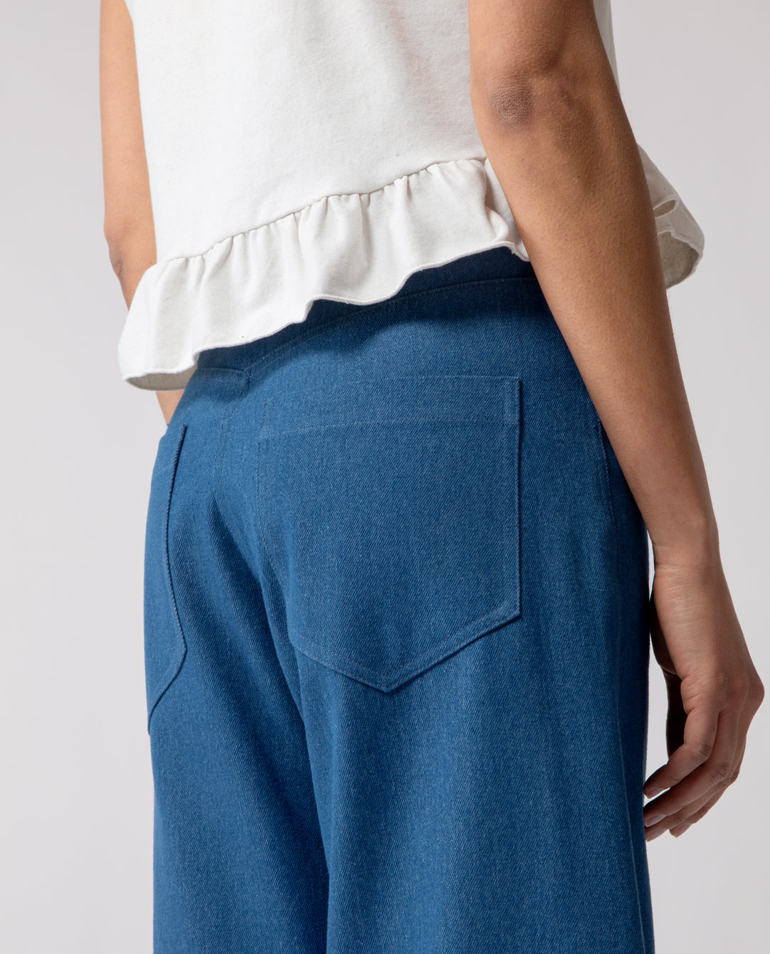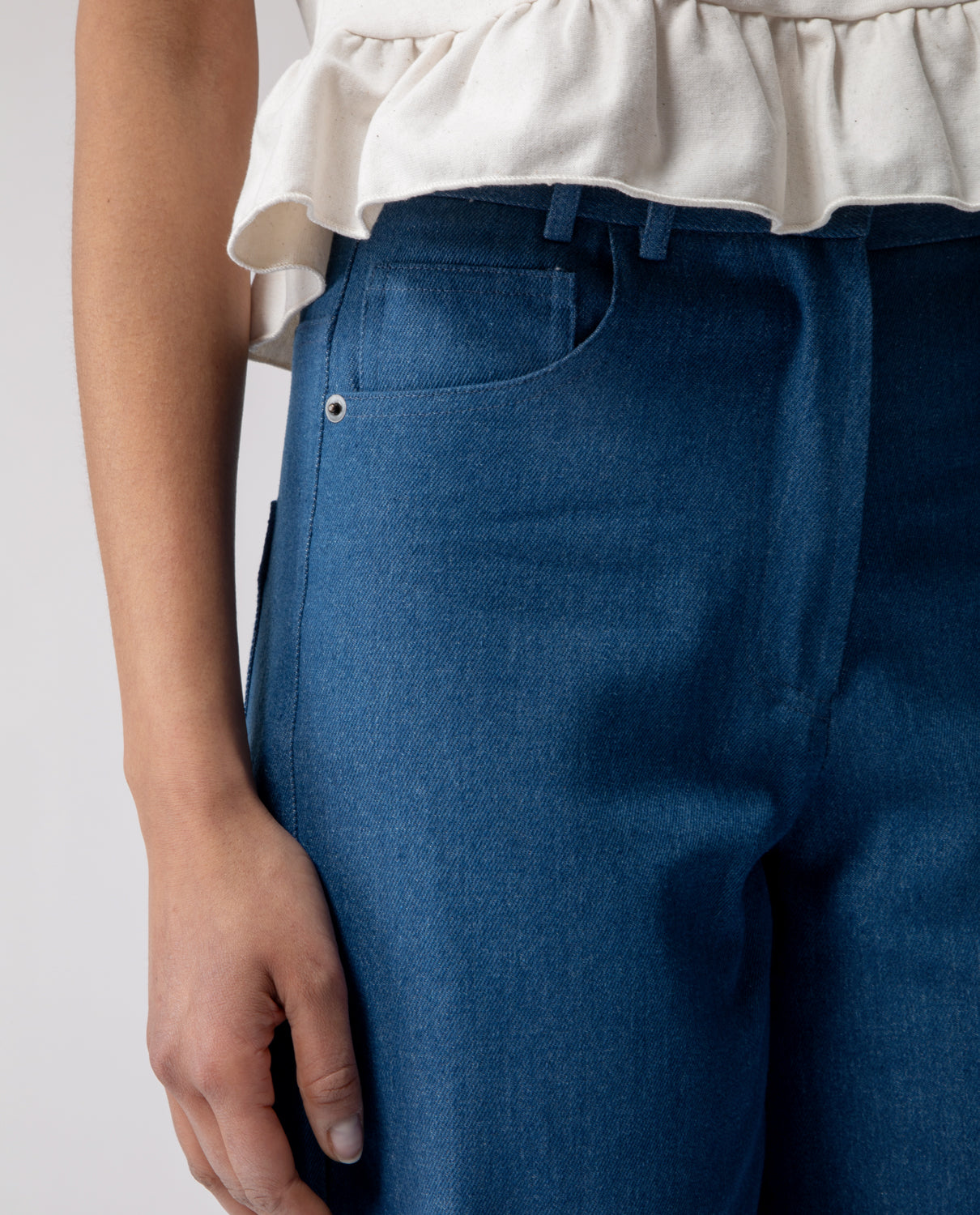 Crafted in cotton denim, these trousers are cut to a relaxed, baggy fit with a slightly rounded hemline. Finished with tonal stitching and a classic five-pocket construction.