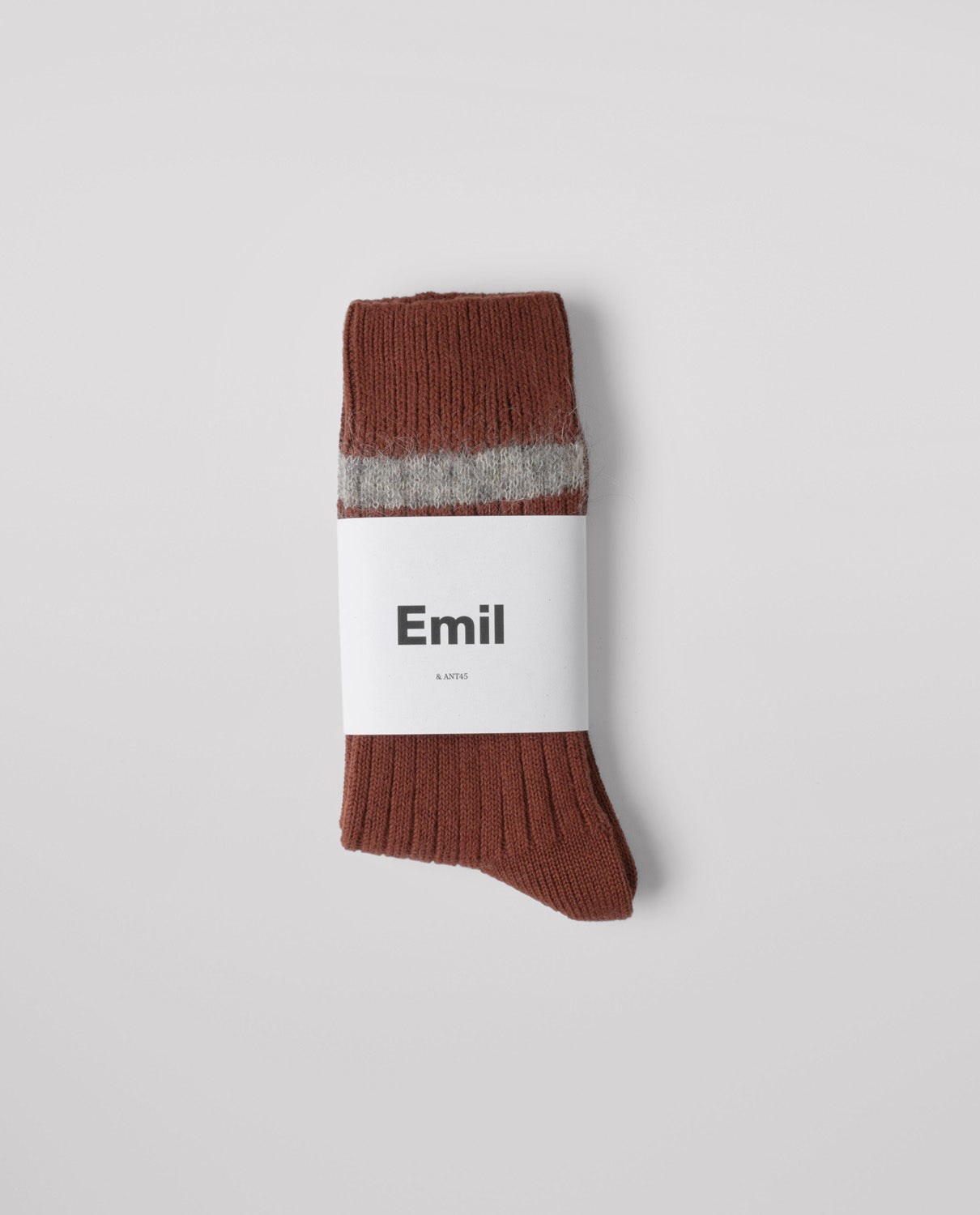 Soft cotton socks detailed with warm merino wool striped inserts, combining comfort with a textured finish.