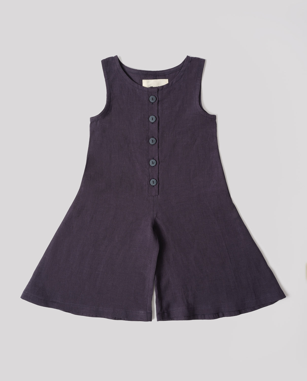 Sleeveless jumpsuit with fun flaired legs and front button line-up.