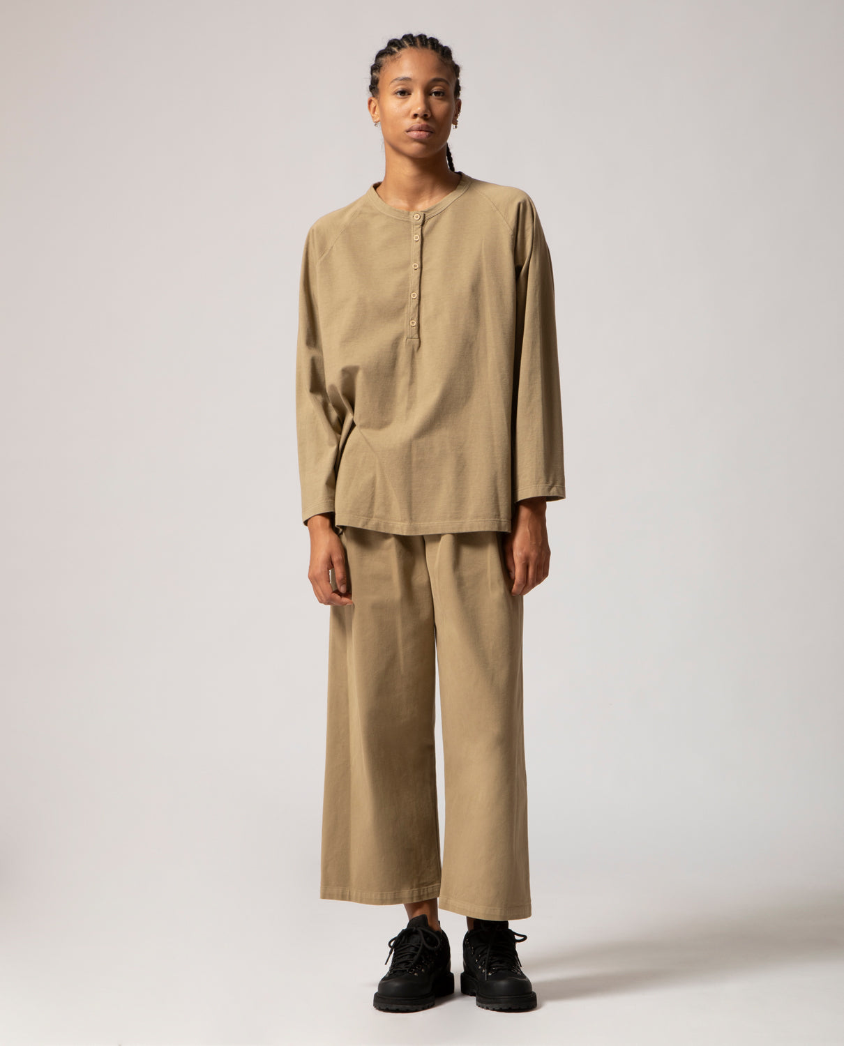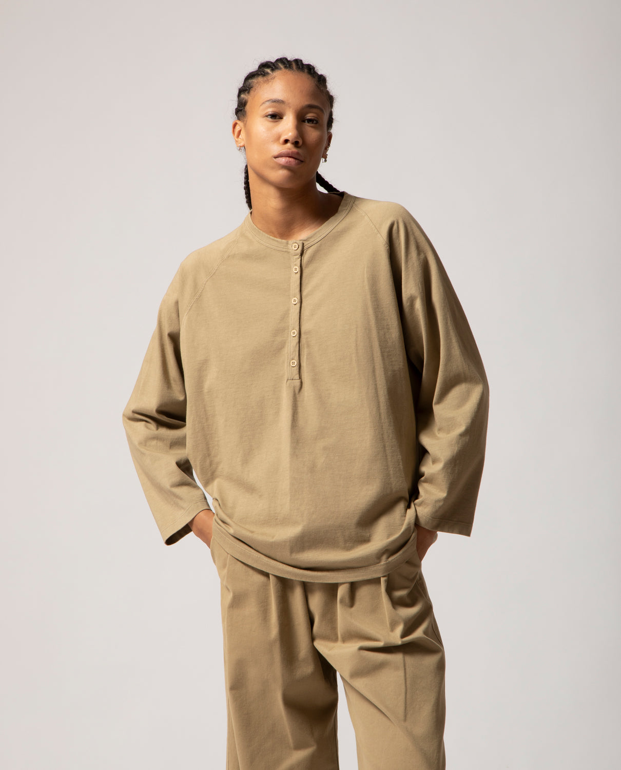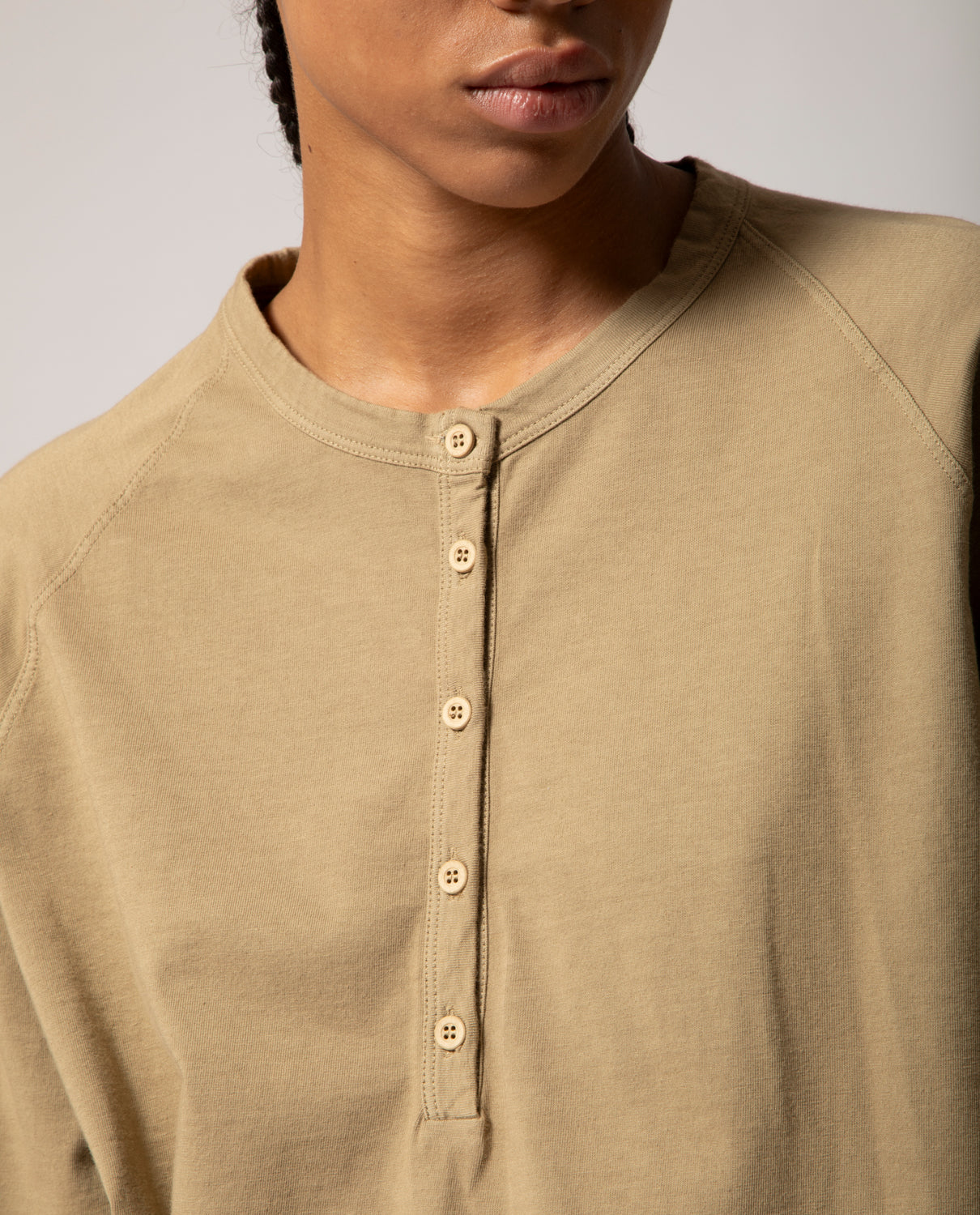 Featuring a relaxed silhouette and raglan sleeves, this Henley-style T-shirt is designed in a one-size fit that comfortably adapts to sizes S to L.