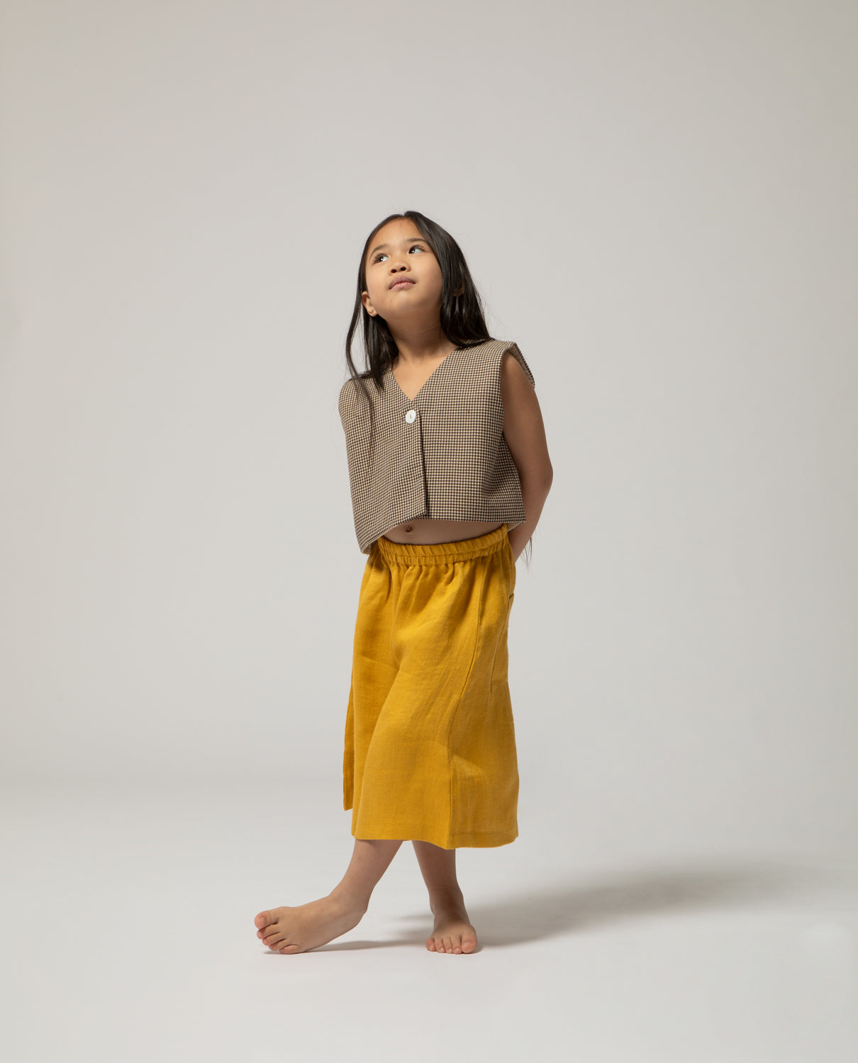 Opt for an easy and safe gentle machine wash using a neutral soap and a low spin at 30°C. Keep in mind that it’s always better to wash it with like colors. Alternatively, handwash and rinse with lukewarm water. Linen pieces can be hung to ventilate between wears, instead of being washed each time.