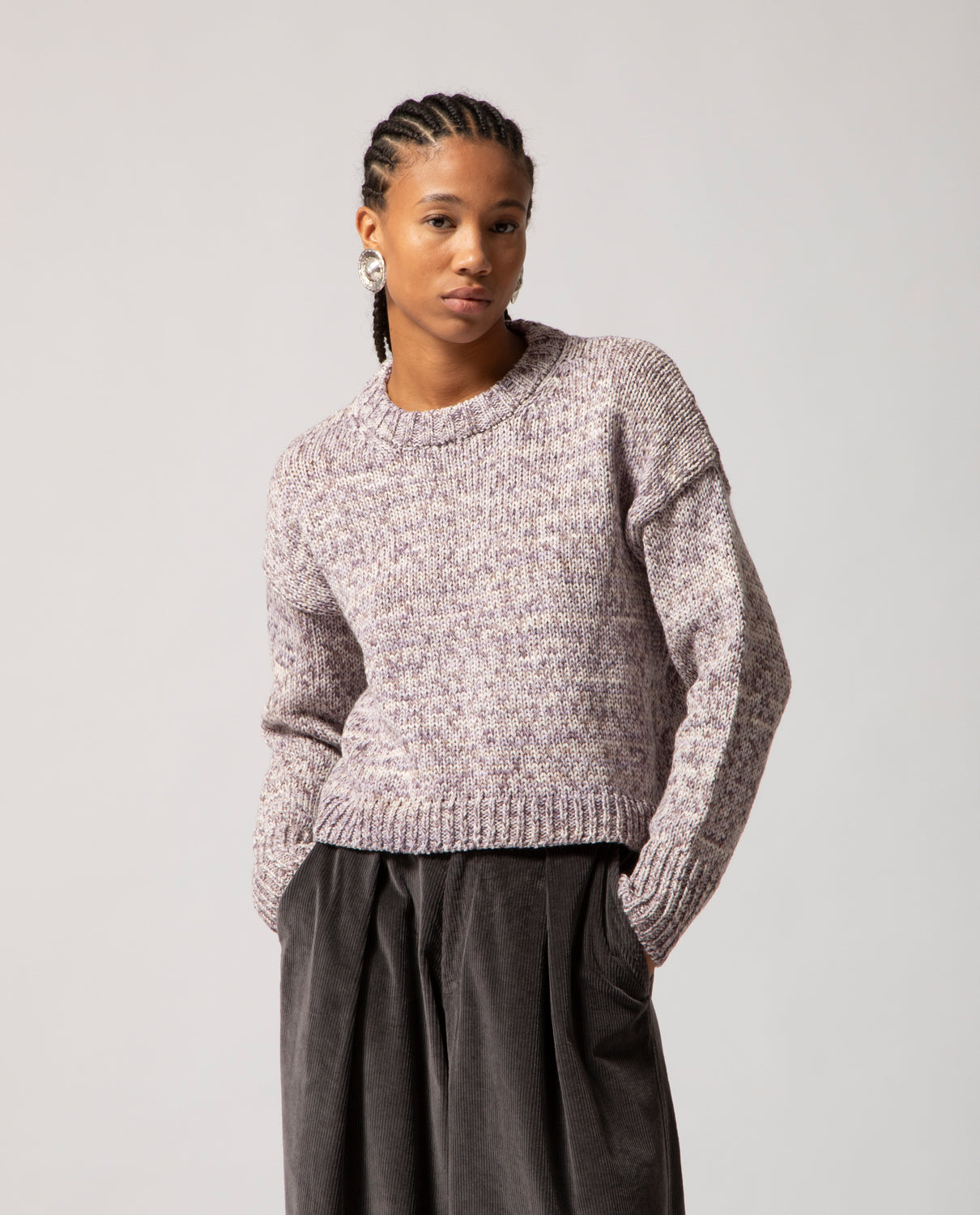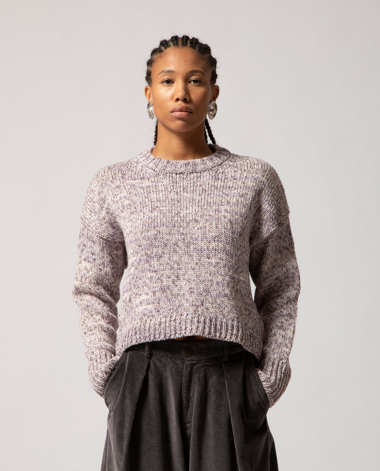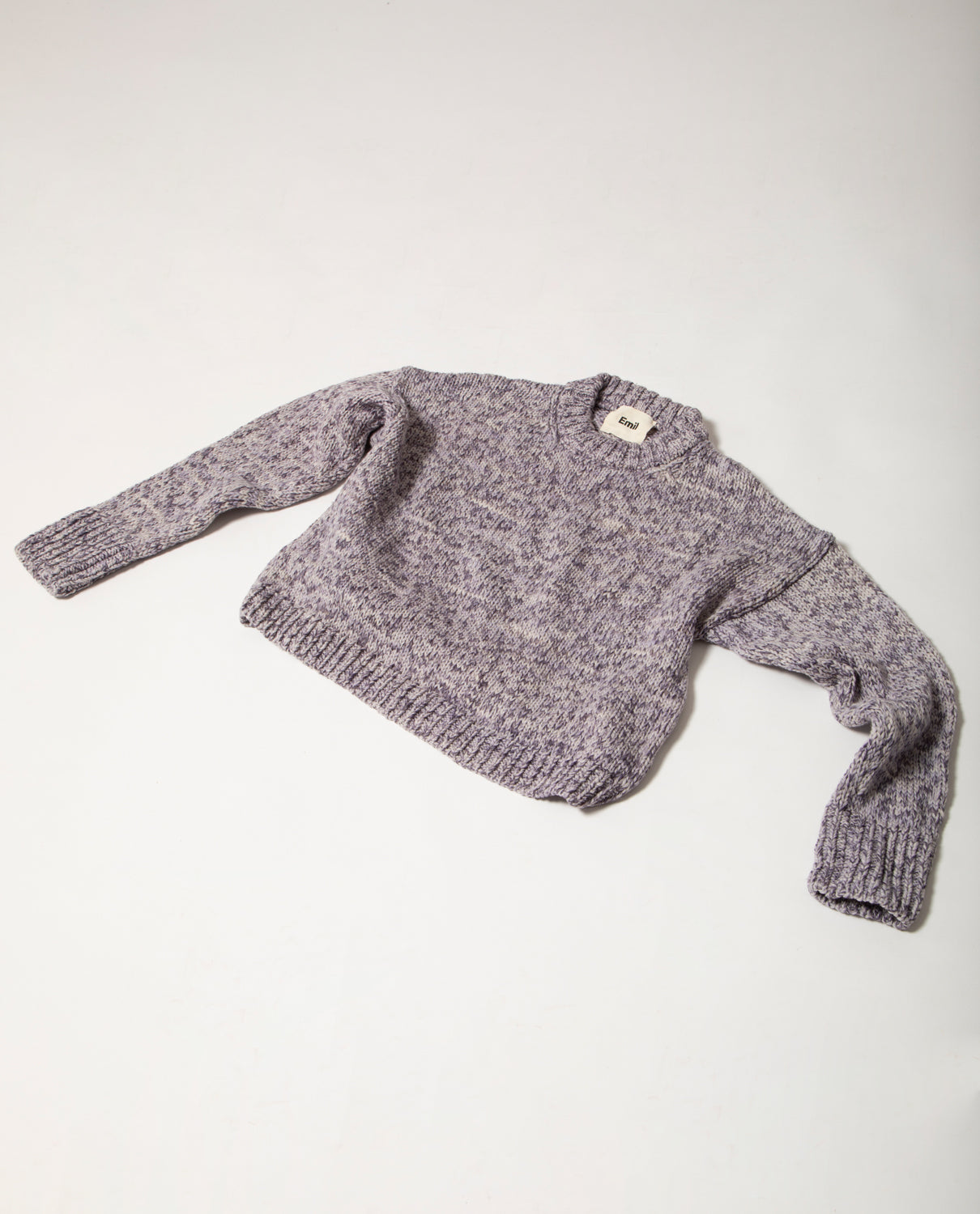 Slim knit with a crew neckline and dropped shoulders, designed for an easy fit and a perfect daily essential.