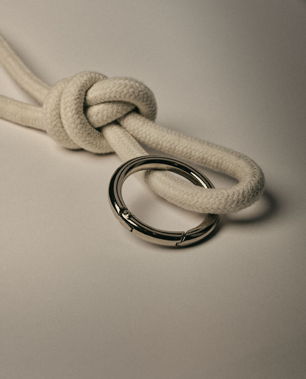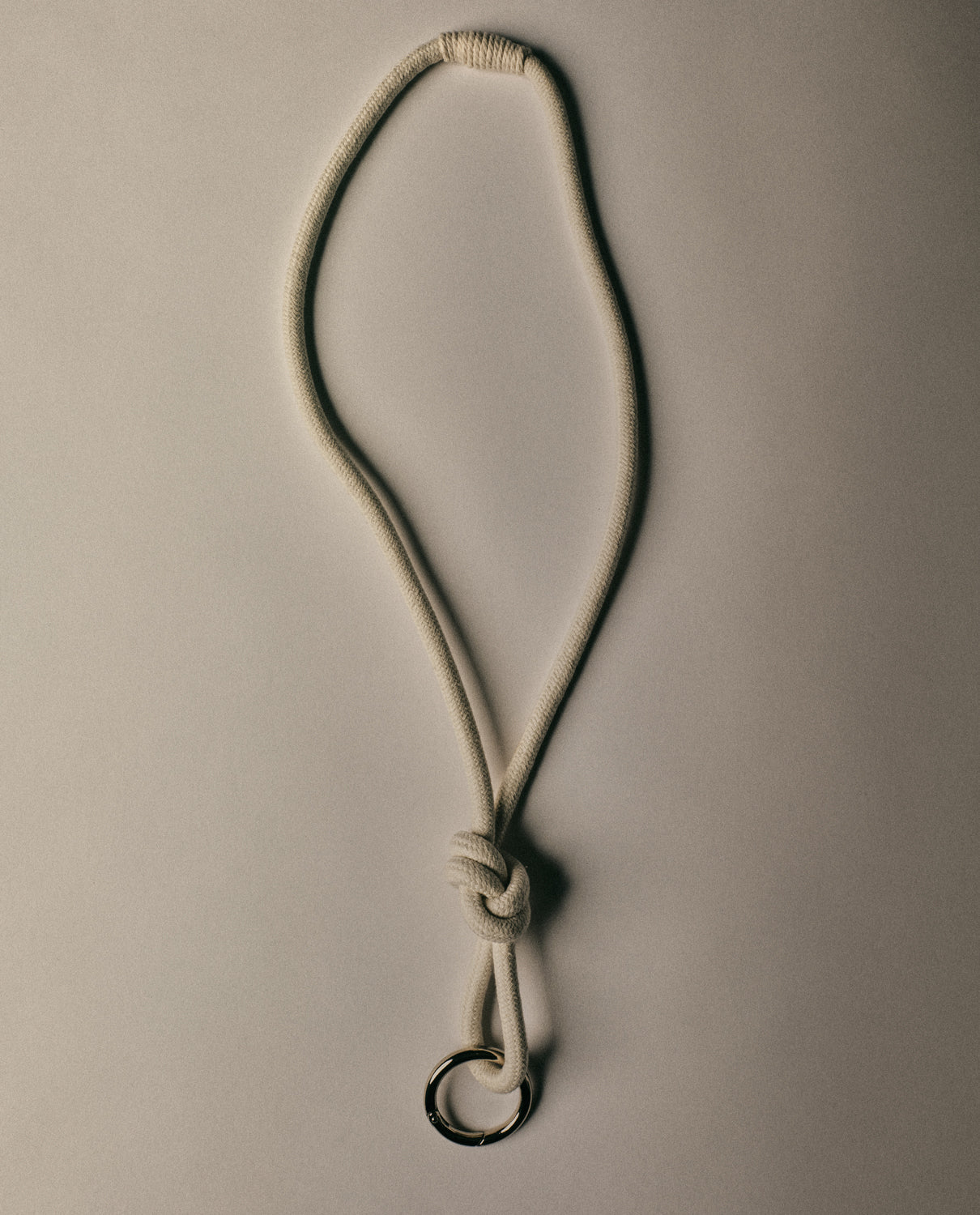 Handcrafted white cotton rope keychain.