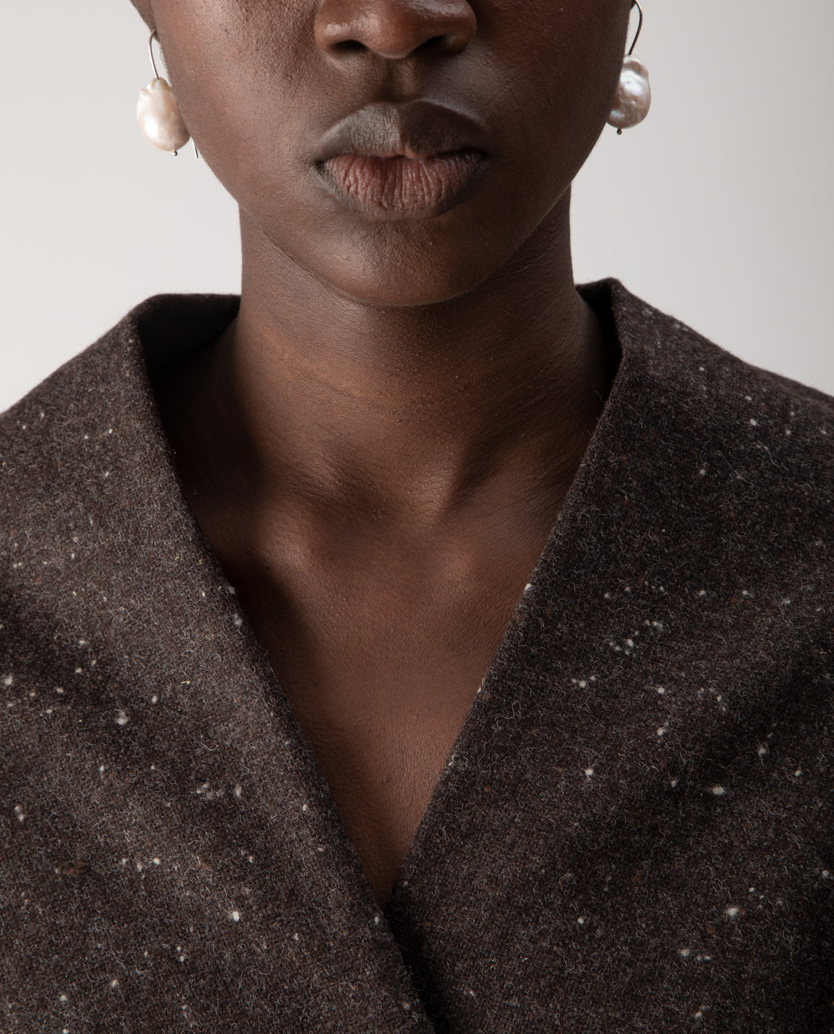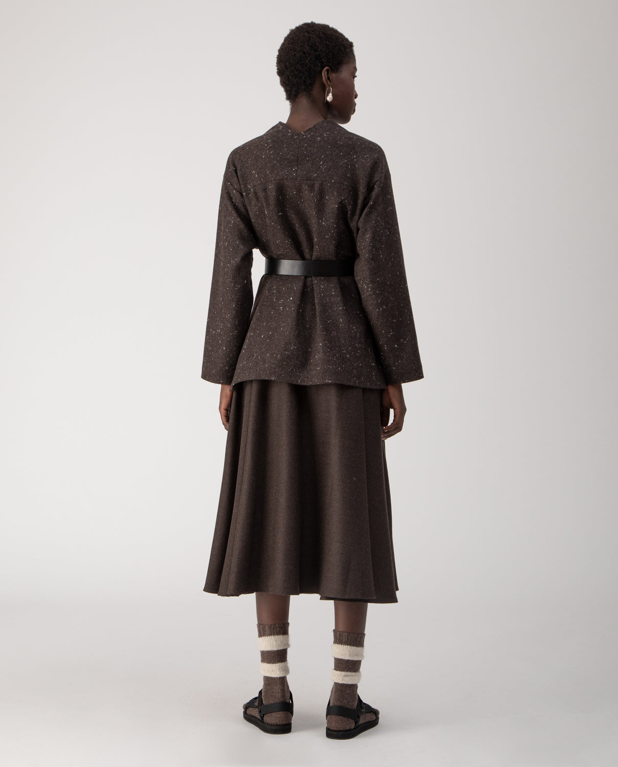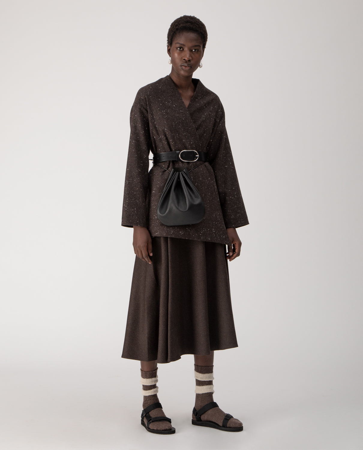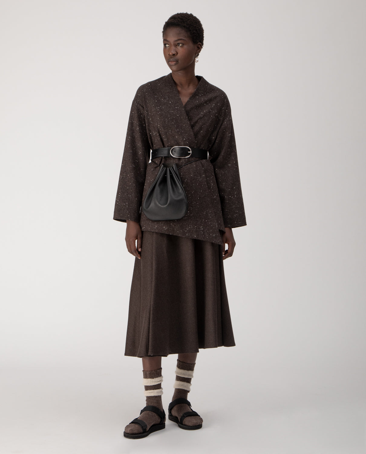 Open blazer with wrap-around fronts and wide sleeves. wear it open or with oval or everyday belt.