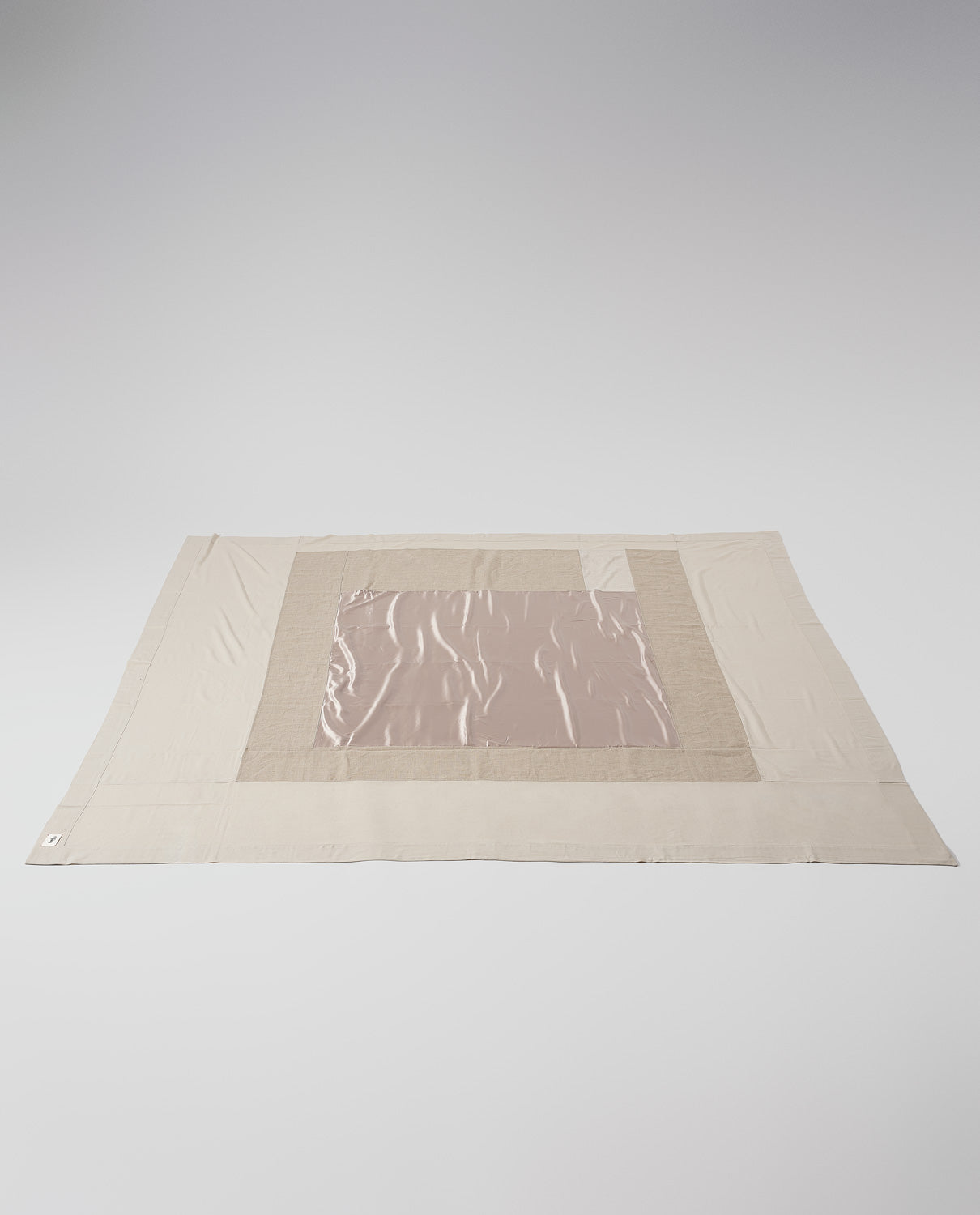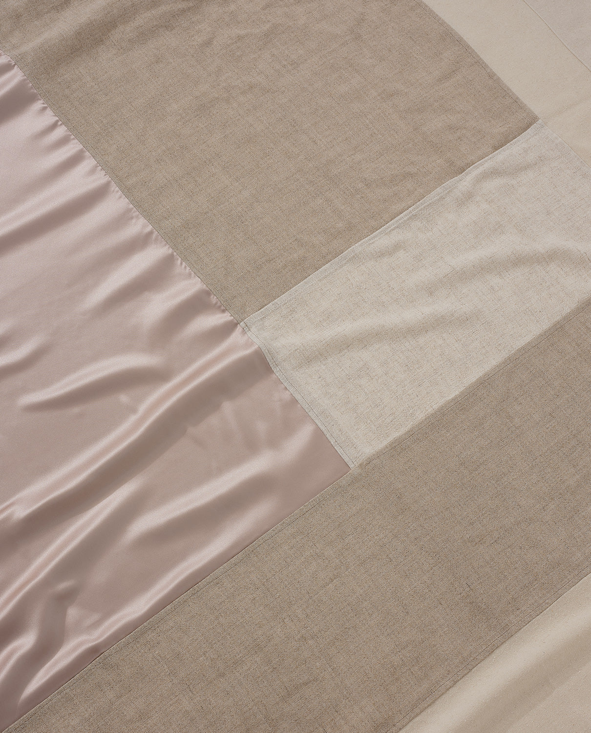 One-of-a-kind queen size bedspread from the sustainable collaborative collection conceived together with Fie Paarup Studio, aimed at celebrating clothing and fabric reuse in conjunction with colours and textures relations. Unique piece.