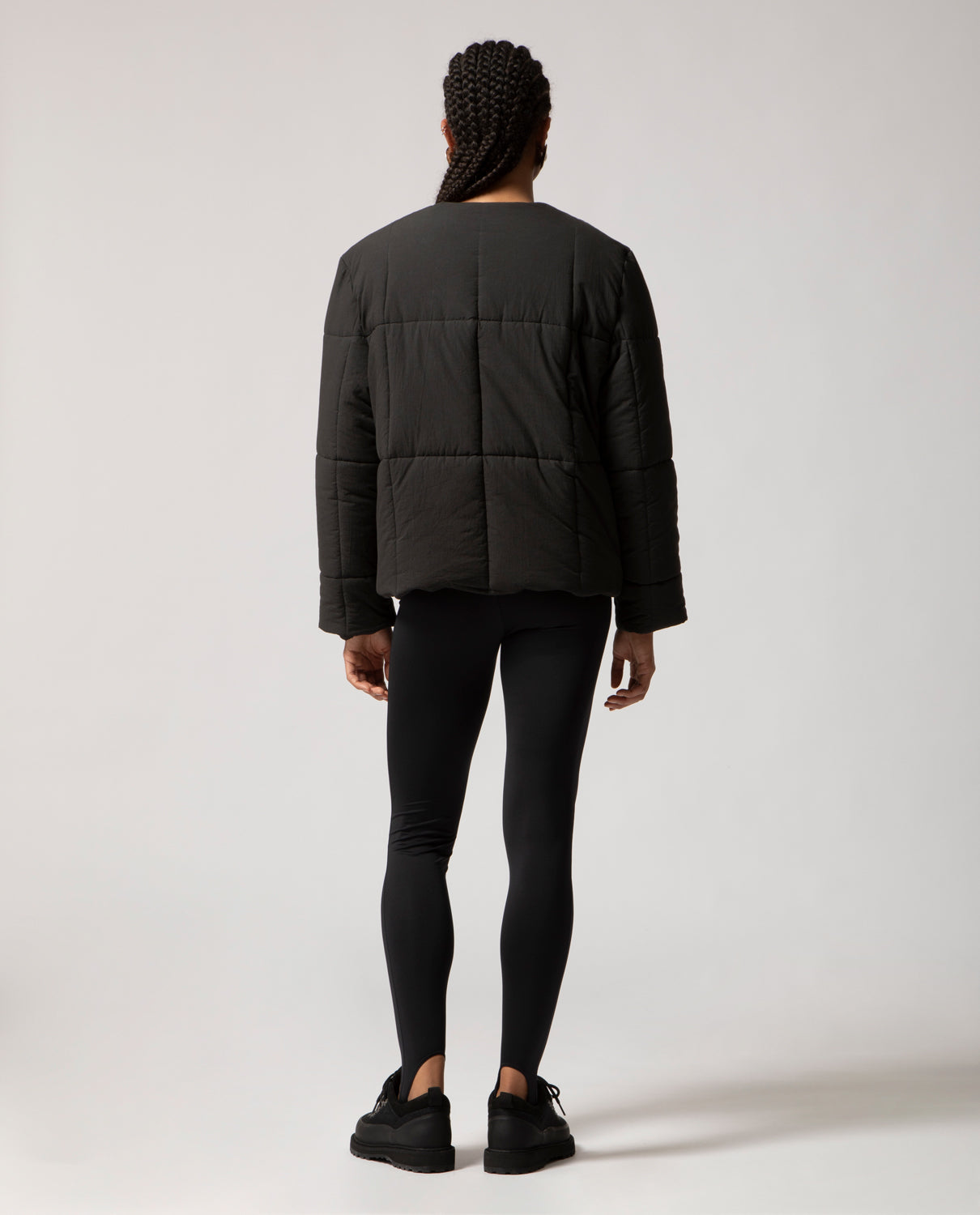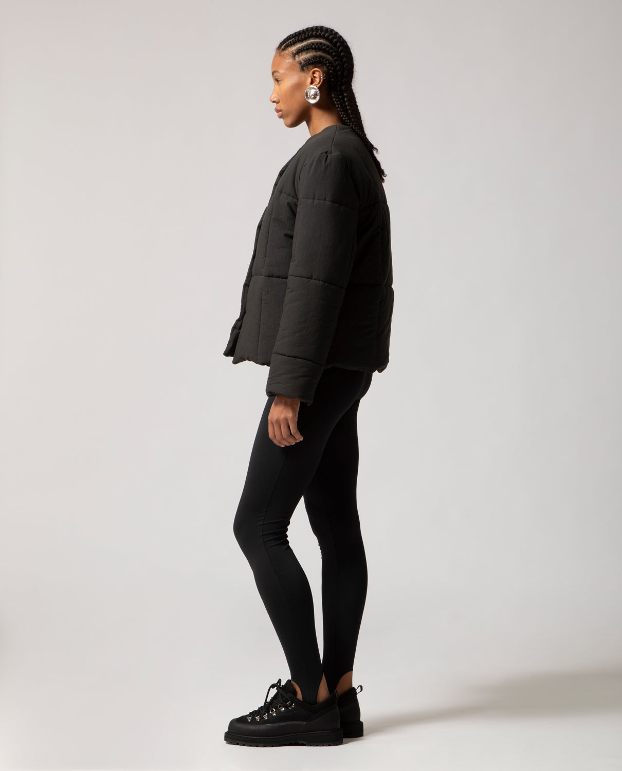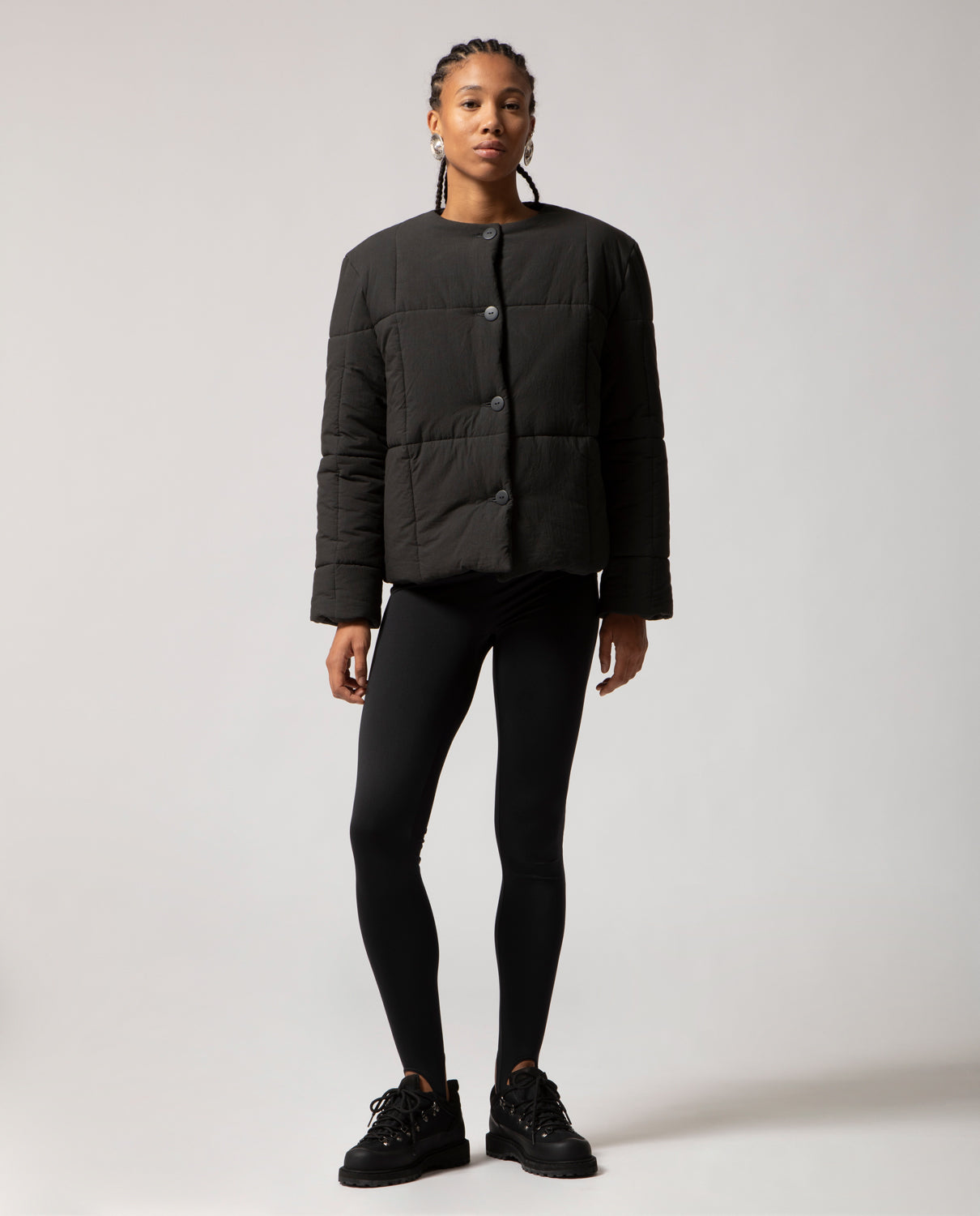 Padded box jacket with a clean, structured silhouette. This piece is detailed with front buttons and filled with soft, warm padding for comfort and ease on the coldest days.