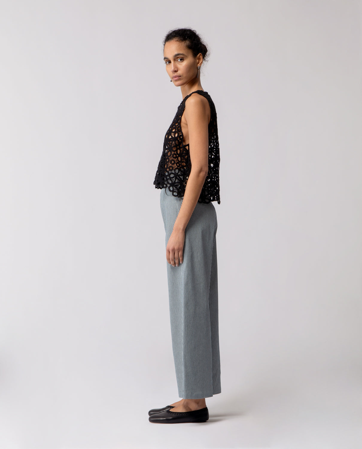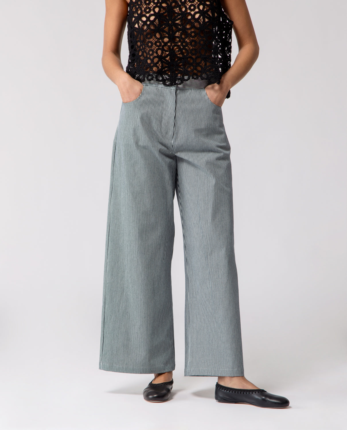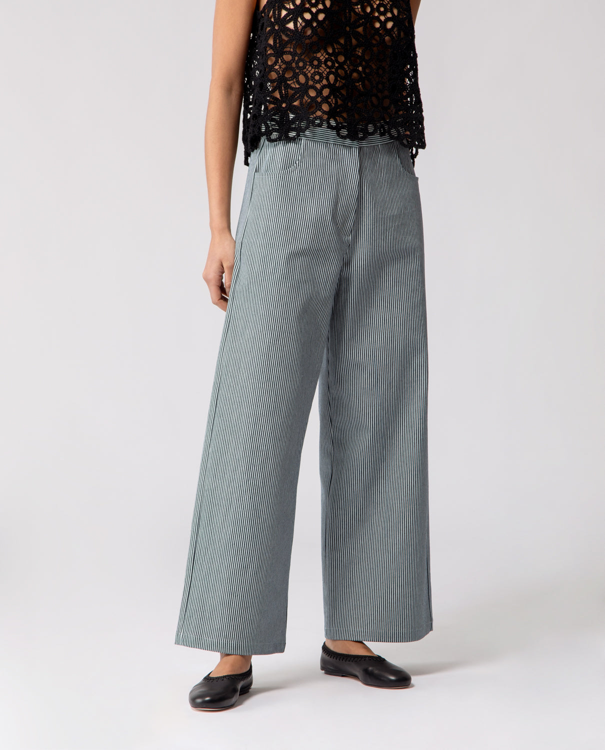 Trousers with a subtle flare beginning at the knee, designed with softly rounded pockets. The cut creates a gentle line that gradually widens towards the hem, following the natural shape of the leg.