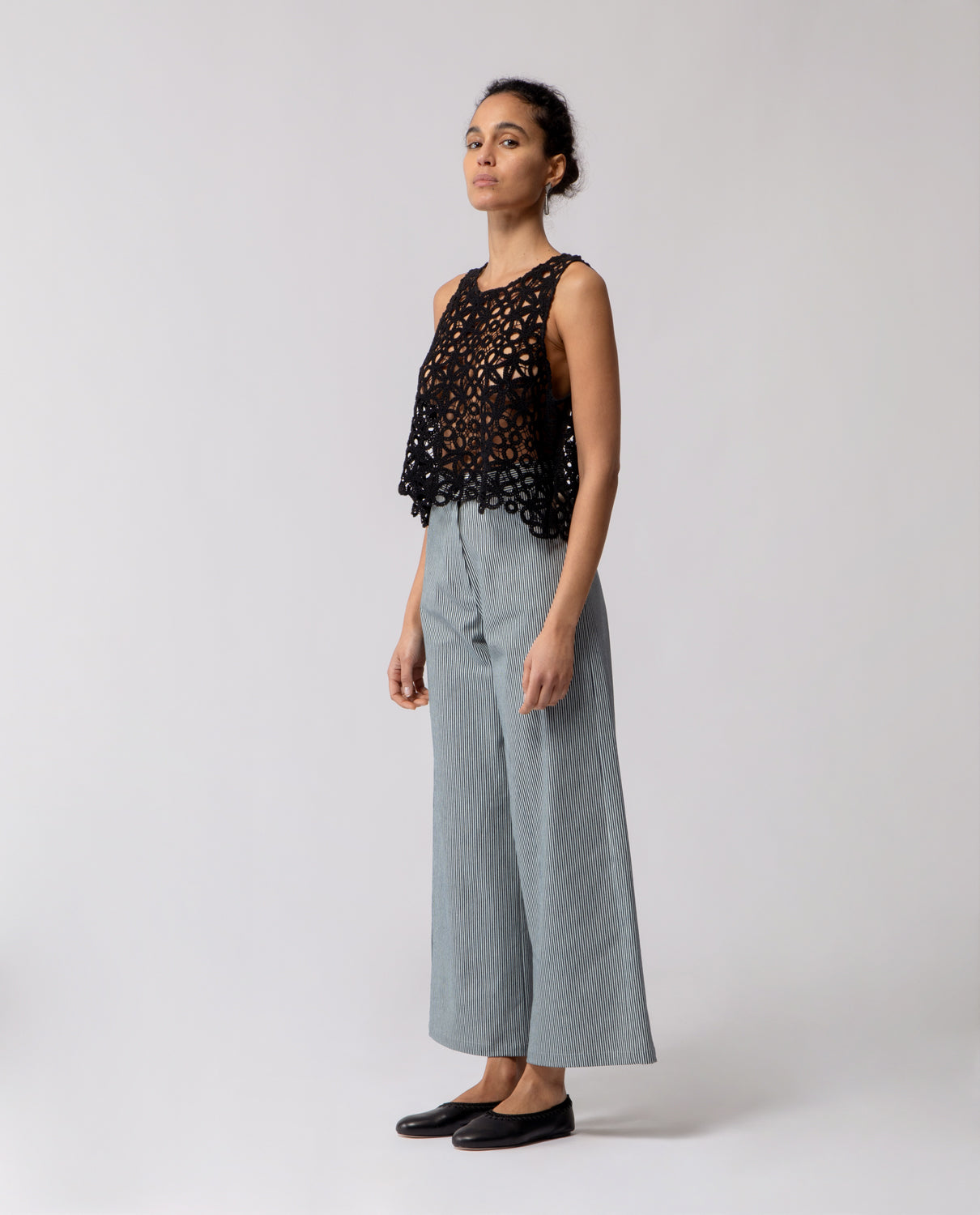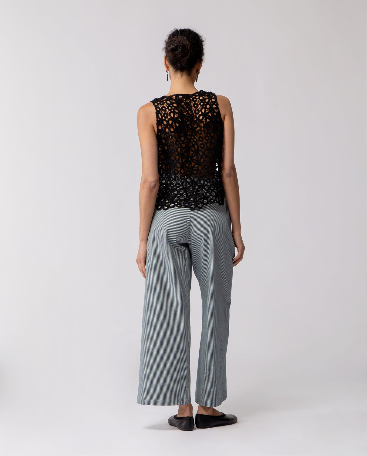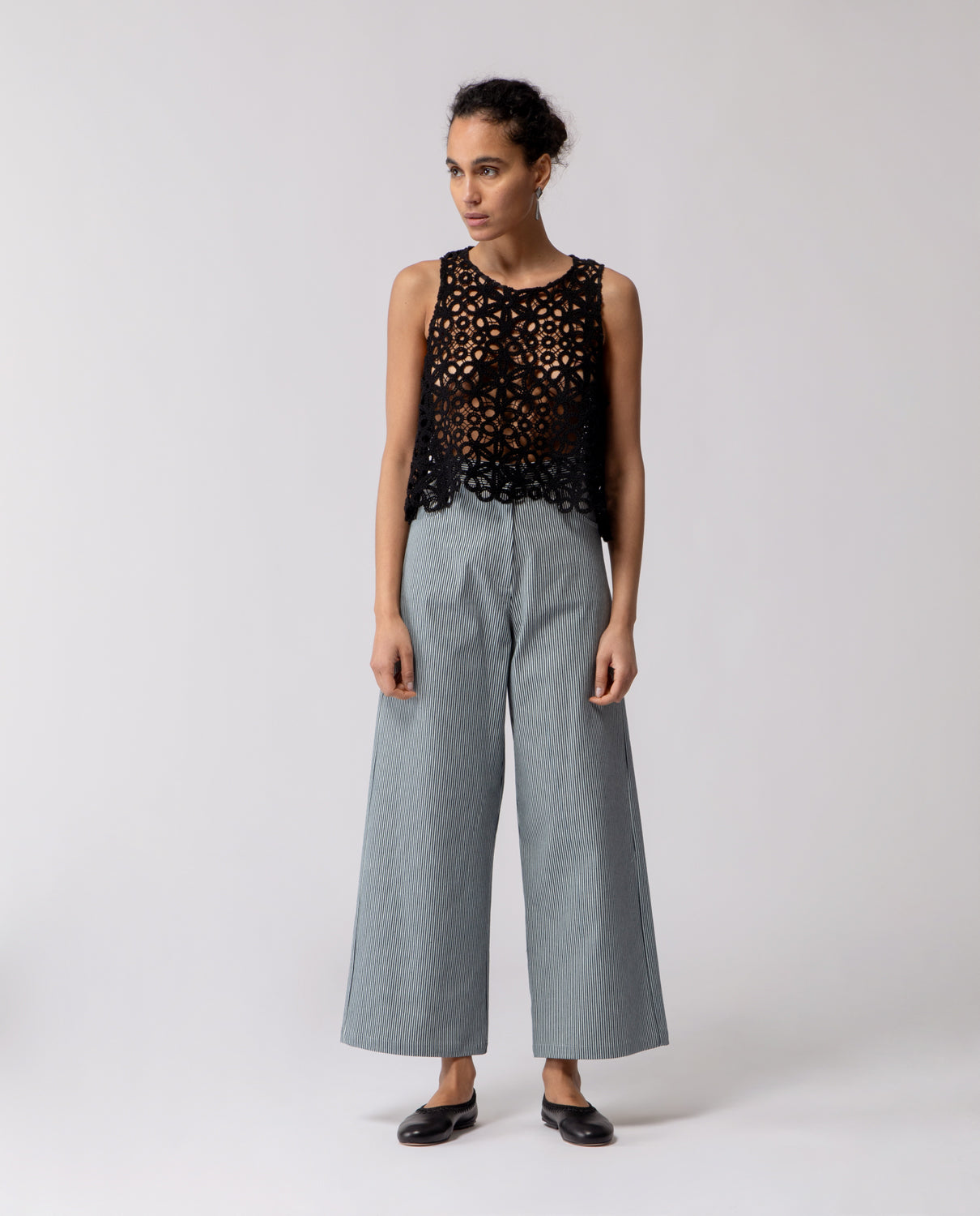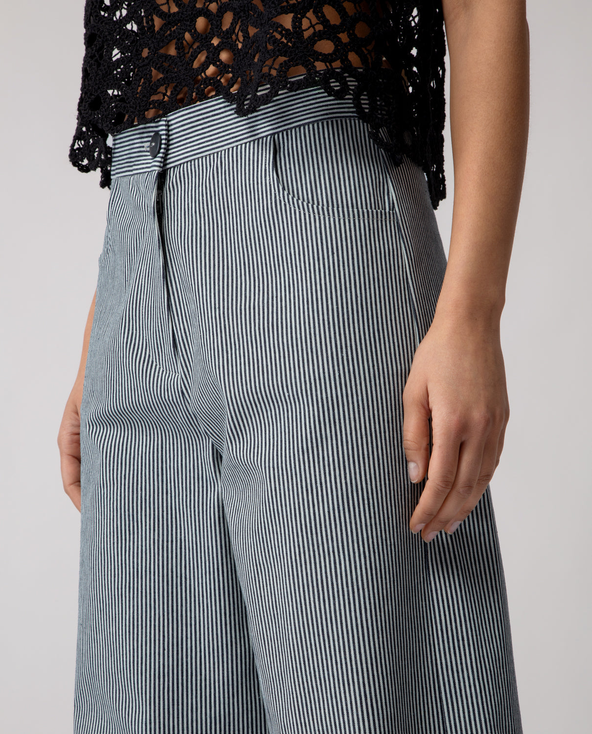 Trousers with a subtle flare beginning at the knee, designed with softly rounded pockets. The cut creates a gentle line that gradually widens towards the hem, following the natural shape of the leg.