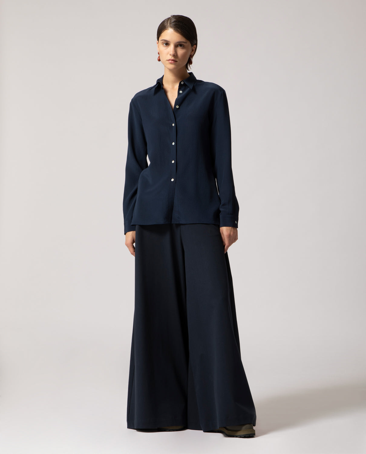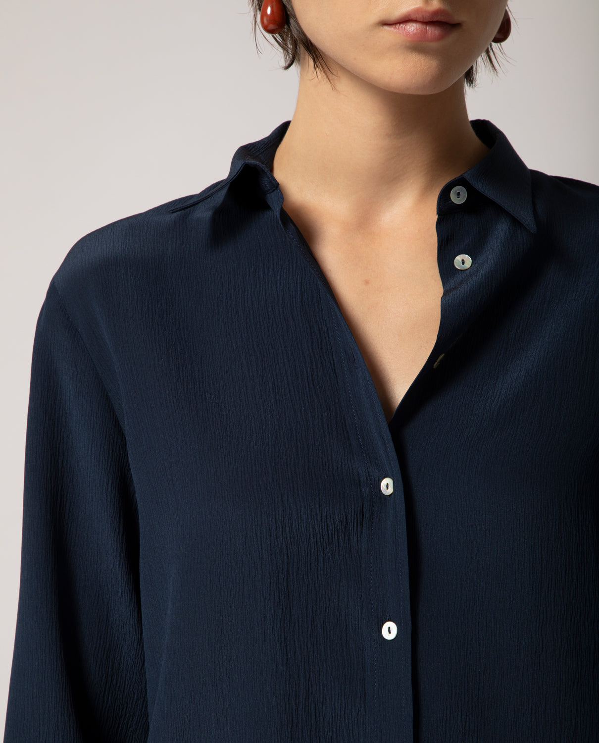 The perfect shirt. An everyday essential cut in crepe de chine, designed for effortless elegance. Detailed with mother-of-pearl buttons along the front placket and cuffs, it balances refinement with simplicity.