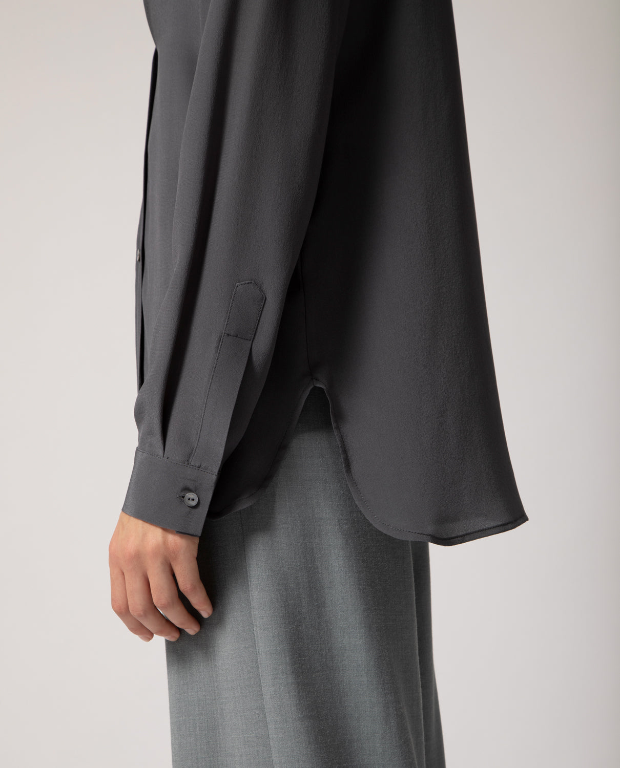 The perfect shirt. An everyday essential cut in silk, designed for effortless elegance. Detailed with mother-of-pearl buttons along the front placket and cuffs, it balances refinement with simplicity.