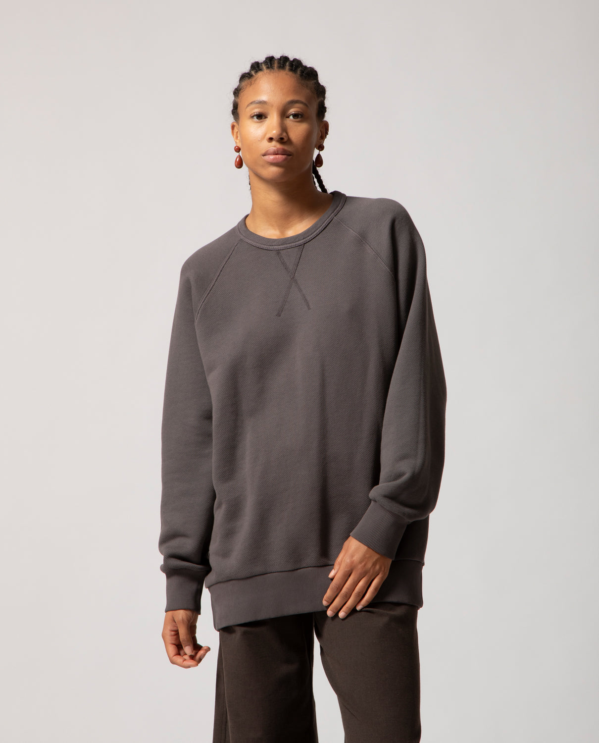 A one-size, genderless sweatshirt cut in a generously wide silhouette that comfortably fits sizes S to L. Crafted from heavyweight 100% cotton for structure and comfort, and