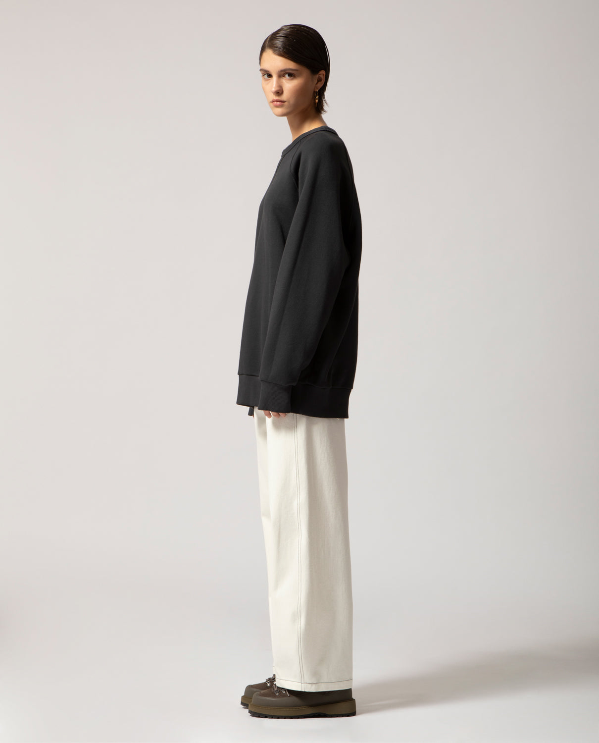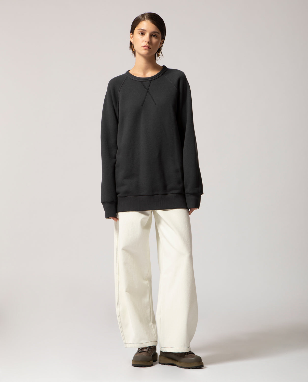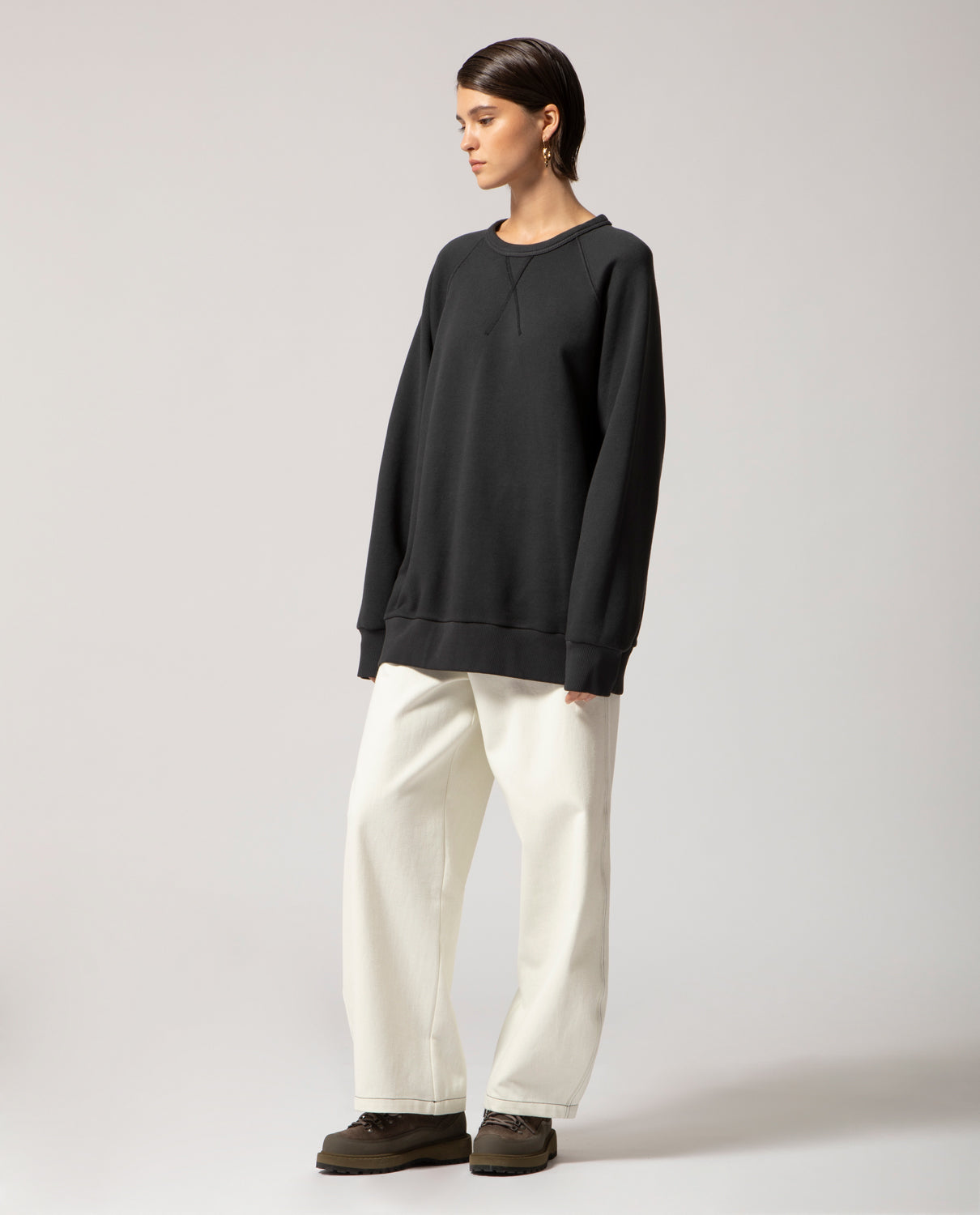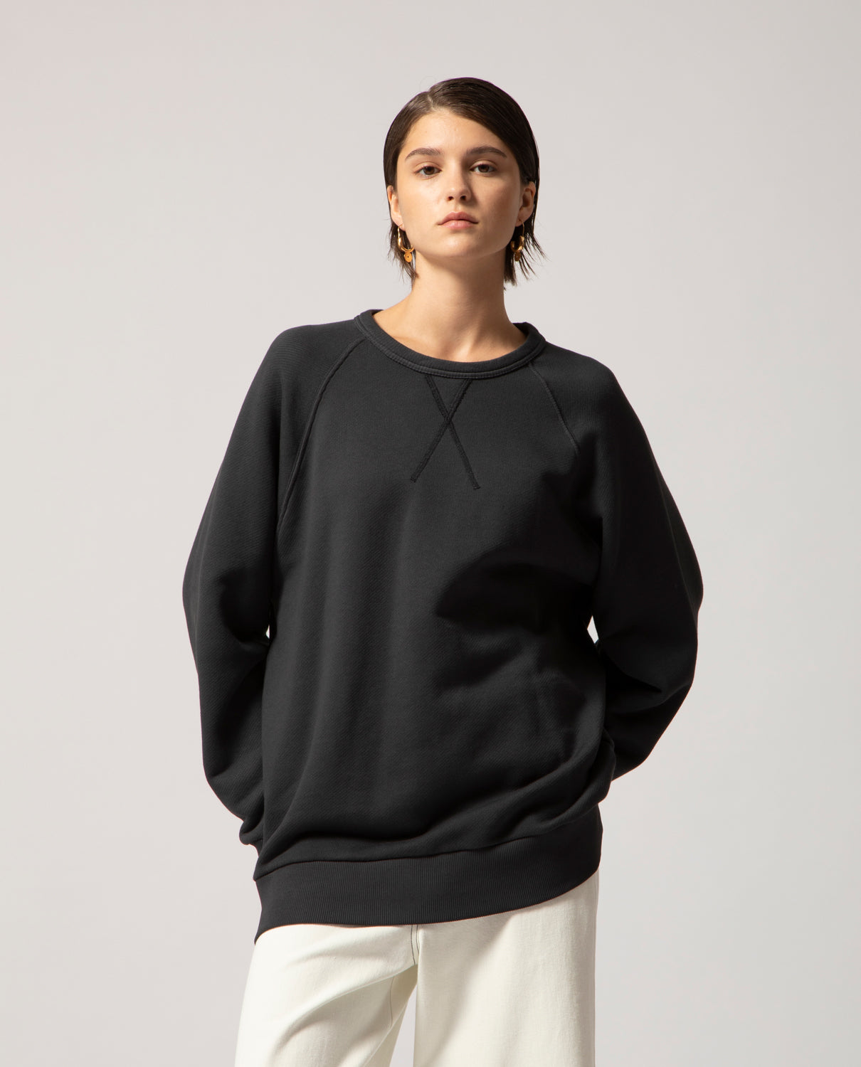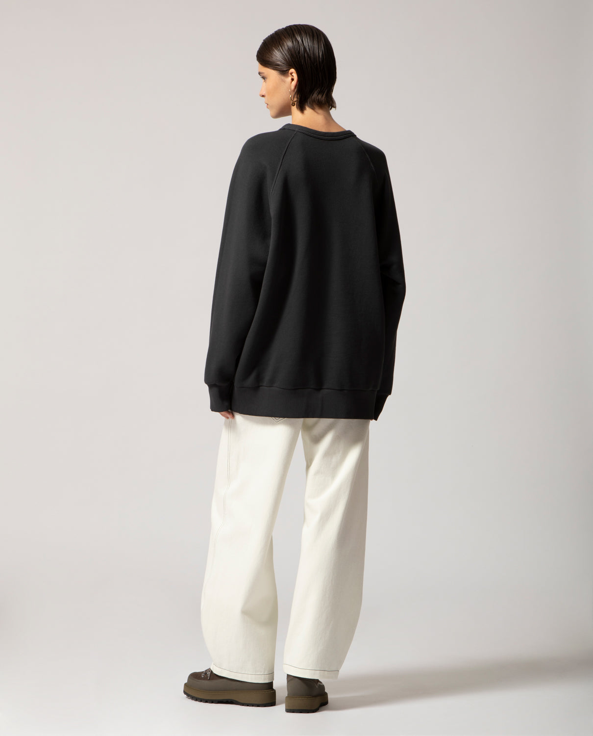 A one-size, genderless sweatshirt cut in a generously wide silhouette that comfortably fits sizes S to L. Crafted from heavyweight 100% cotton for structure and comfort, and