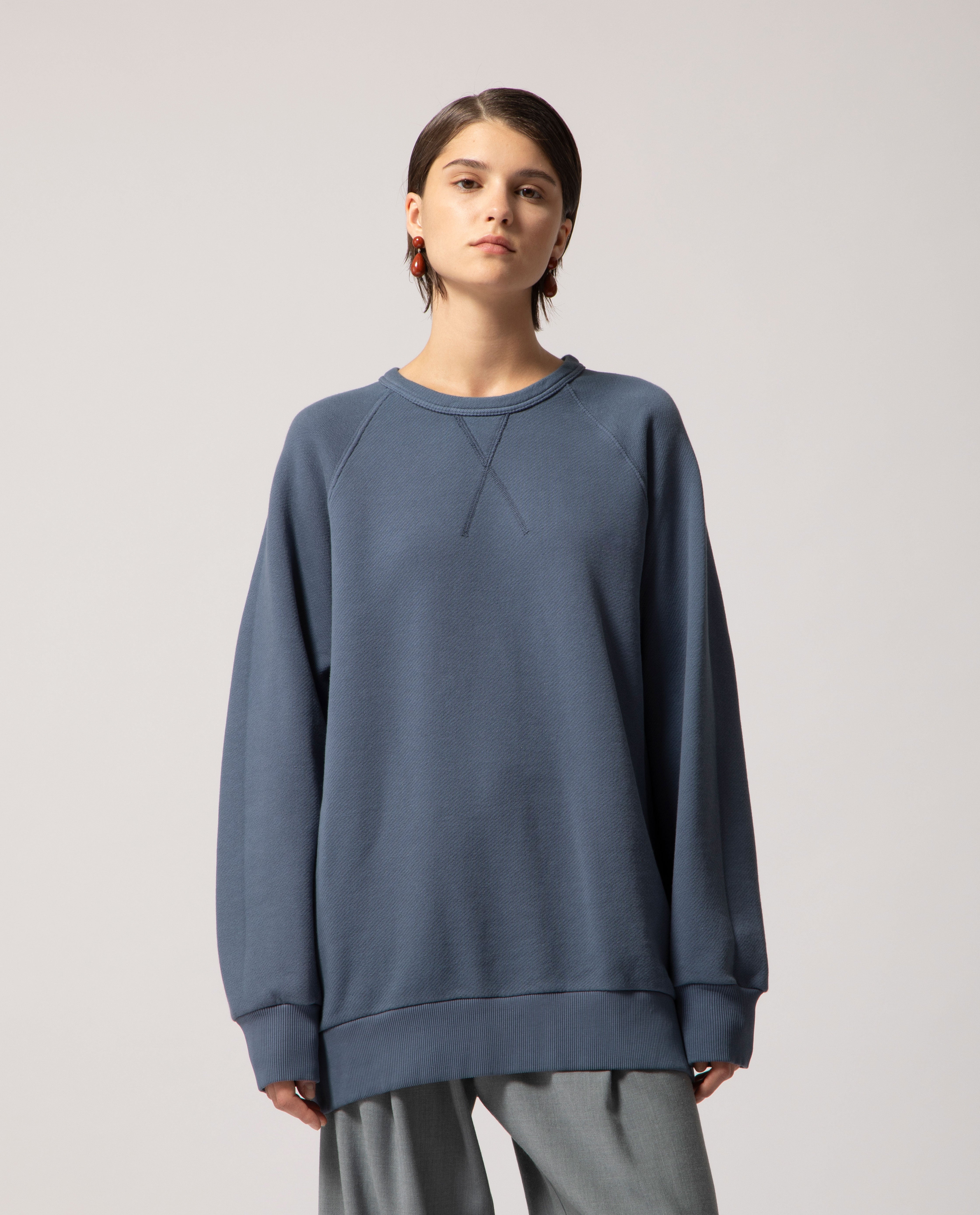 A one-size, genderless sweatshirt cut in a generously wide silhouette that comfortably fits sizes S to L. Crafted from heavyweight 100% cotton for structure and comfort, and