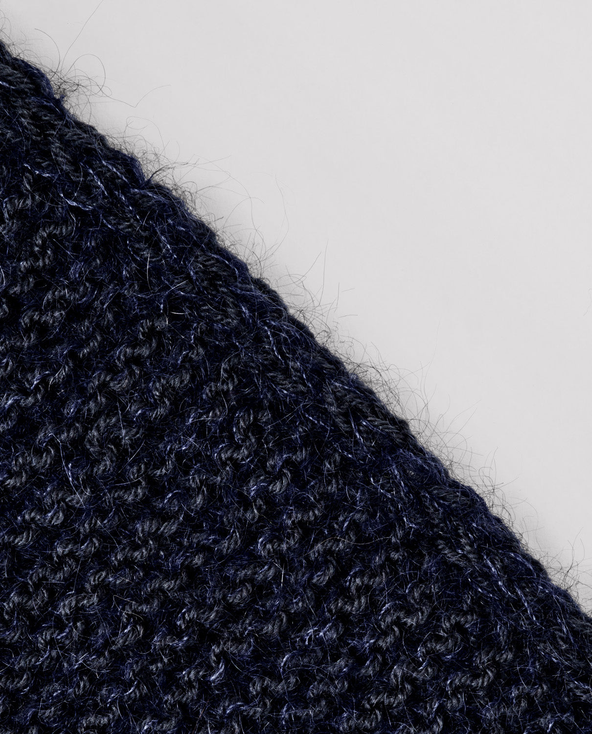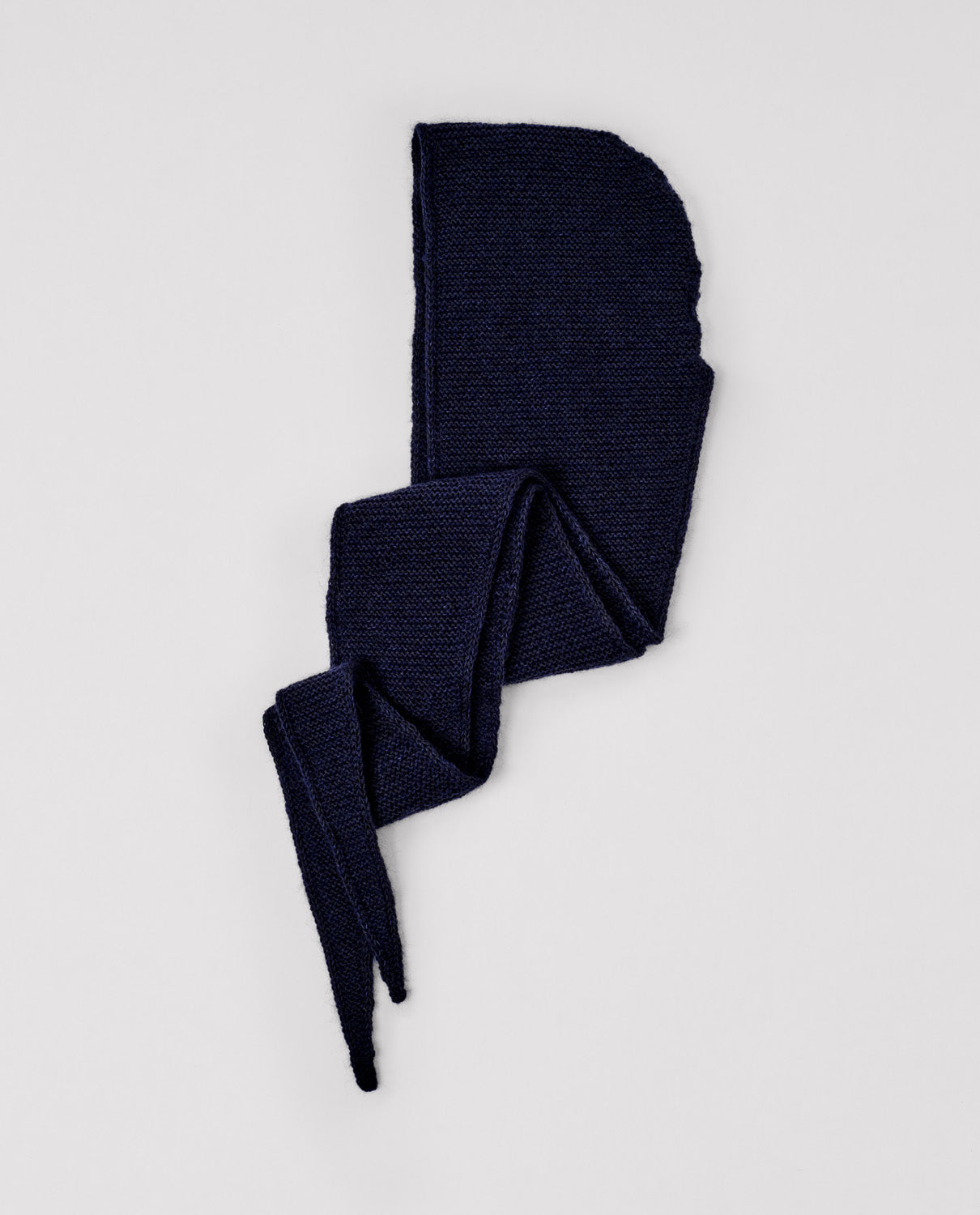 Handcrafted from soft Merino wool, this warm scarf features an integrated hood, combining comfort with versatile wear.