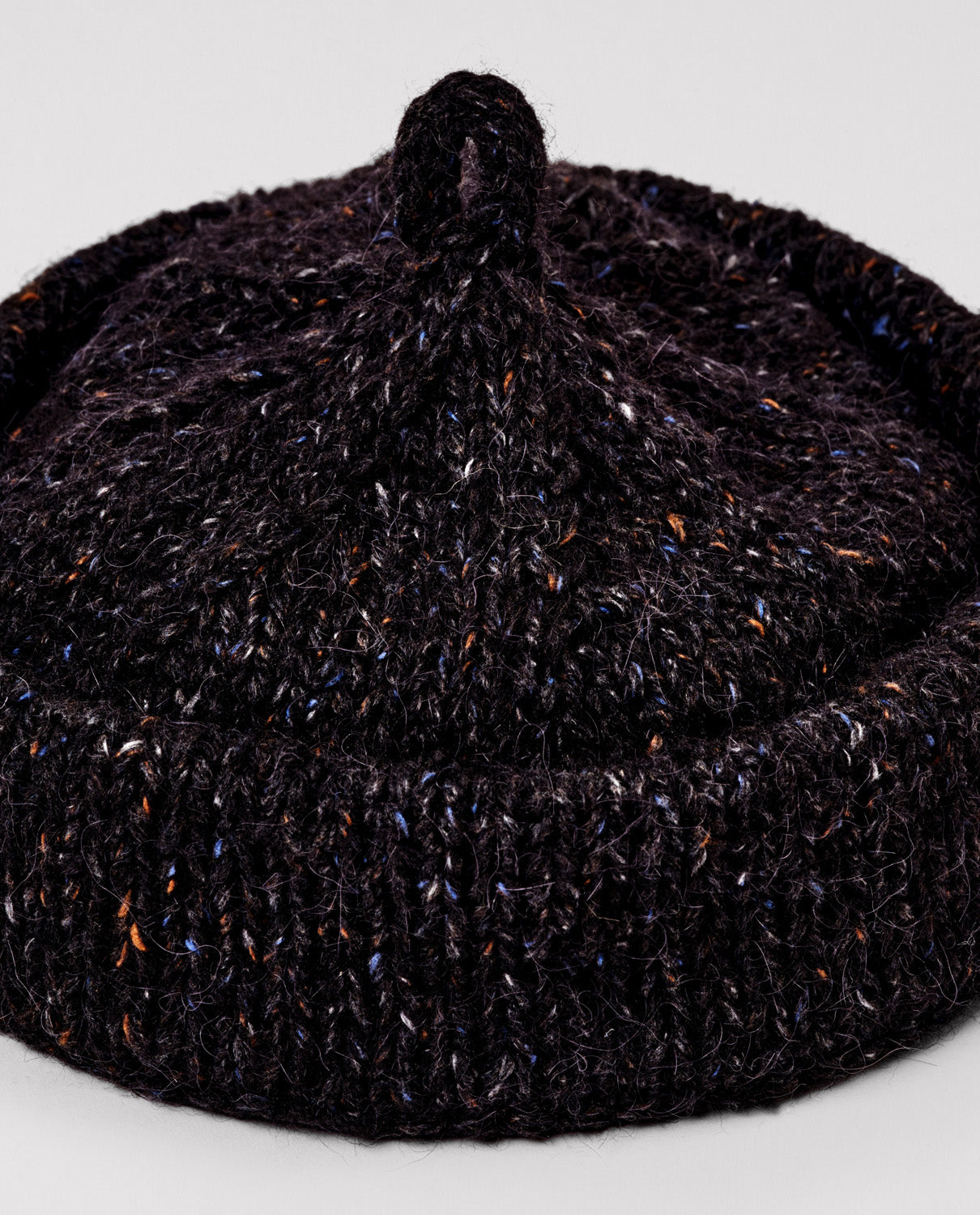 Old-style beanie with a wide fold-over brim and eyelet detail, inspired by traditional fisherman hats. Made in a chunky blend of wool and alpaca yarn, it is both warm and textured.