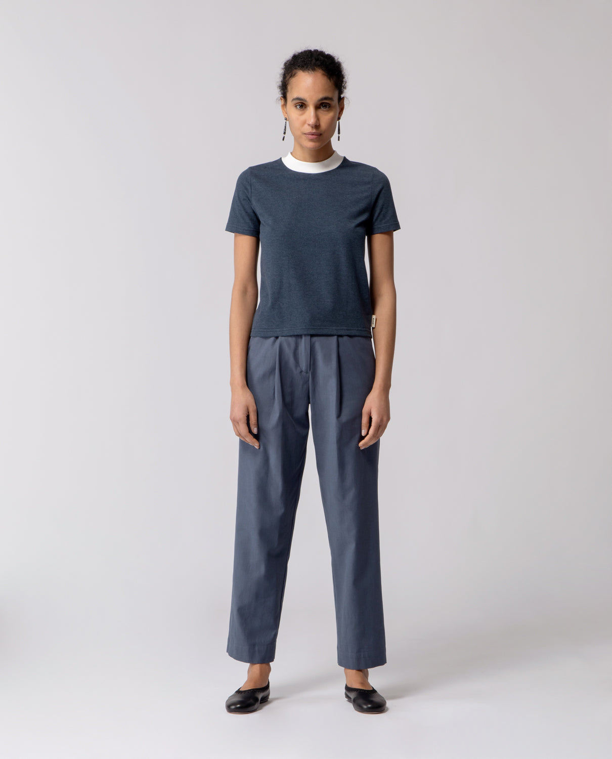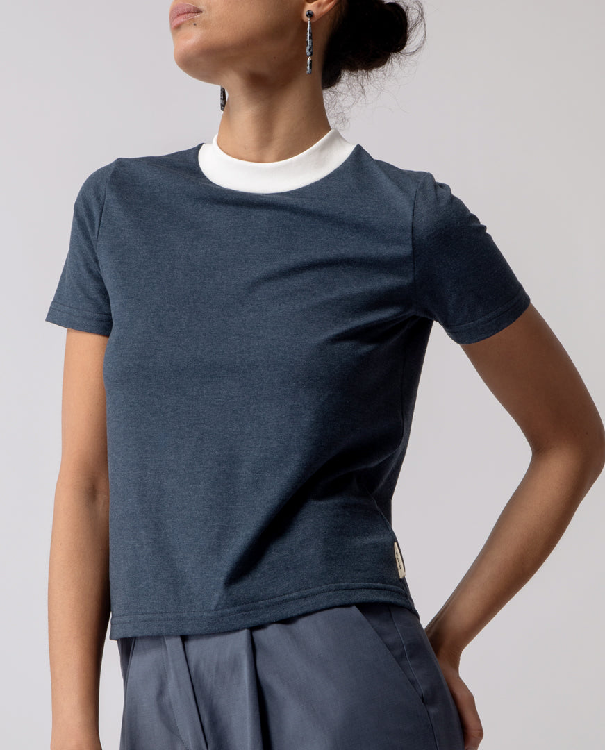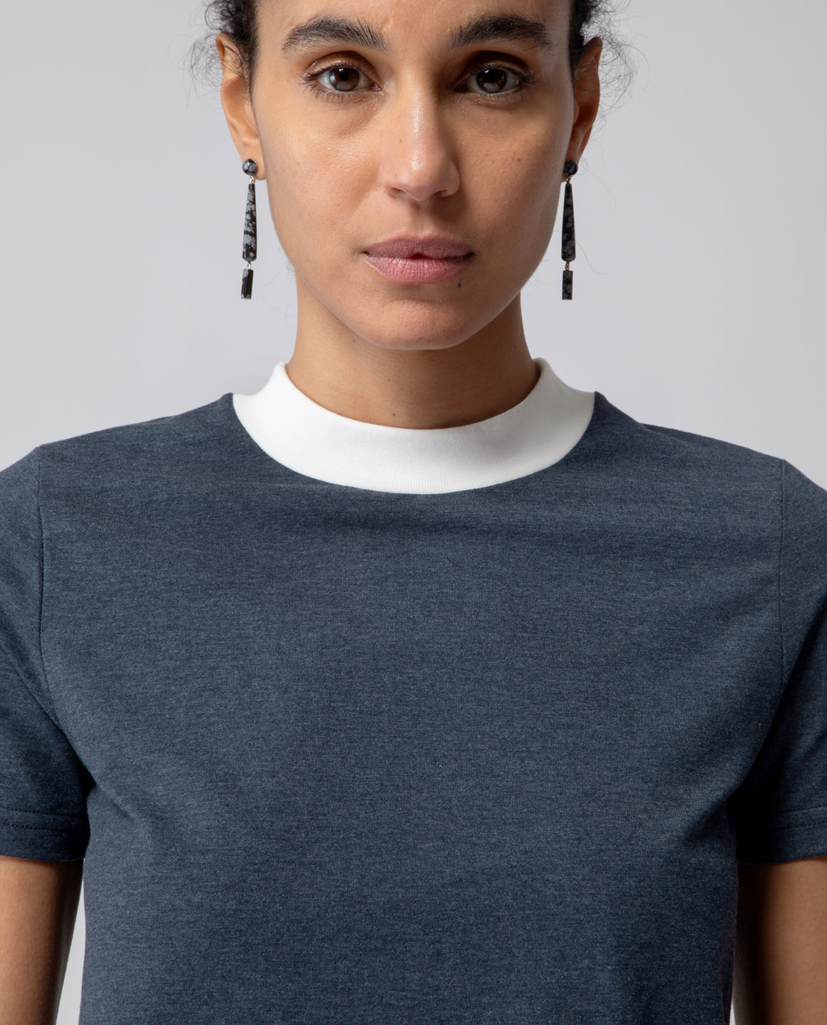 Boxy shirt in soft organic cotton jersey, detailed with a contrasting neckline.