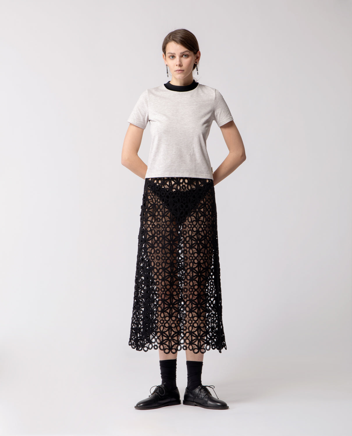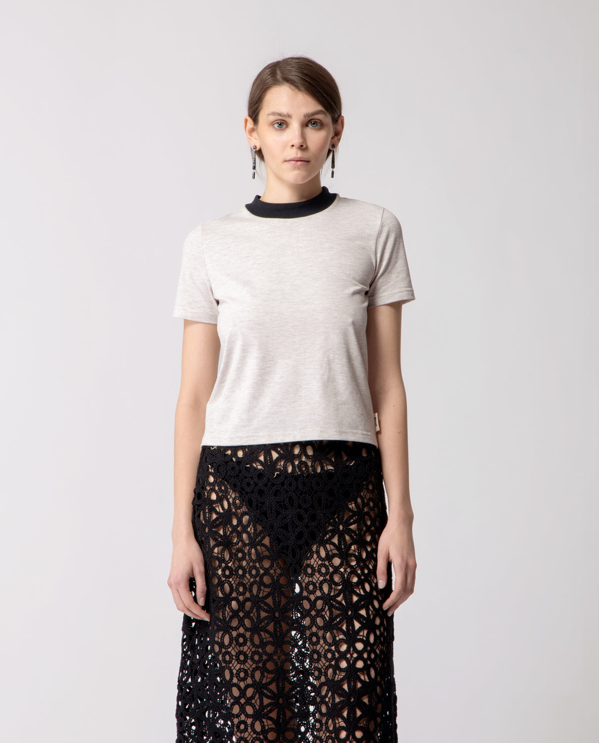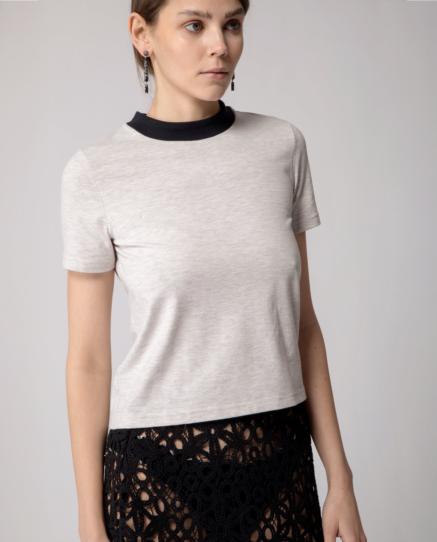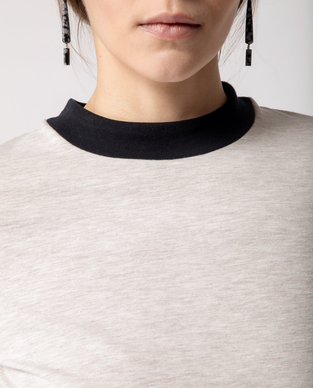 Boxy shirt in soft organic cotton jersey, detailed with a contrasting neckline.