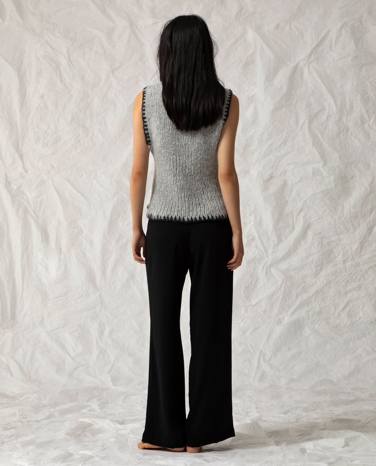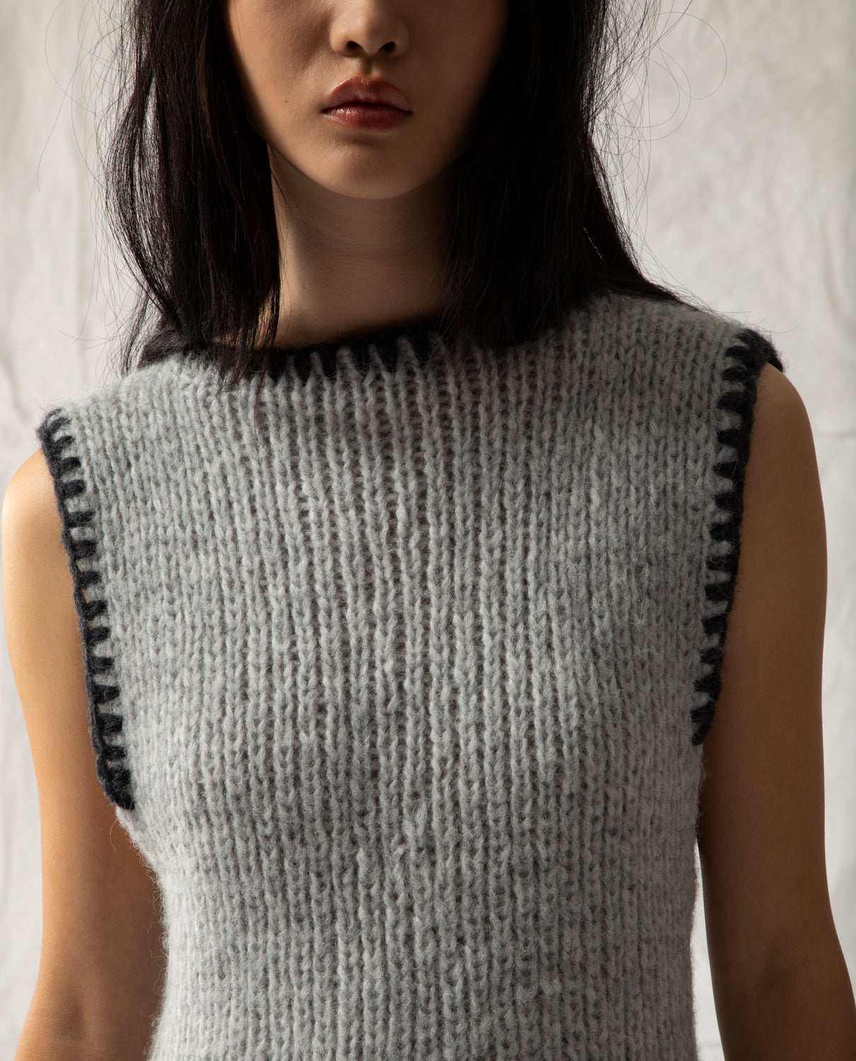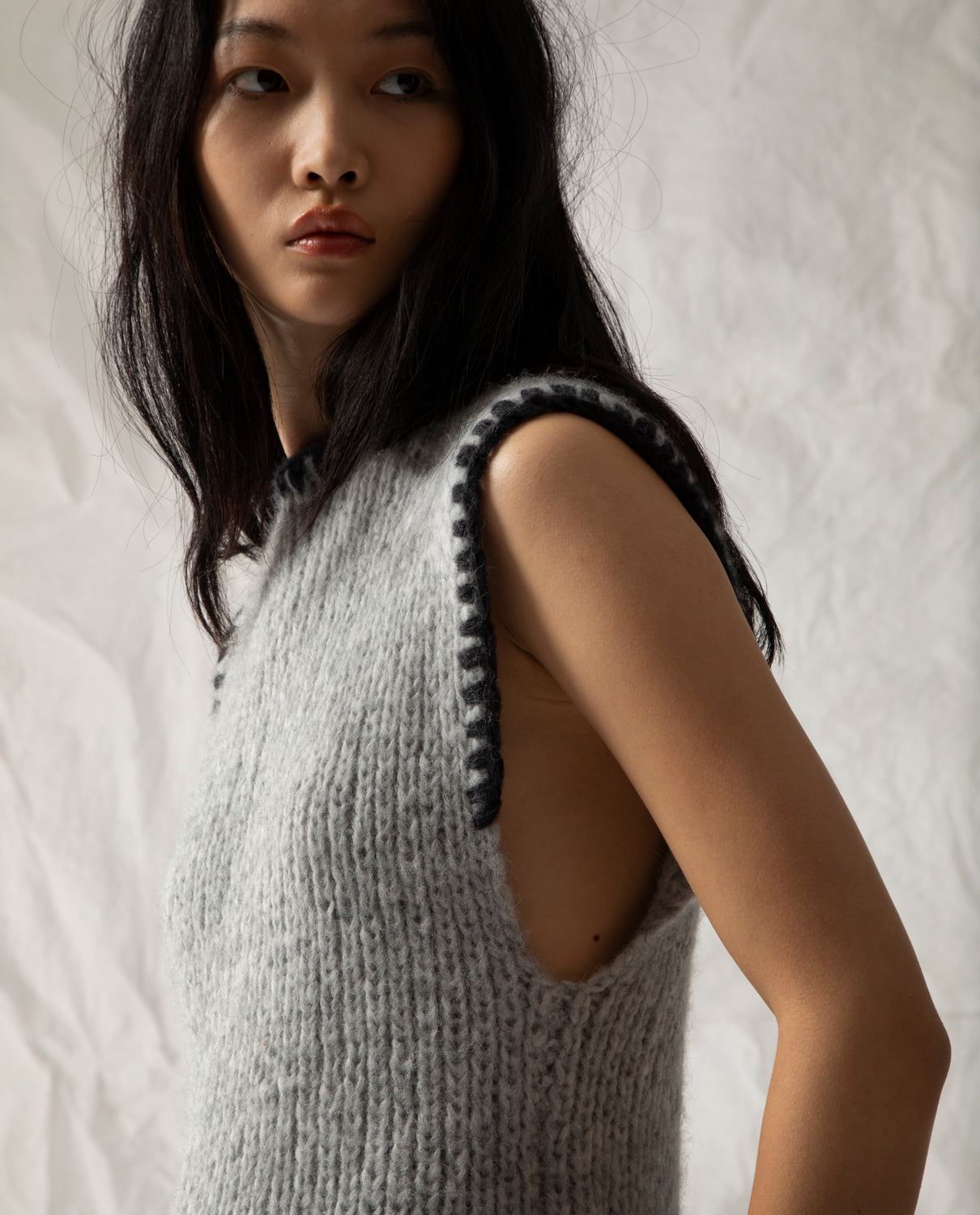 Soft and warm vest with contrasting details, hand-knitted in baby alpaca wool. Wear it alone or above your favourite shirt.