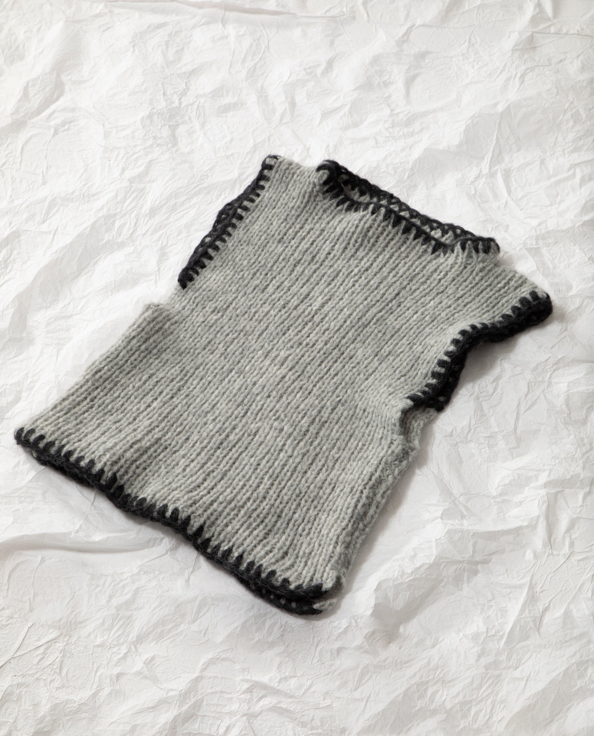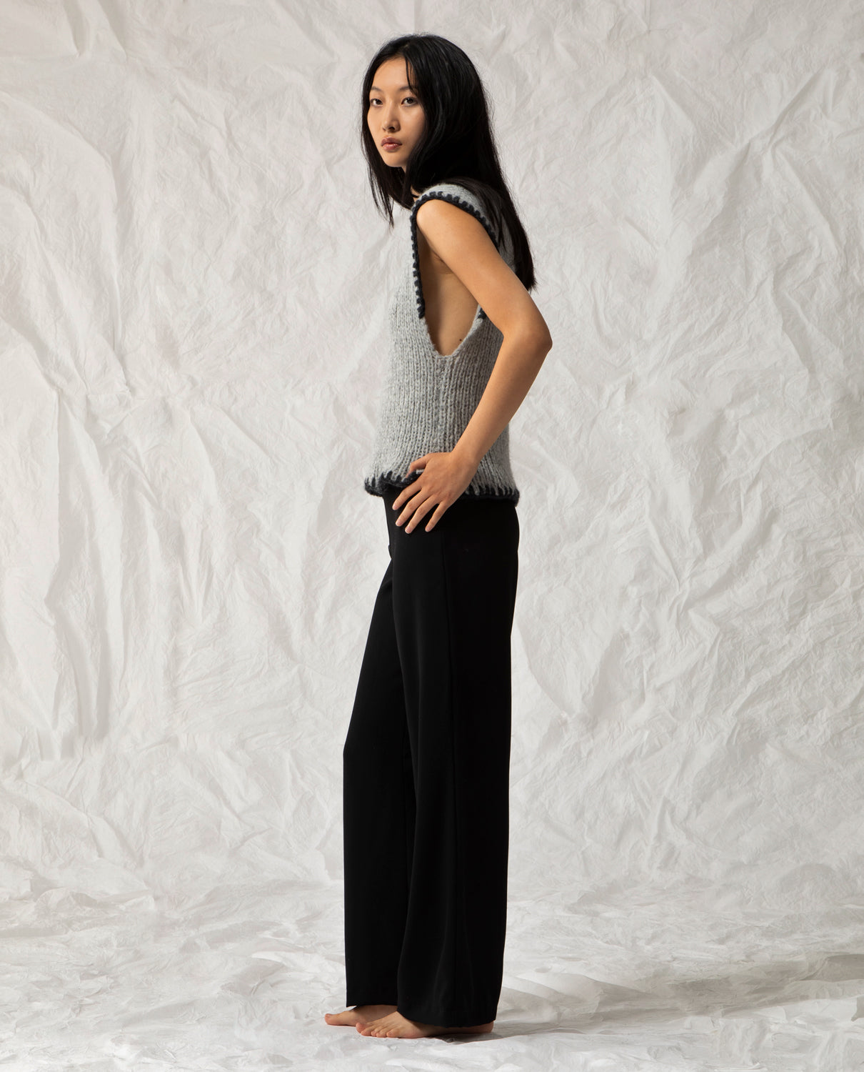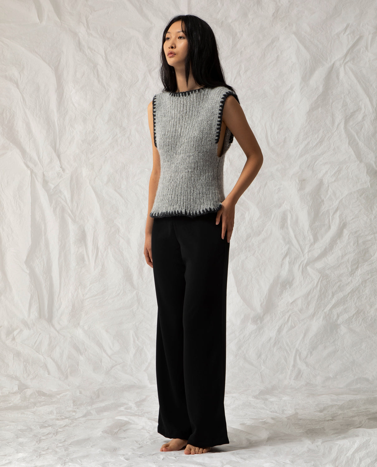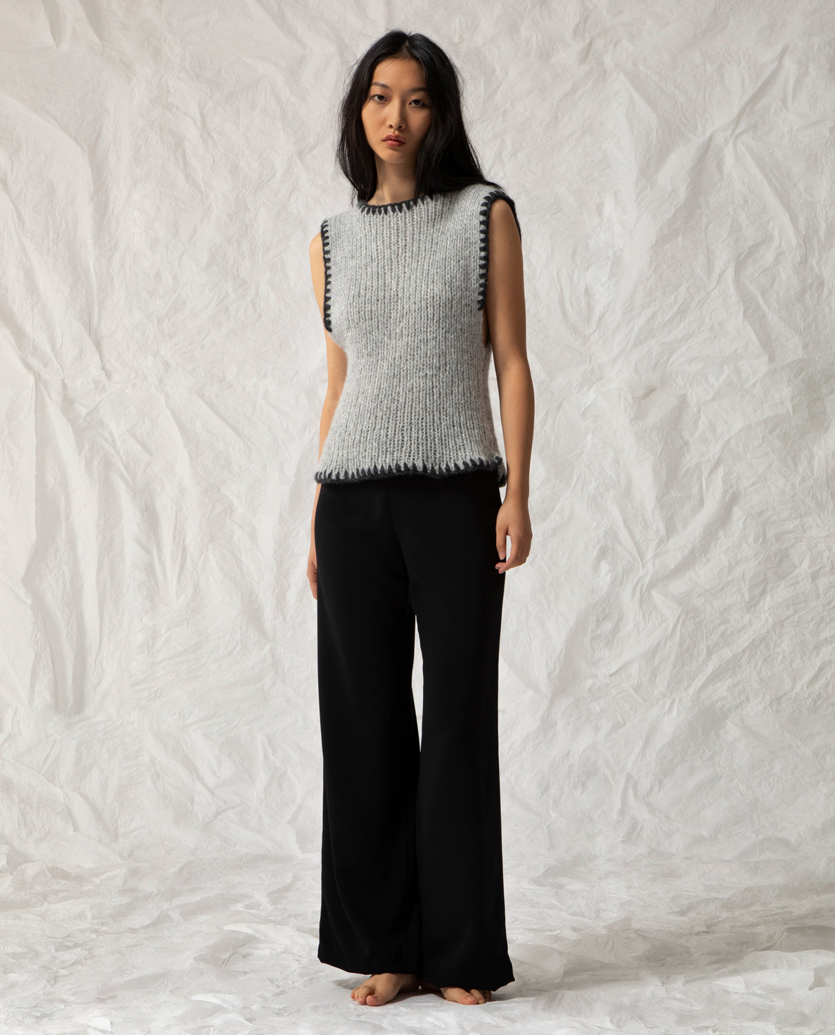 Soft and warm vest with contrasting details, hand-knitted in baby alpaca wool. Wear it alone or above your favourite shirt.