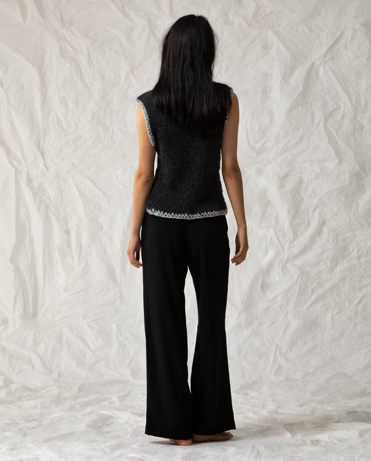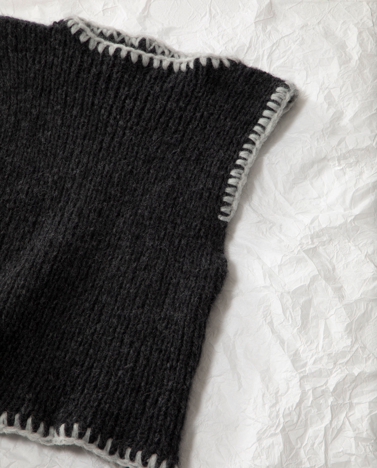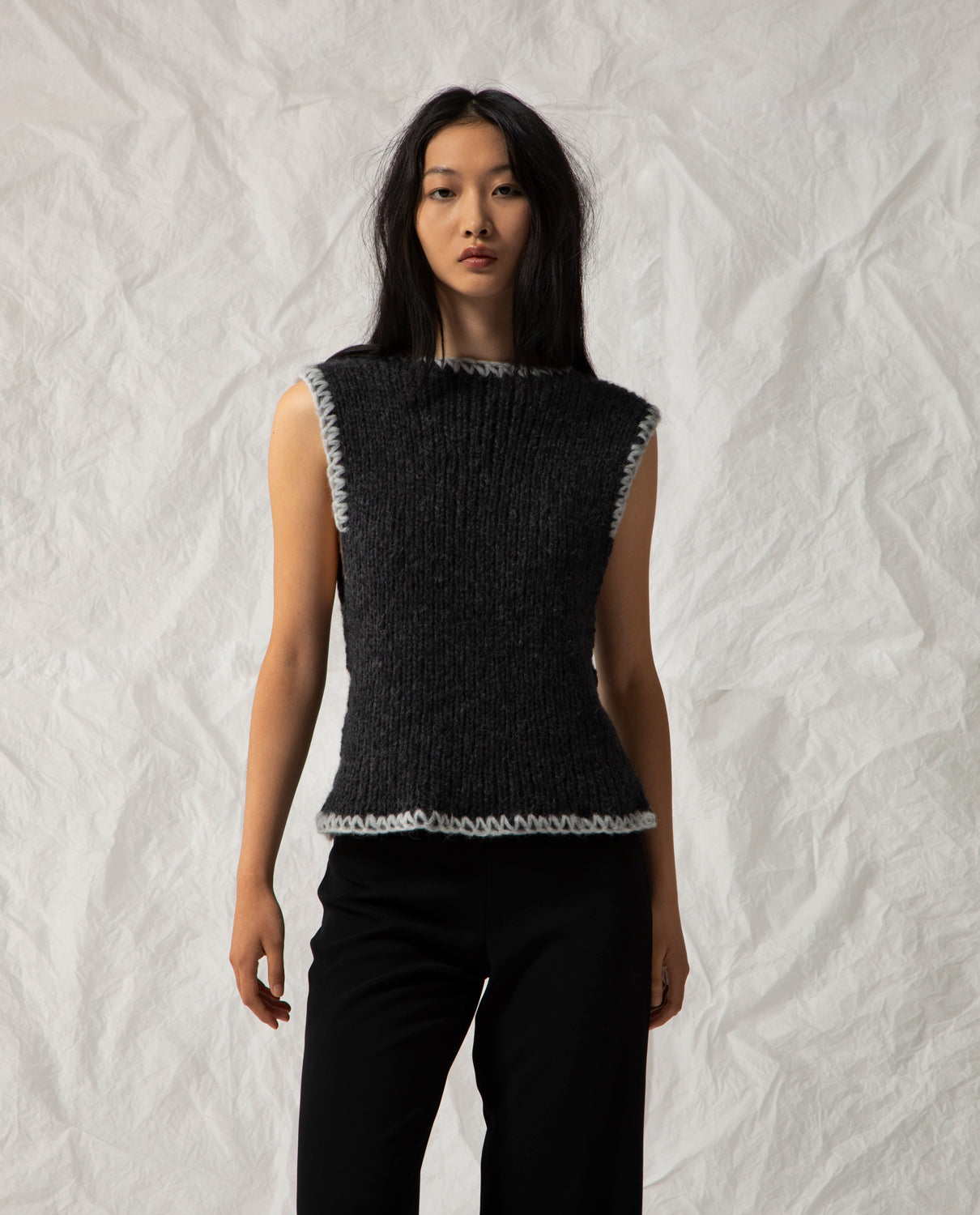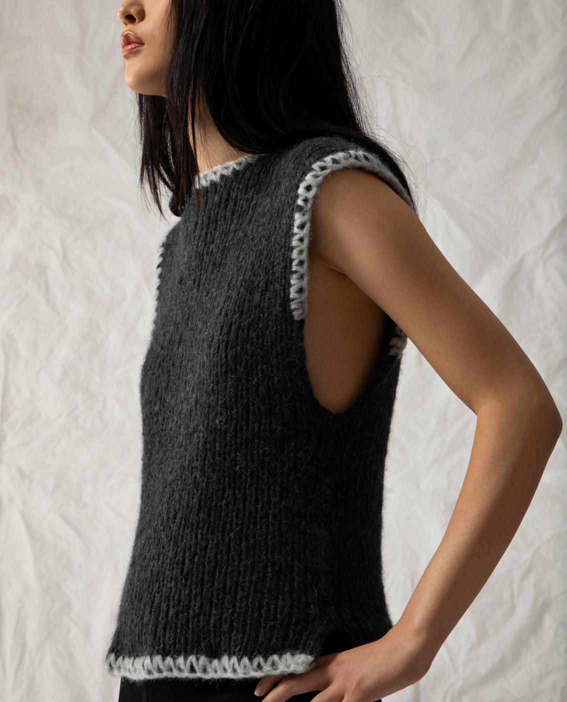 Soft and warm vest with contrasting details, hand-knitted in baby alpaca wool. Wear it alone or above your favourite shirt.