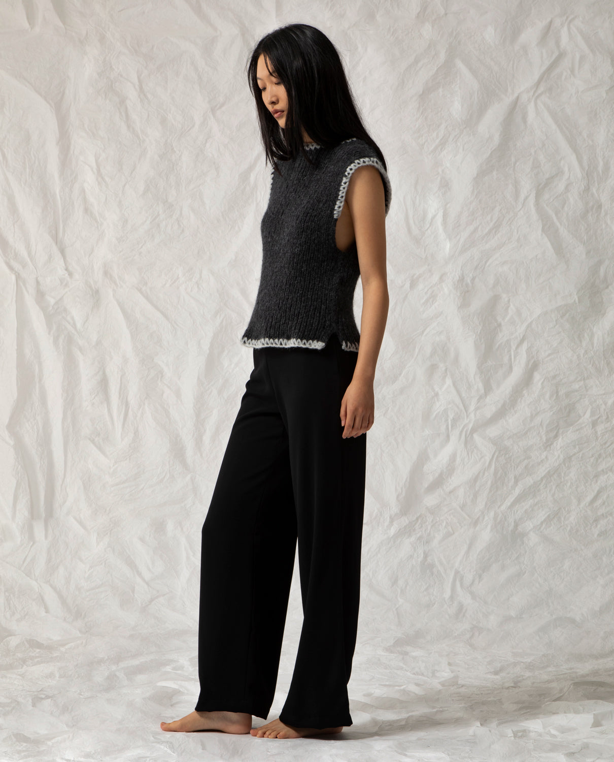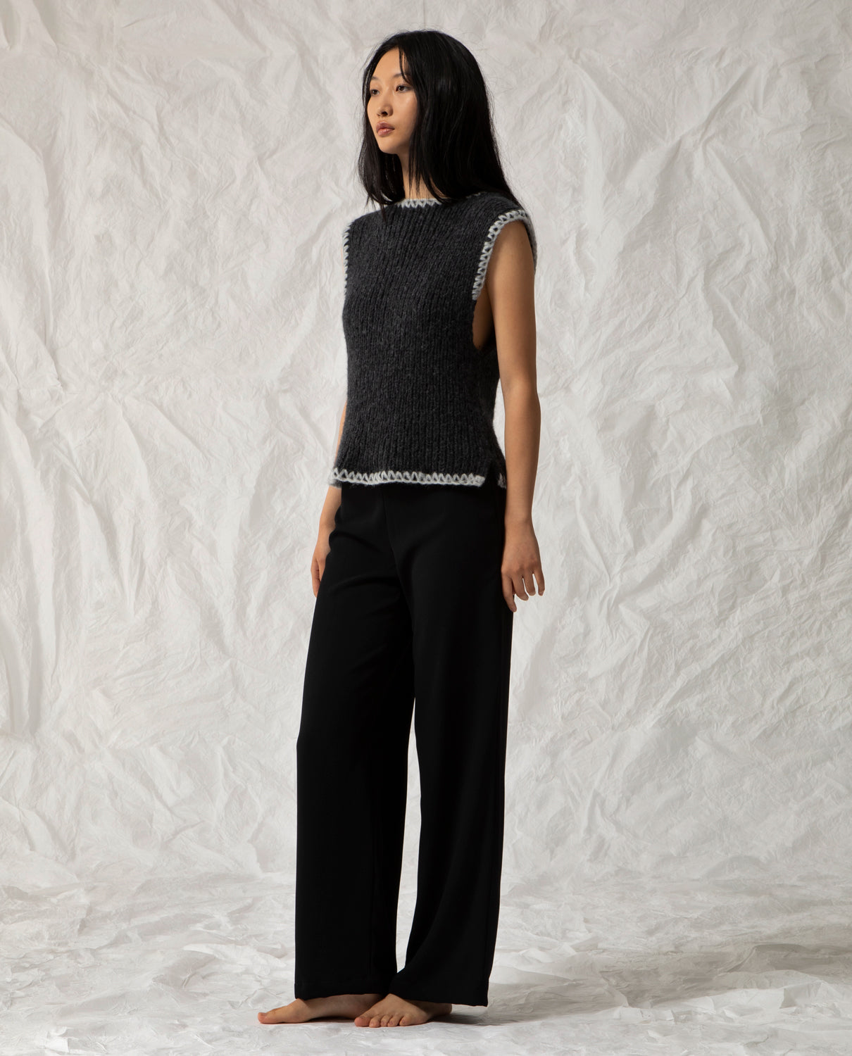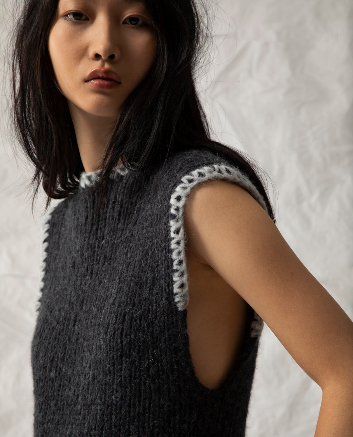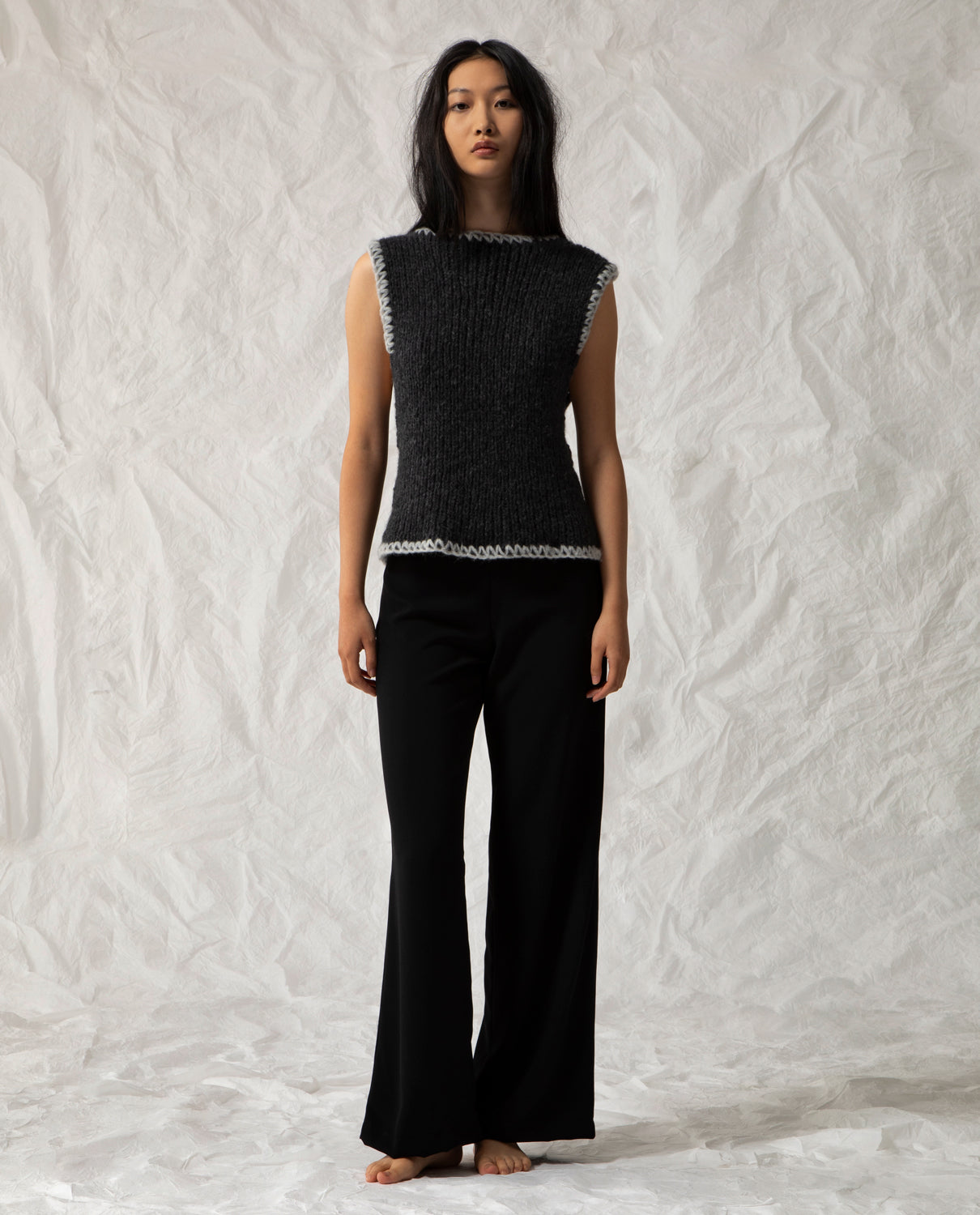 Soft and warm vest with contrasting details, hand-knitted in baby alpaca wool. Wear it alone or above your favourite shirt.
