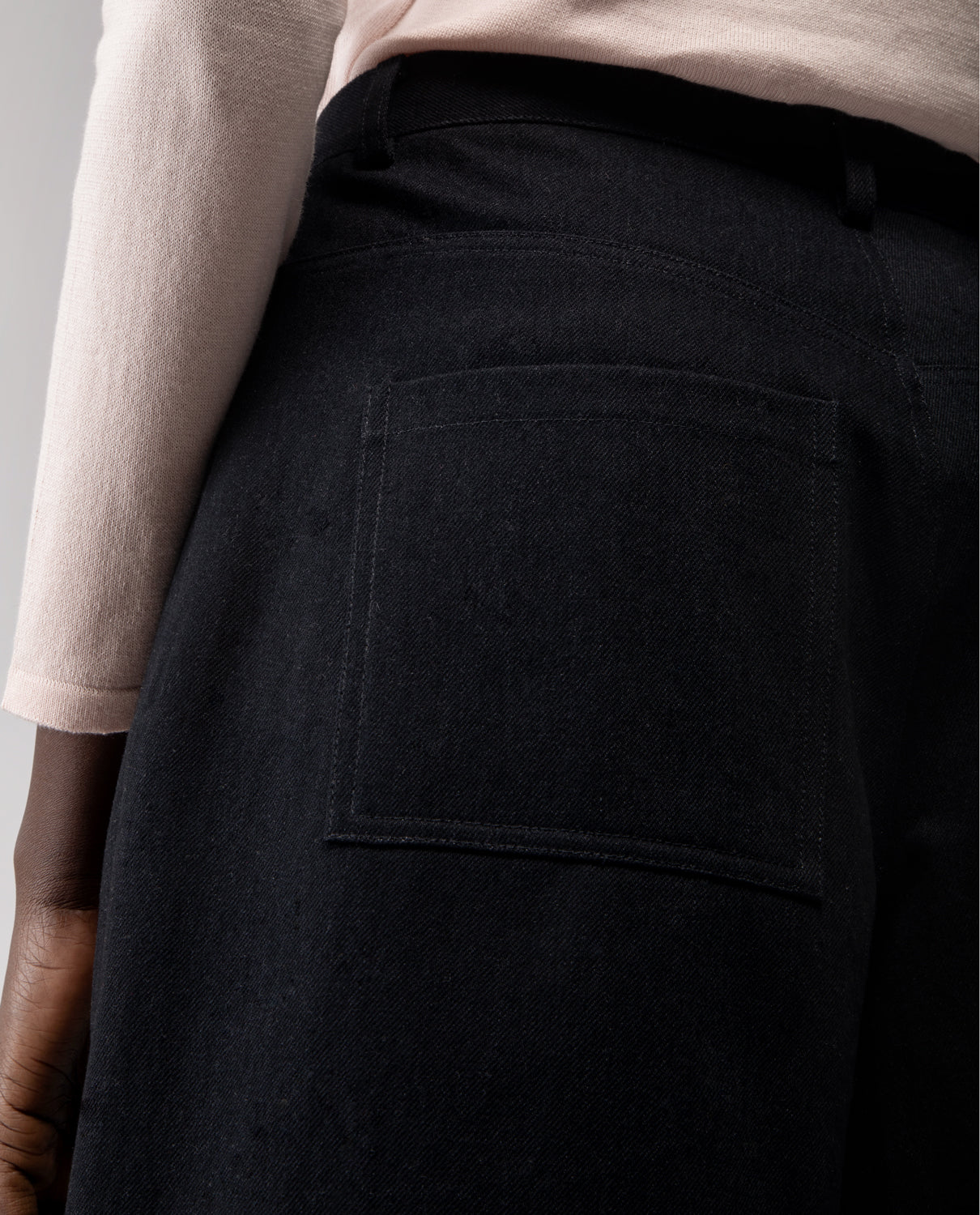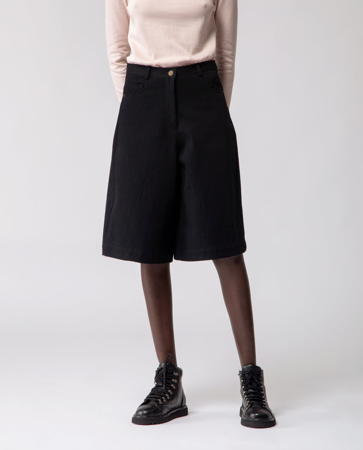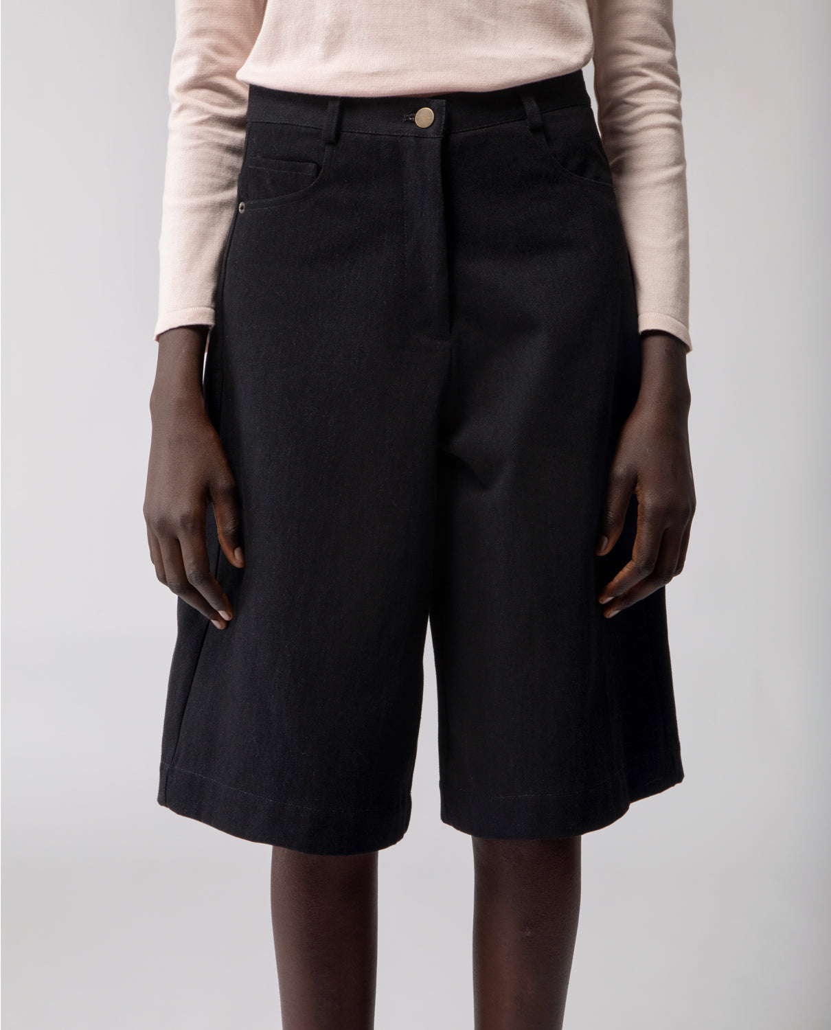 Soft jeans crafted from Japanese cotton, designed with a length that falls below the knee. The cut draws subtle references to traditional menswear and classic outdoor workwear, balancing functionality with a refined silhouette.