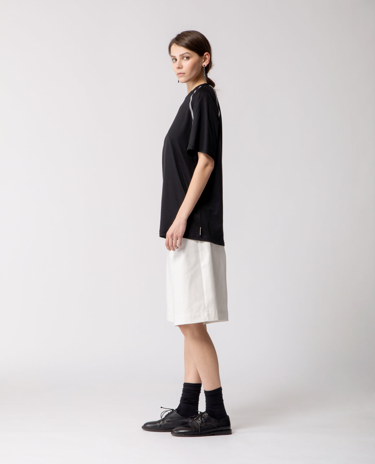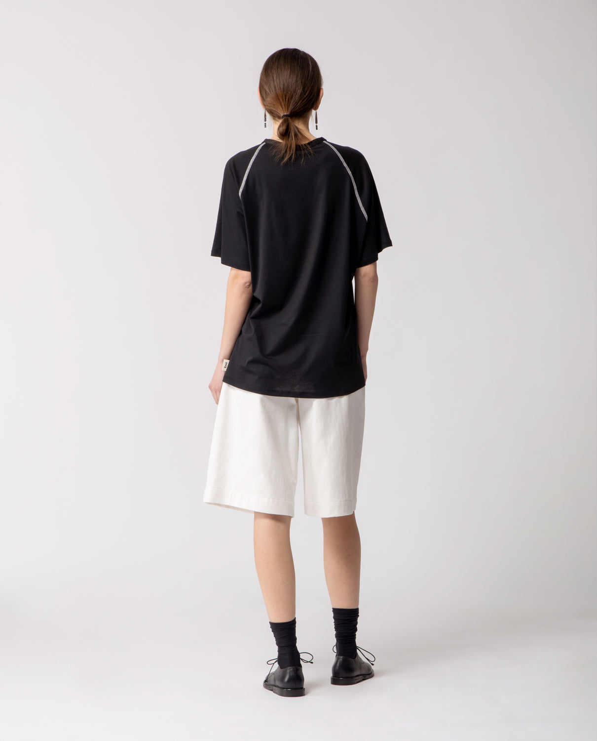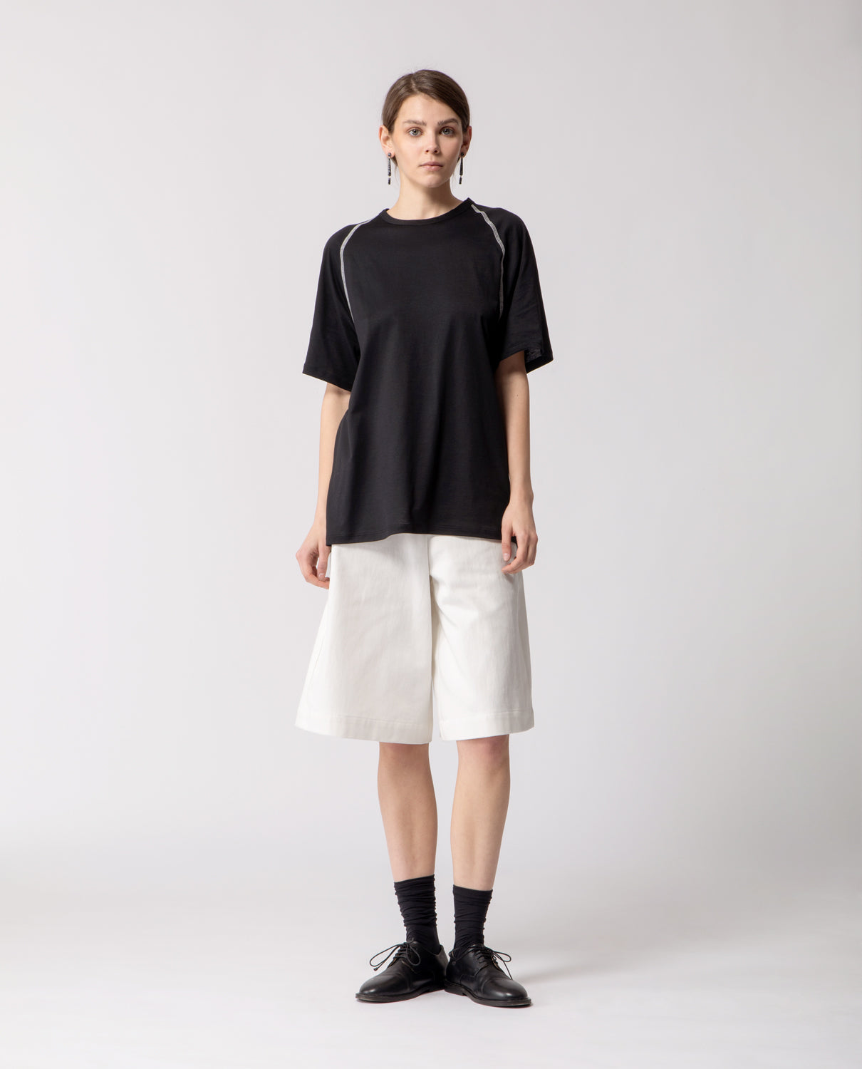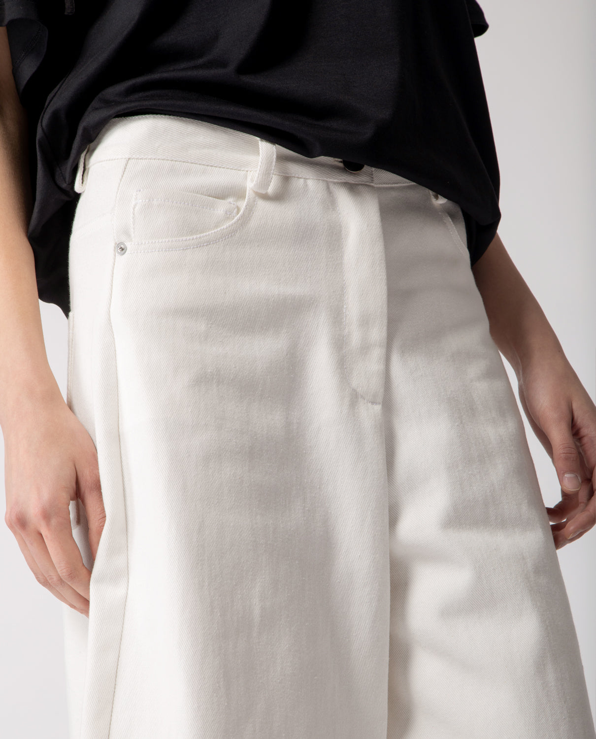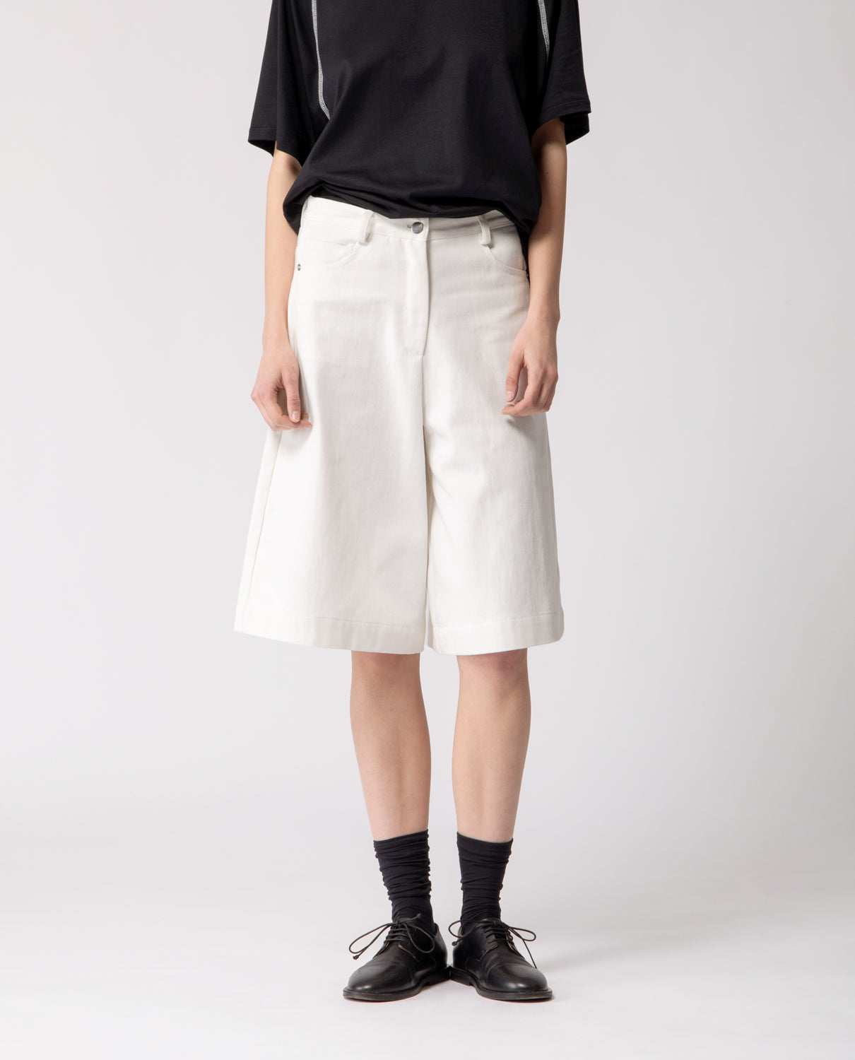 Soft jeans crafted from Japanese cotton, designed with a length that falls below the knee. The cut draws subtle references to traditional menswear and classic outdoor workwear, balancing functionality with a refined silhouette.