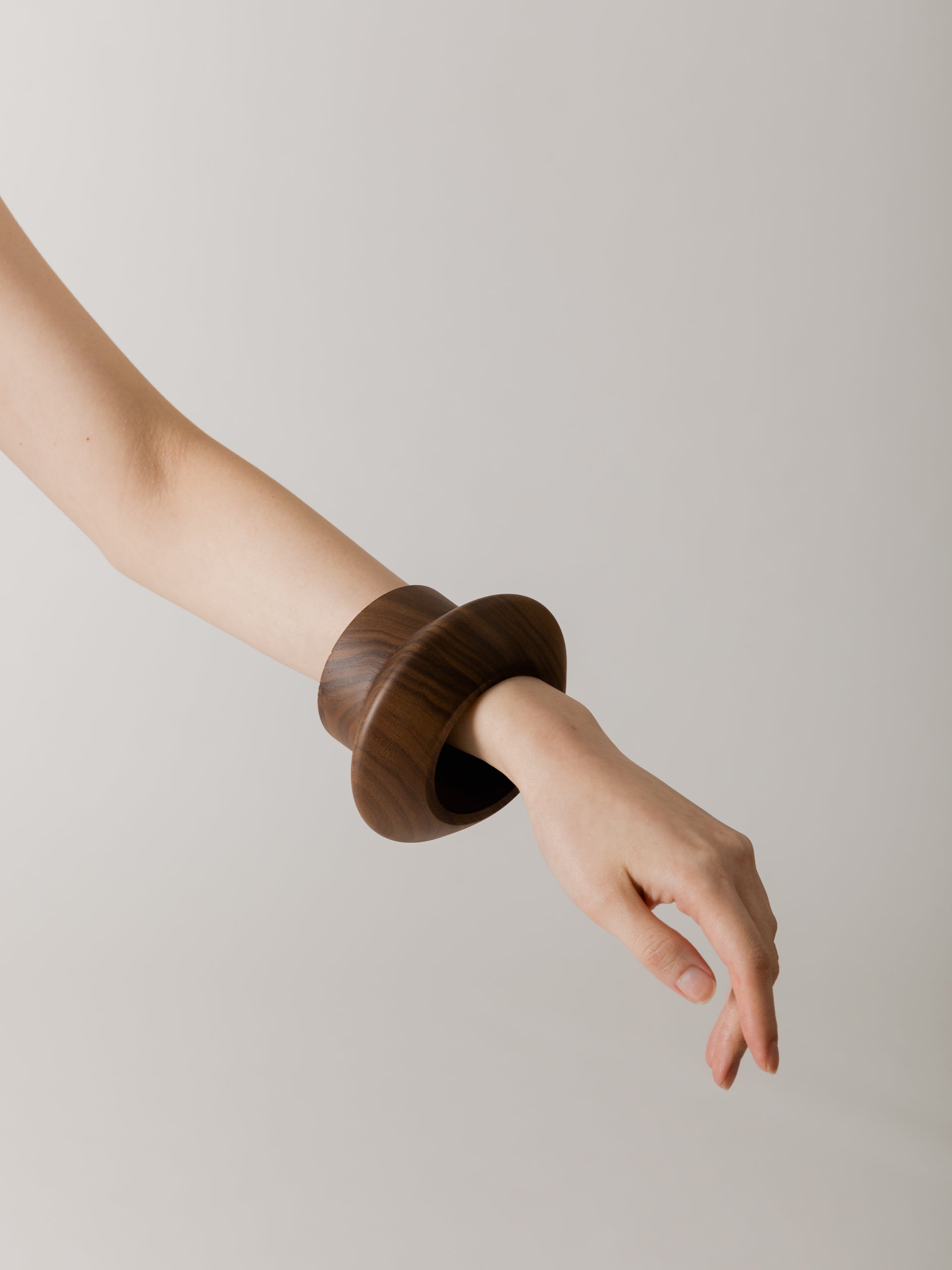 Hand-carved light, wooden bangle in Canaletto walnut.