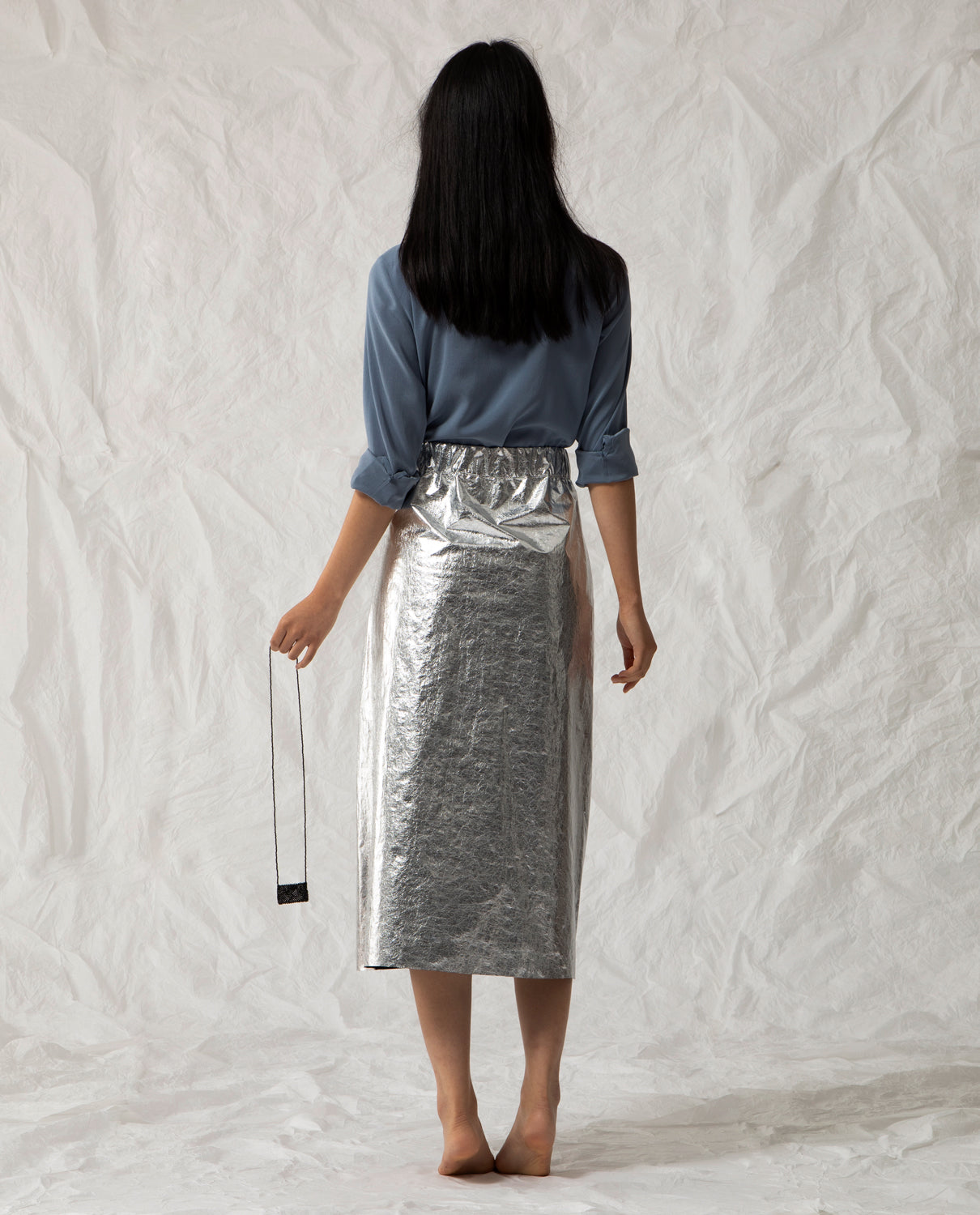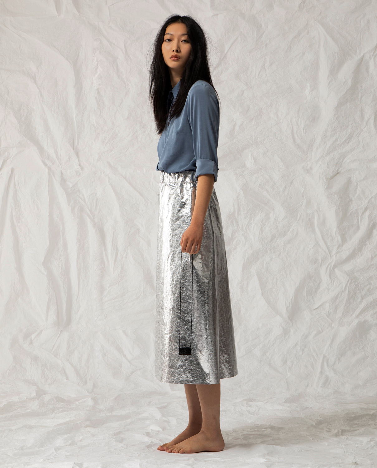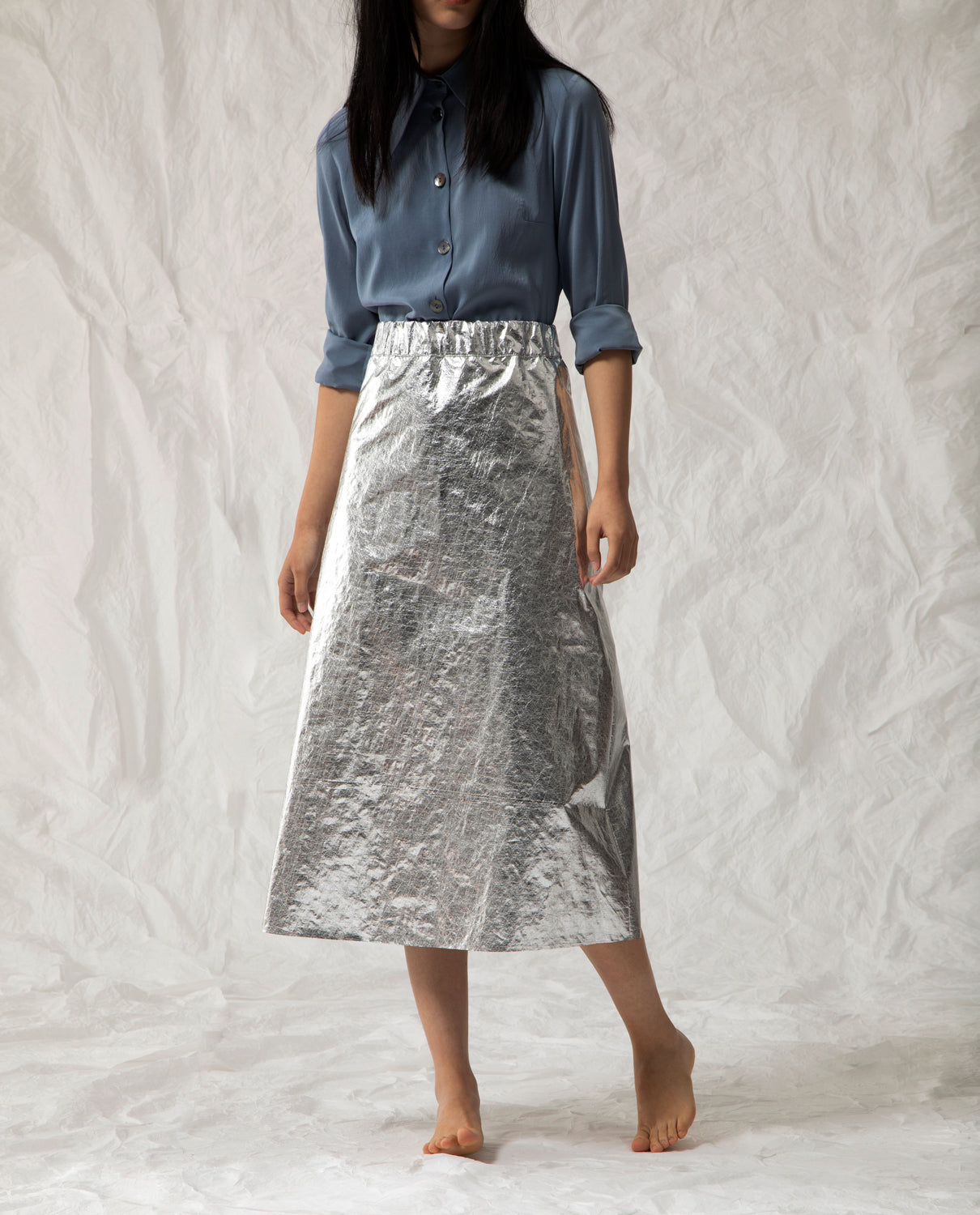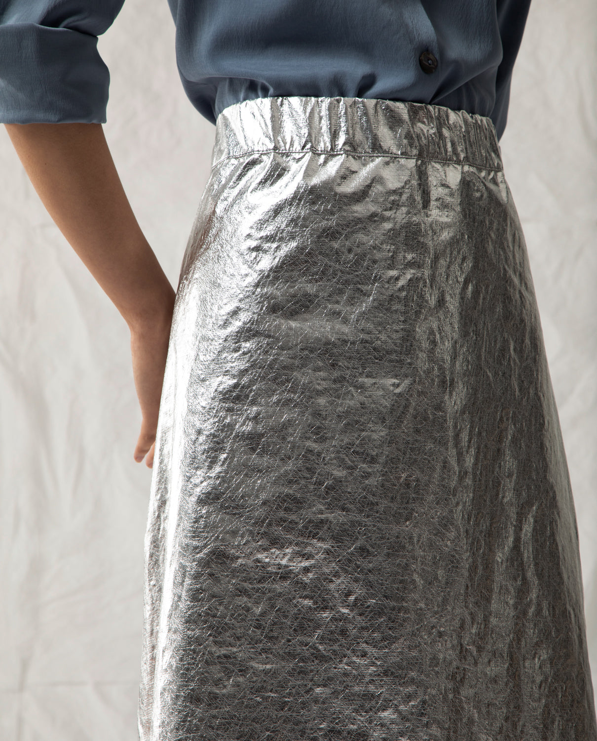 Metallic midi skirt crafted from 100% pes recycled, with a side zip.